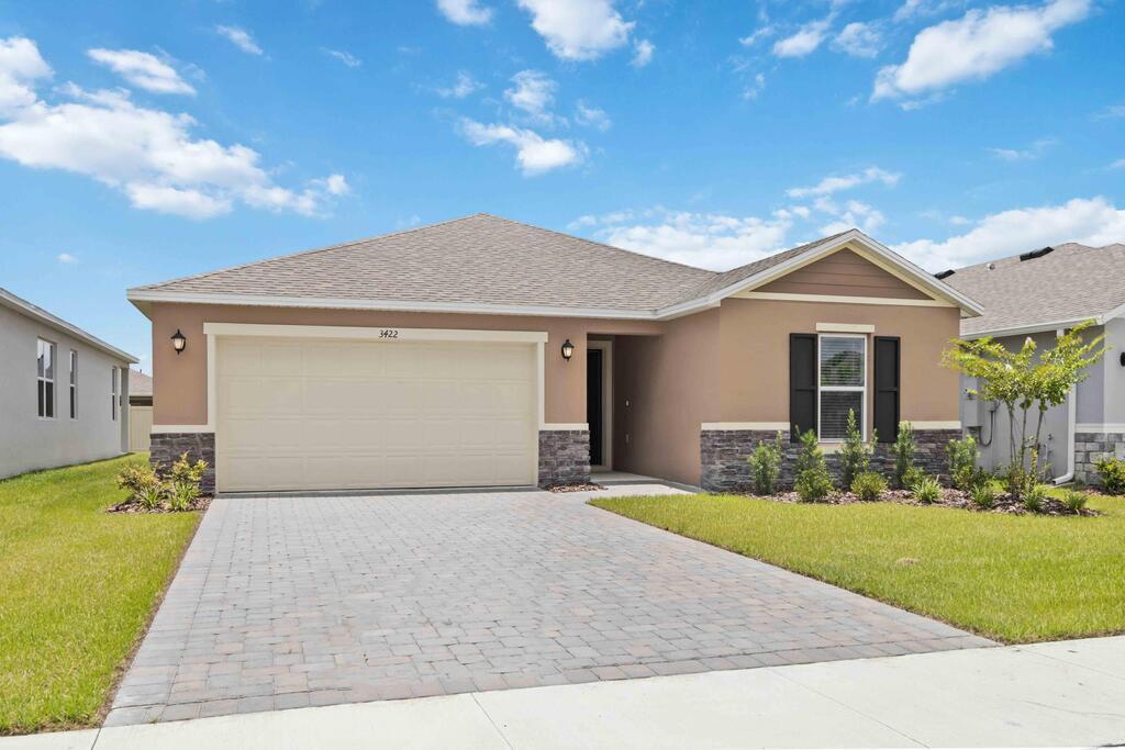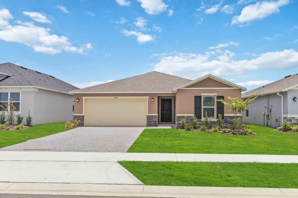 This eye-catching home offers a timeless stone exterior, tile flooring, and a covered patio where you can relax and enjoy the outdoors. Right of the entry, there are two bedrooms and a full bath. Across the hall, there is a dedicated laundry room. Downthe entry way, you'll discover the heart of the home with an open kitchen overlooking a great room with volume ceilings. The kitchen is equipped with 36-in. upper cabinets with crown molding and hardware, Silestone(r) countertops, an island, a Moen(r) faucet, a stainless-steel Kohler(r) sink, and stainless-steel Whirlpool(r) appliances. Adjacent to thegreat room, the primary suite boasts a tray ceiling, a walk-in closet, and a connecting bath featuring a linen closet, a dual-sink vanity, and a walk-in shower with tile surround.
