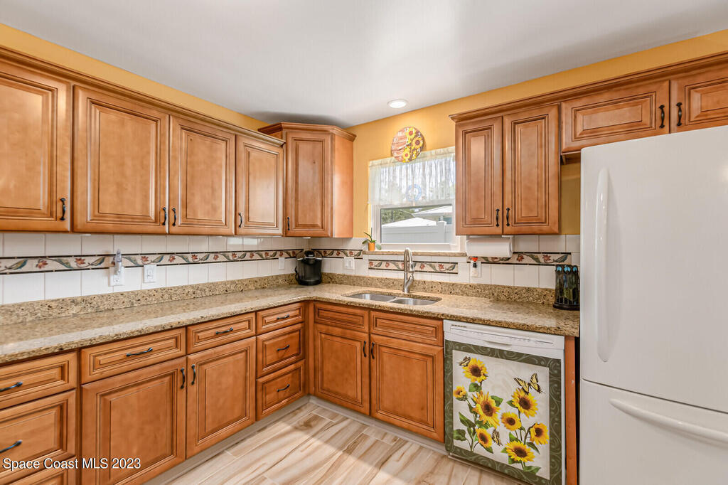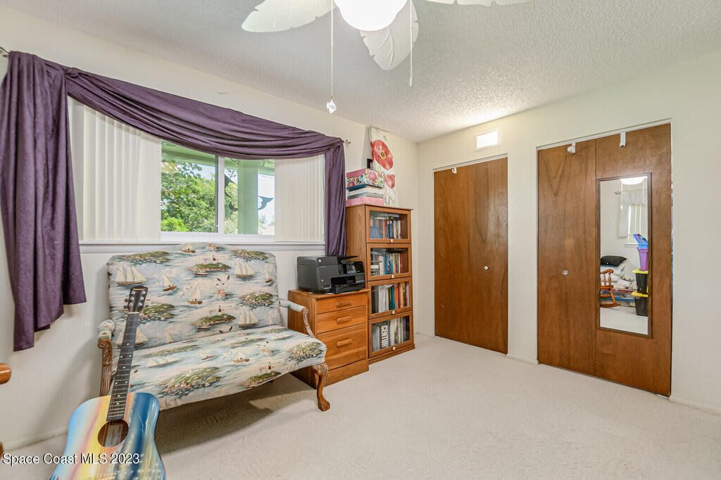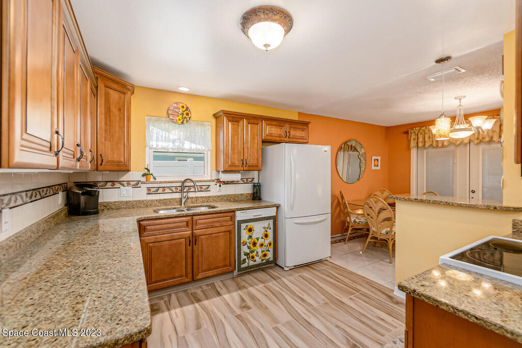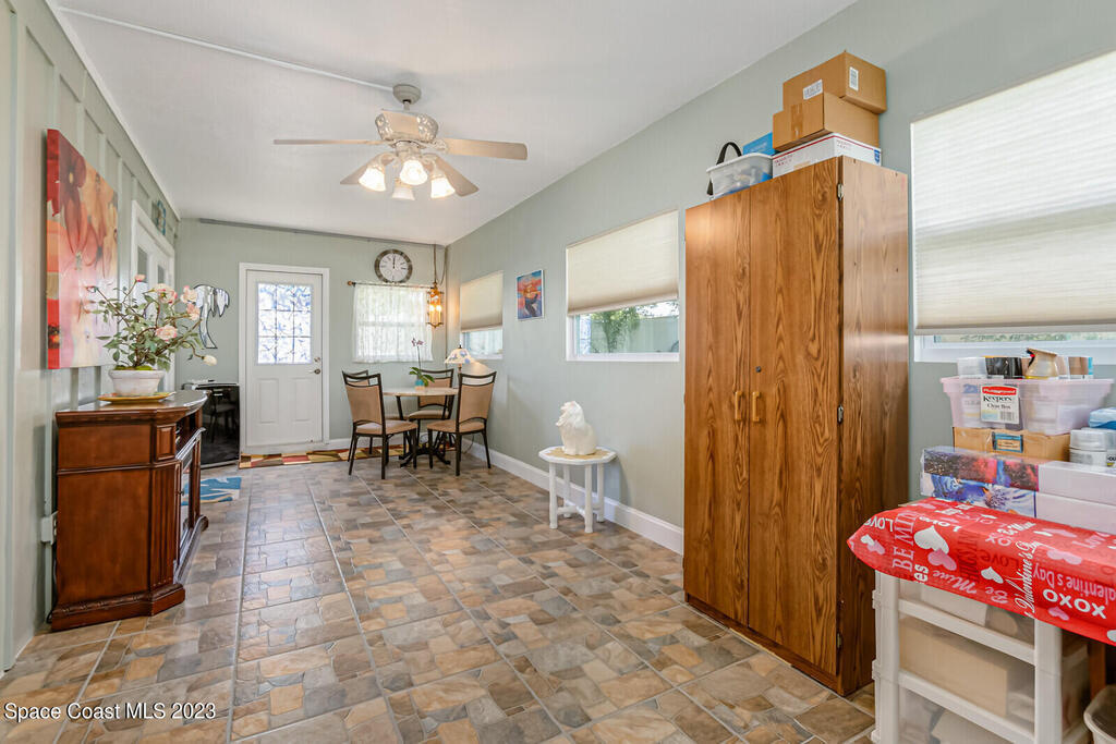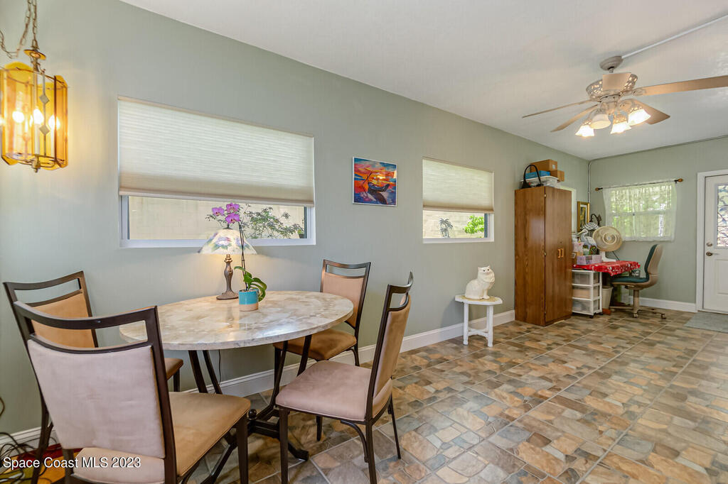 Well maintained, oversized 2 bed, 2 bath home with separate living & family rooms; can easily convert to 3 bedrooms. No HOA! Home was professionally painted in 2020. Hurricane impact windows 2018, updated kitchen, roof replaced 2017. 8 camera, hardwired security system, AC & all attic duct work replaced 2014. Indoor laundry, hot water heater and extra storage area.Transferable termite bond.Updated living, family room & kitchen tile flooring. Enclosed back room with 2 sets of French doors leading to the dining & living areas with recessed lighting. Plenty of lush plants & fruit trees; 2 open porches in quiet neighborhood. 2 car garage includes fridge & extra shelving. 2 attics w/ stand up access & lighting.
