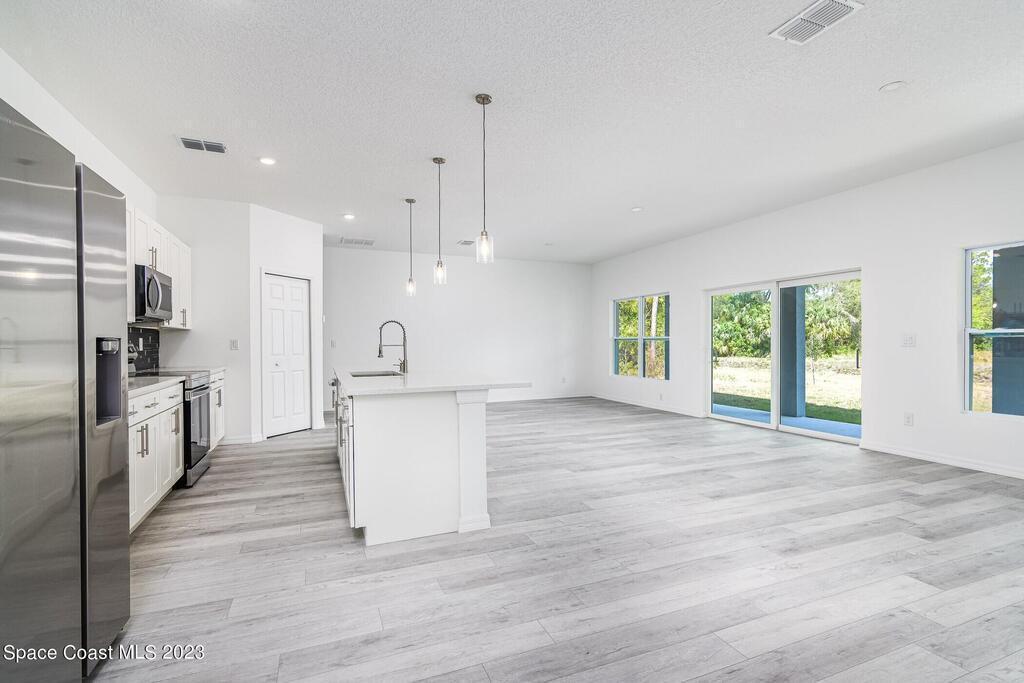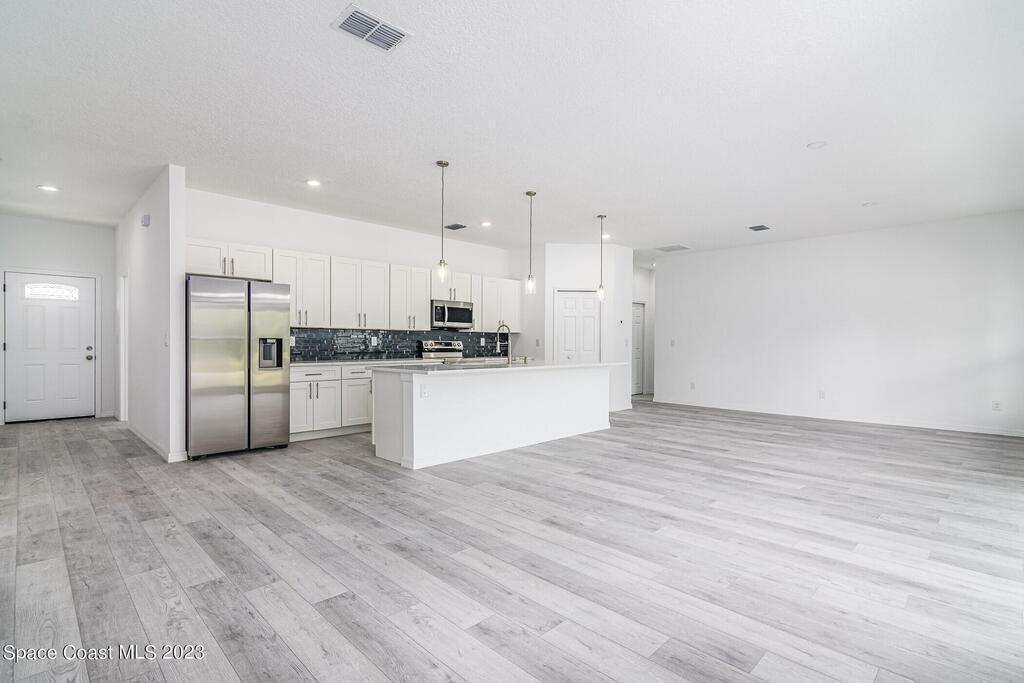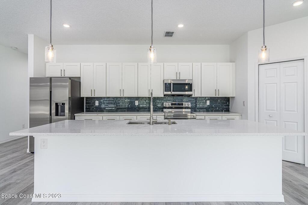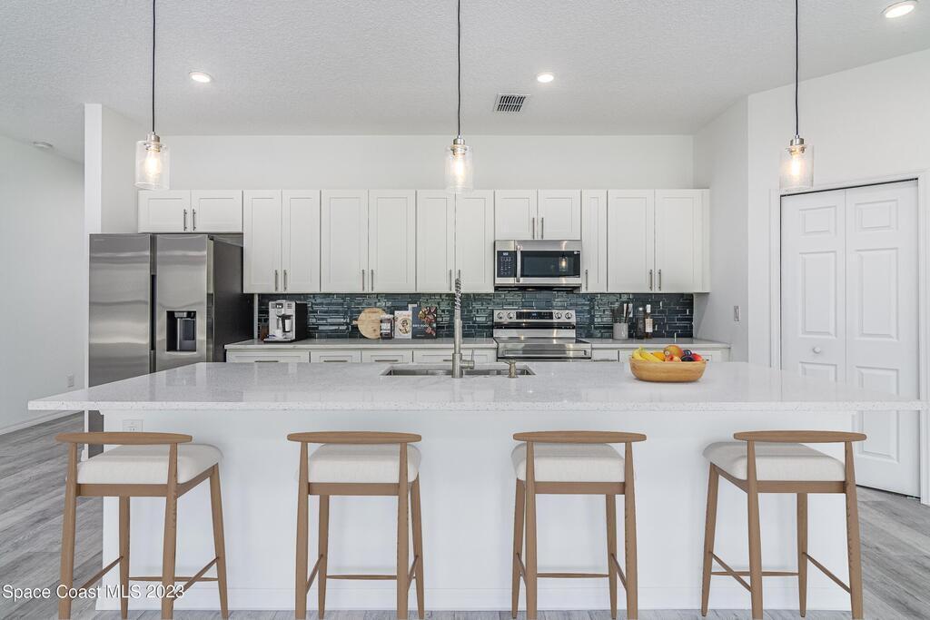 Ready NOW! Enjoy low insurance w/ HURRICANE IMPACT windows! Luxury vinyl flows throughout the home creating a modern fusion of comfort & class including all bdrms. Natural light bounces into a spacious living rm gracefully flowing into the roomy casual dining, & large kitchen w/ample storage & beautiful white cabinets w/ soft close doors & drawers accented by the sleek quartz counters, stylish backsplash, huge center island w/ light pendants & all stainless steel appliances. The sizable master suite is marked w/ granite counters, double sinks, a tiled shower & a large walk-in closet. The ensuite is perfect for guests or in-laws. Outside, enjoy al fresco celebrations in the large trussed porch & backyard! Within 2 Min to Bayside Lakes & Bayside High