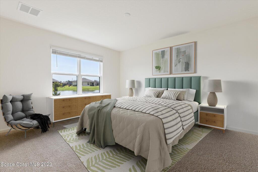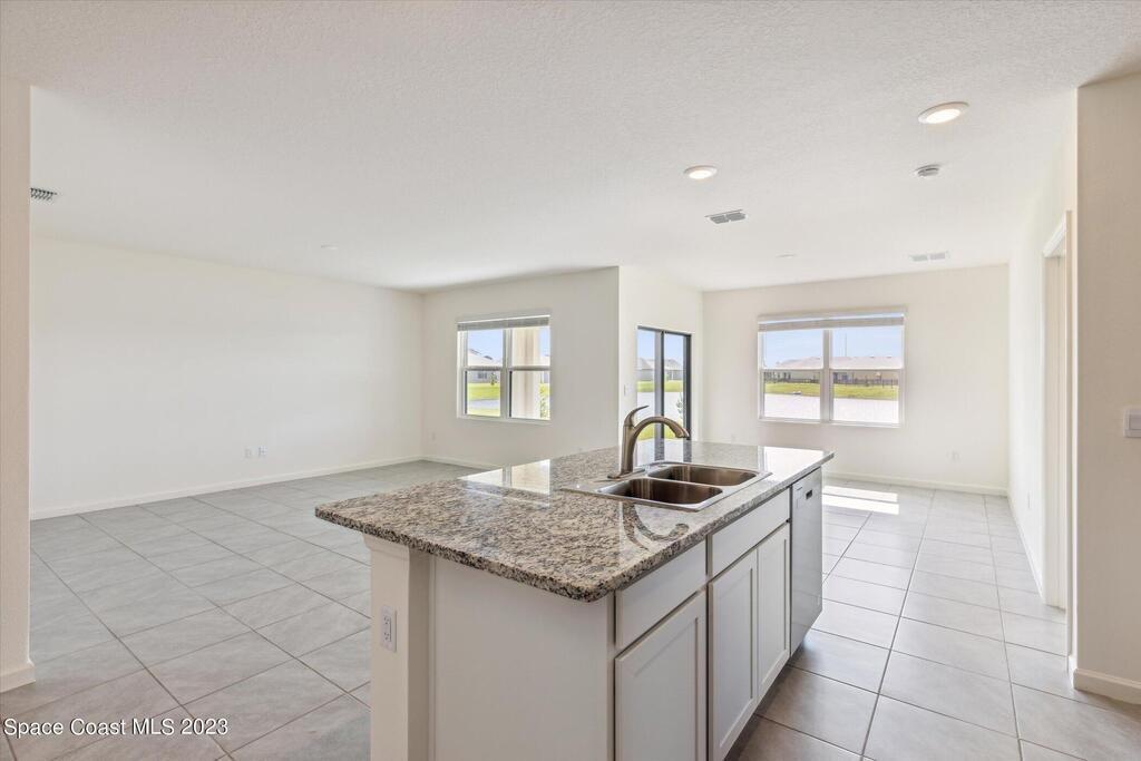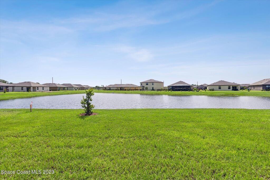Why Wait? This newly constructed home is available NOW! This home sits on a premium lake lot with gorgeous sunrise views. This single-story open layout home has 3 Bedrooms, 2 Bathrooms, 2-Car Garage, a separate laundry room with a NEW GE Washer & Dryer, oversized living room, kitchen has 36'' white cabinets staggered with crown molding, stainless steel appliances, pantry and counter height island with beautiful granite countertops and a screened in back patio.This resort-styled community features amenities including a clubhouse, community pool, fitness center, pickle and bocce ball, dog park and more!