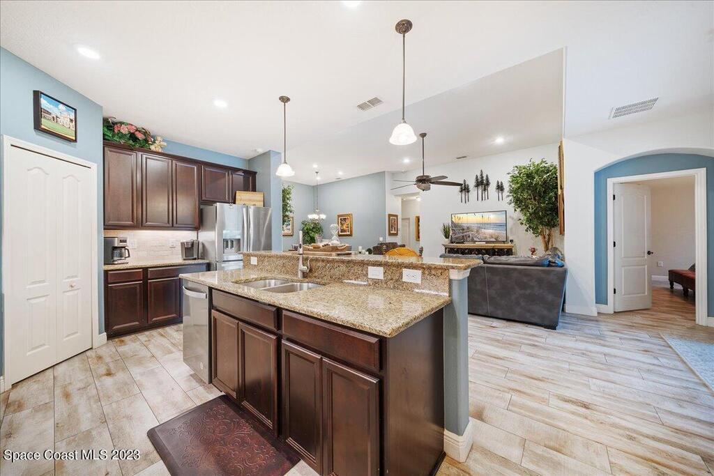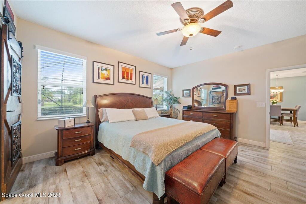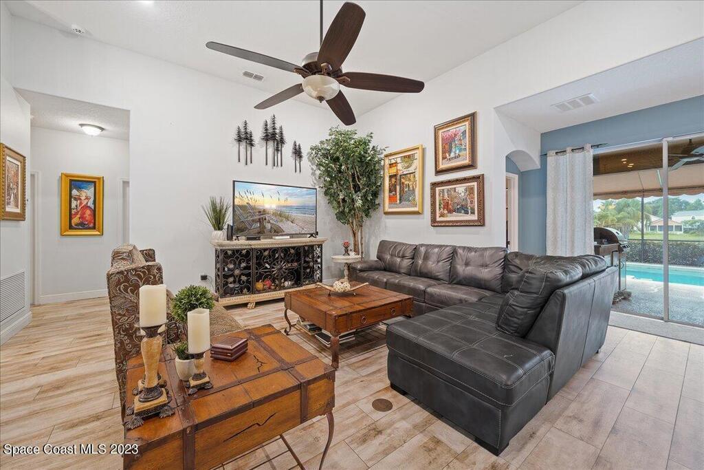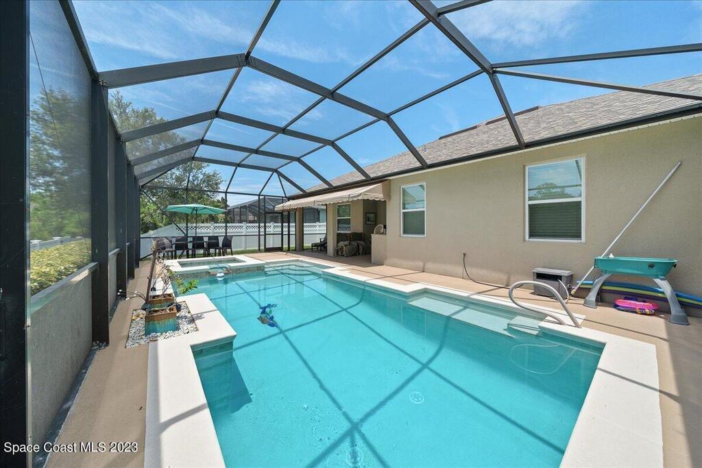 Welcome to this stunning 4-bedroom, 3-bathroom pool home nestled in the tranquil Pineda Springs neighborhood with a breathtaking lake view. Step inside and be enchanted by the wood-look tile floors that exude elegance and charm throughout the open floor plan. Enjoy the luxury of a summer kitchen, perfect for hosting outdoor gatherings. Take relaxation to the next level with the inviting hot tub. For the connoisseurs, the bonus room boasts a humidor, ideal for preserving your treasured cigar collection. The kitchen is a chef's dream with granite countertops and gas appliances. This home is an oasis of comfort and sophistication, a place where cherished memories are waiting to be made. Welcome home!