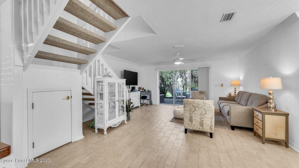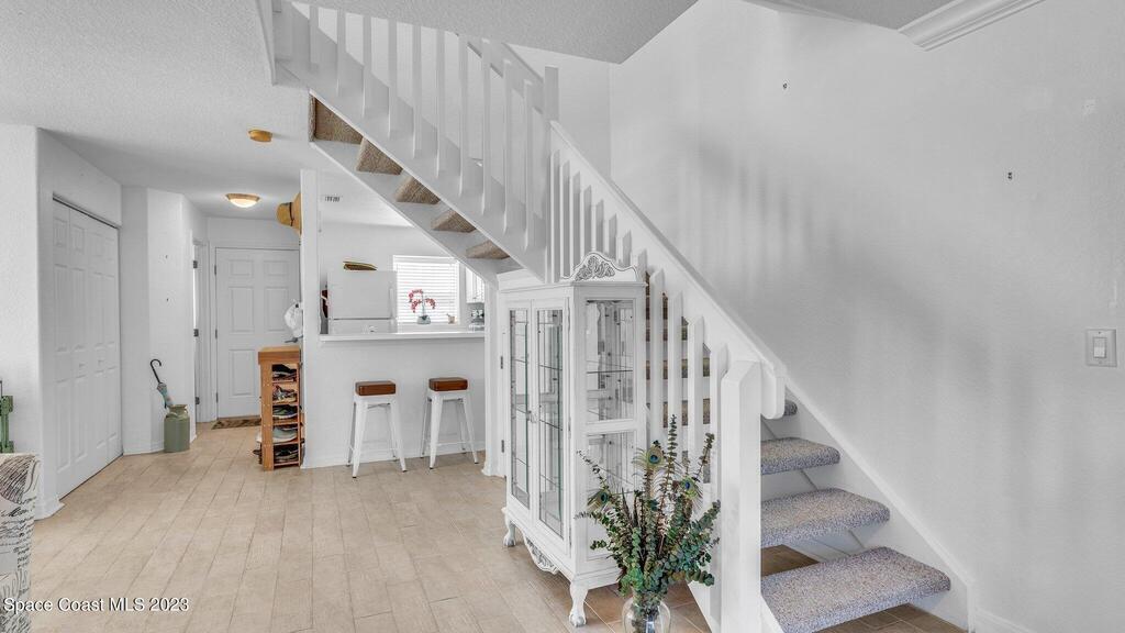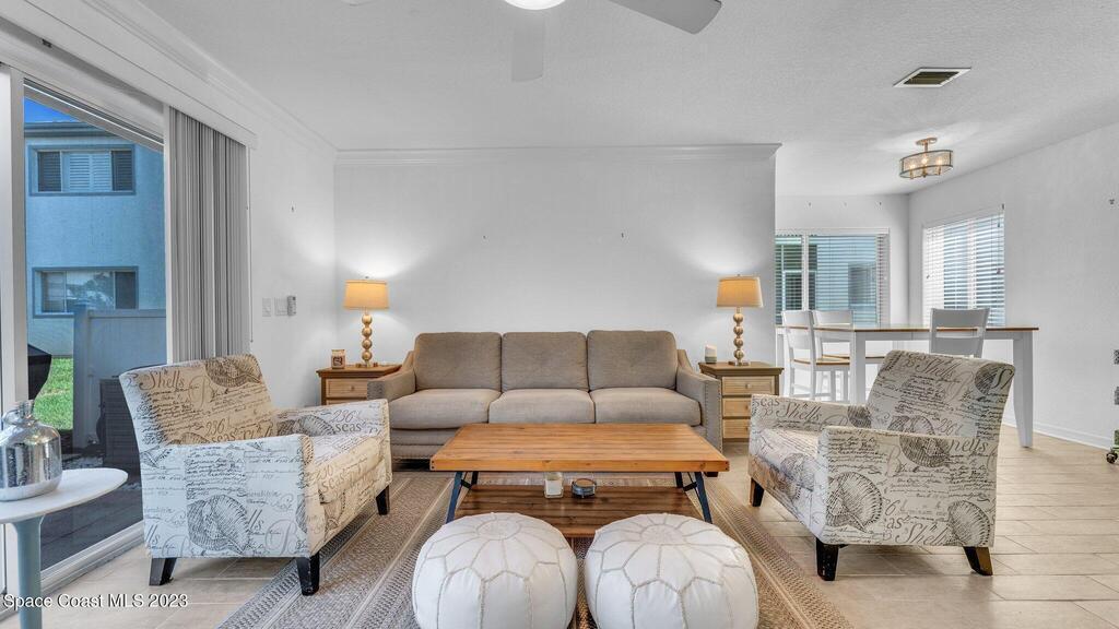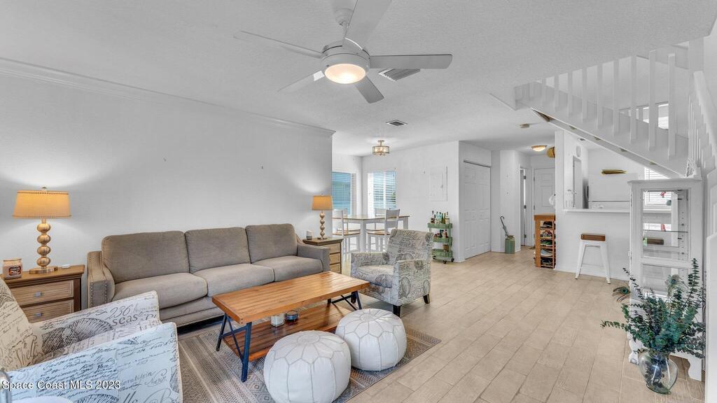 MOTIVATED SELLER!!! PRICE IMPROVEMENT TO $360,000! Beautiful 2/2.5 Condo in the Desirable Ocean Front Community of the Villages of Seaport. This Concrete Block End Unit has been Updated & Well Maintained! Crown Molding, Coastal Tile Plank Flooring Downstairs, Neutral Berber Carpet Upstairs, Tiled Showers & Remodeled Half Bath. Seaport Offers So Many Amenities; Private Beach Access, 3 Pools, Clubhouse, Fitness Center, Tennis & Racquetball Courts. The Pet Friendly Community is a Perfect Place to Call Home, Be a Snowbird or If You Are Looking For an Investment Property. Desirable Destinations Are Within Walking Distance & Situated Near Port Canaveral. You Are Just Minutes from Shopping, Restaurants, Kennedy Space Center & a Short Drive to Orlando!