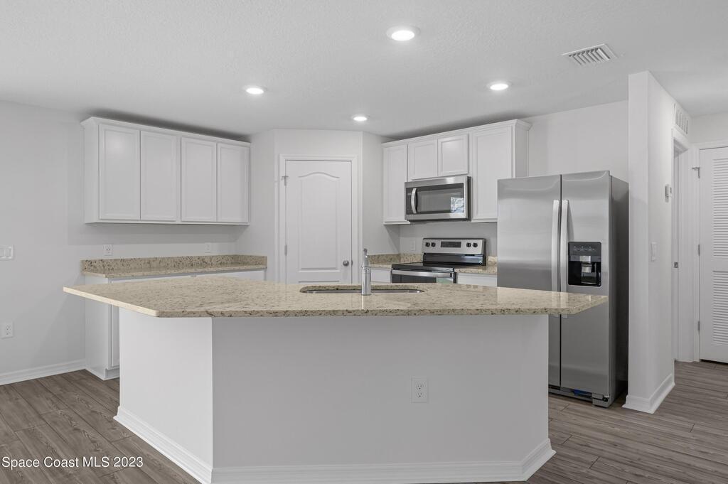 This beautiful, 3-bedroom, 2-bath home comes with over $10,000 in upgrades. These include all new energy-efficient Whirlpool(r) appliances, spacious countertops, stunning wood cabinets and an attached two car garage. The Caladesi at Palm Bay also showcases a master suite complete with a sizable walk-in closet. Loaded with incredible curb appeal, the Caladesi home is enhanced with a stunning covered entryway and front yard landscaping. In addition, Palm Bay offers residents a premier location with convenient access to nearby golf courses, world-class area beaches and amenity-packed parks. **appliance models are subject to availability**