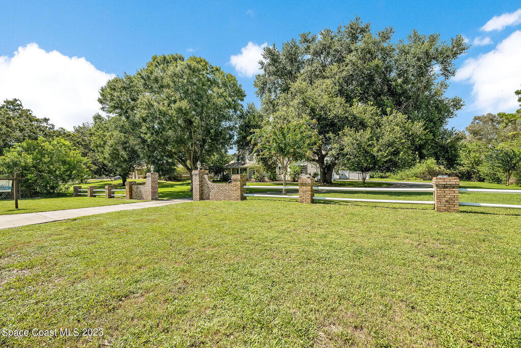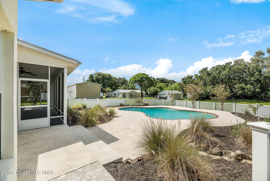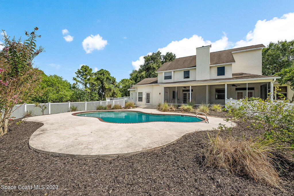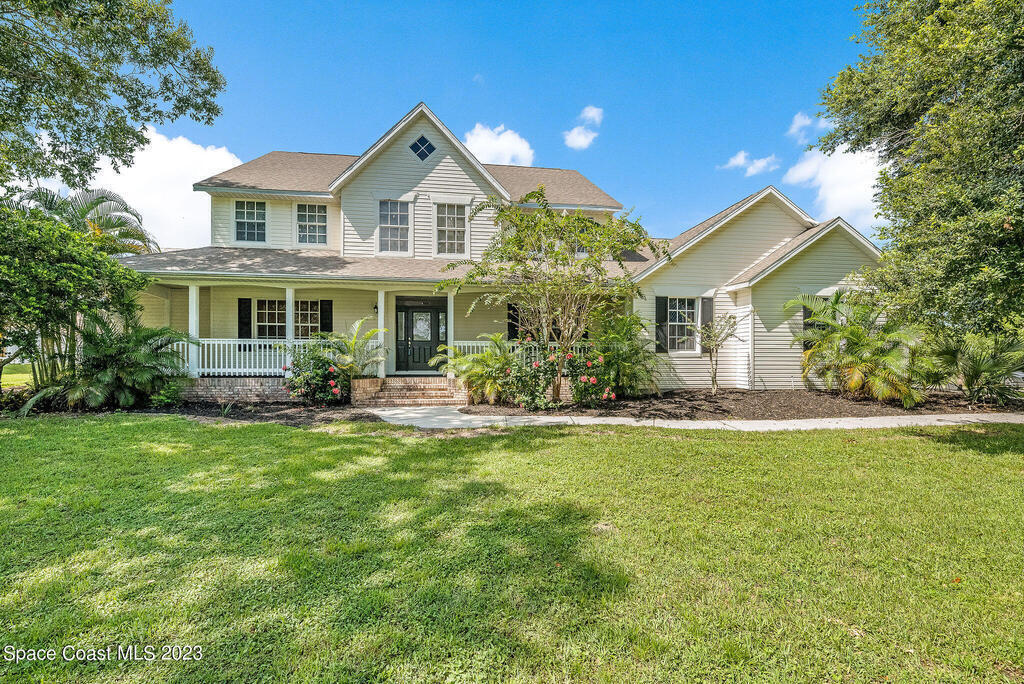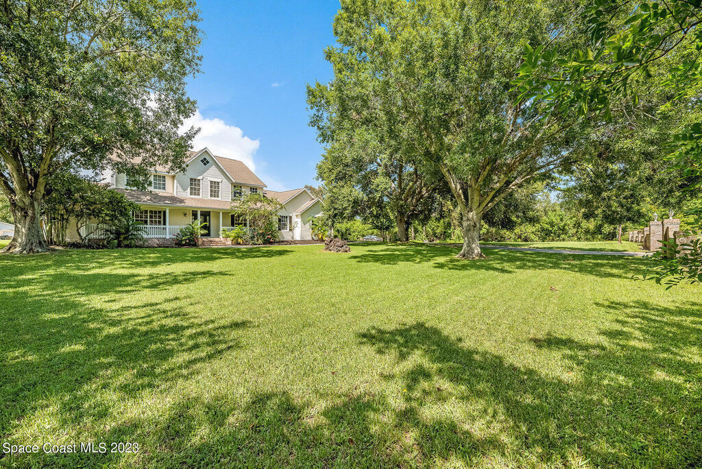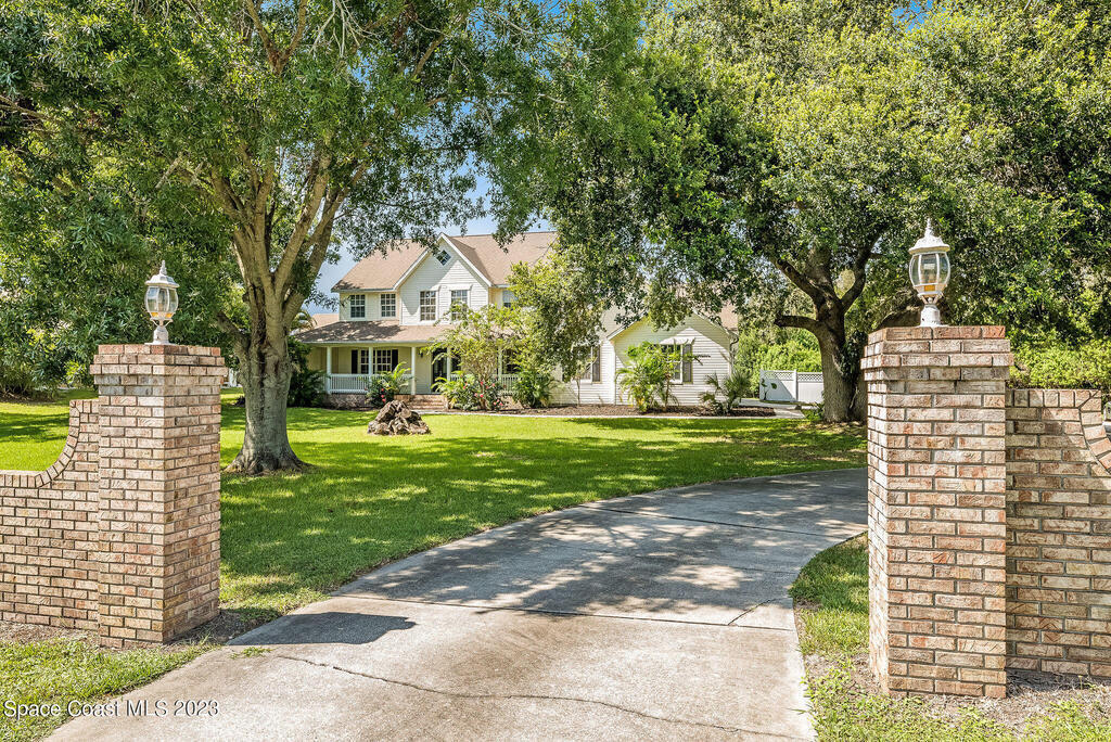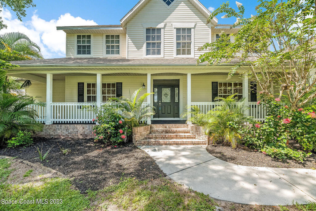 MOTIVATED SELLERS! Serenity awaits on this stunning North Merritt Island estate. The large 1-acre lot offers all the space you're dreaming of for RV/boat storage, gardening, and homestead animals. Plus, you'll adore that gorgeous stone curb appeal! Inside, the sprawling layout offers plenty of flexibility and privacy, with a downstairs primary suite and large open kitchen. Outside, the glistening in-ground pool invites you to jump right in and cool off after a day a long day of work or play. And just imagine sitting on that lovely front porch while listening to the bird's chirp from the oak trees every morning. Simply divine!