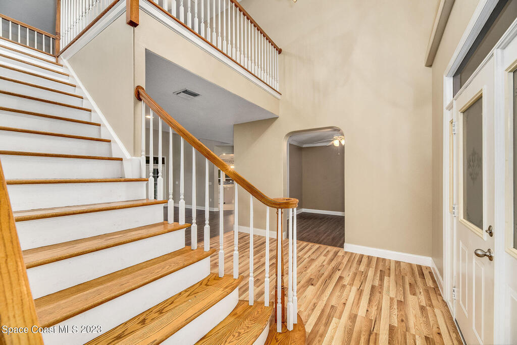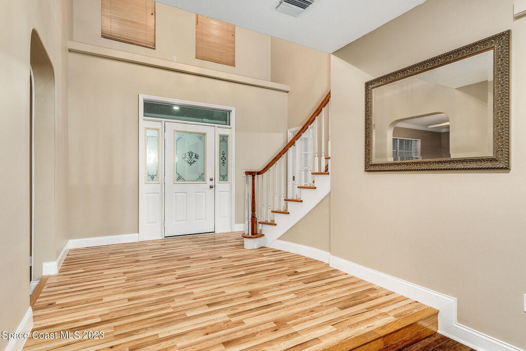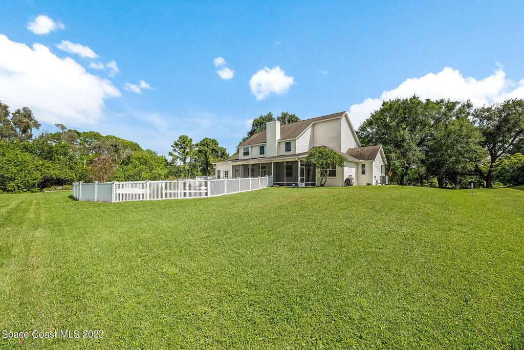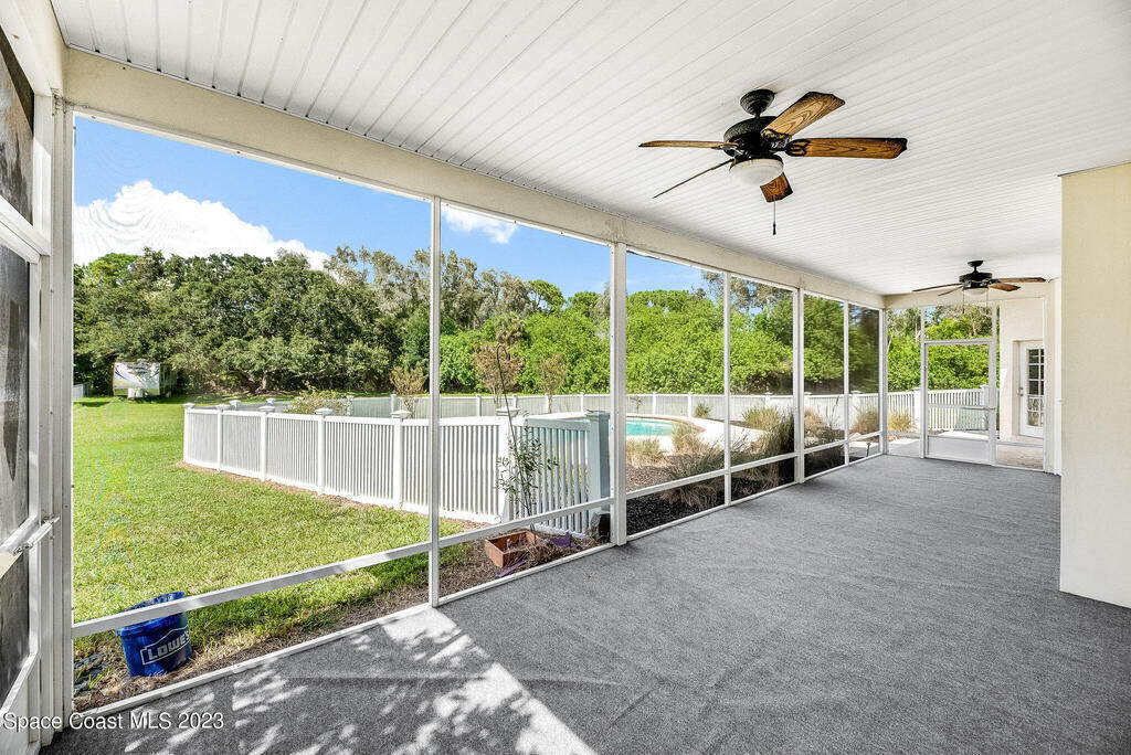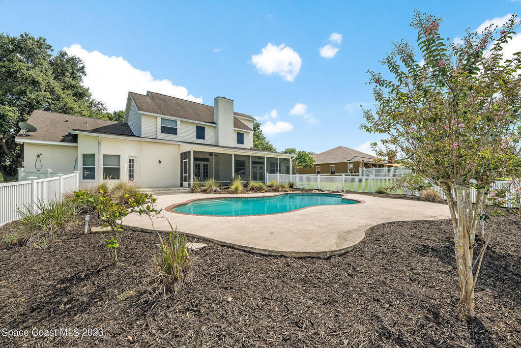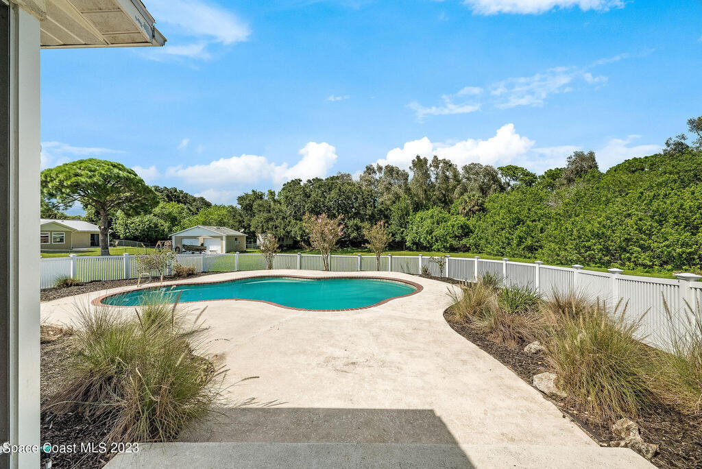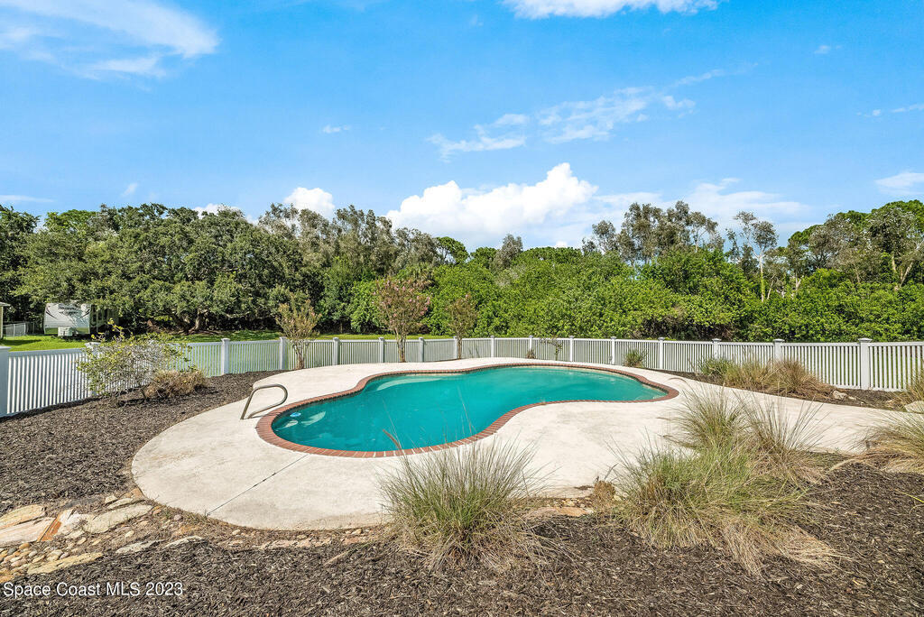 MOTIVATED SELLERS! Serenity awaits on this stunning North Merritt Island estate. The large 1-acre lot offers all the space you're dreaming of for RV/boat storage, gardening, and homestead animals. Plus, you'll adore that gorgeous stone curb appeal! Inside, the sprawling layout offers plenty of flexibility and privacy, with a downstairs primary suite and large open kitchen. Outside, the glistening in-ground pool invites you to jump right in and cool off after a day a long day of work or play. And just imagine sitting on that lovely front porch while listening to the bird's chirp from the oak trees every morning. Simply divine!