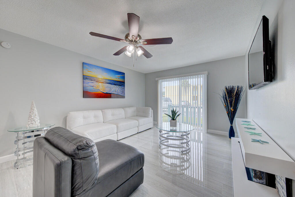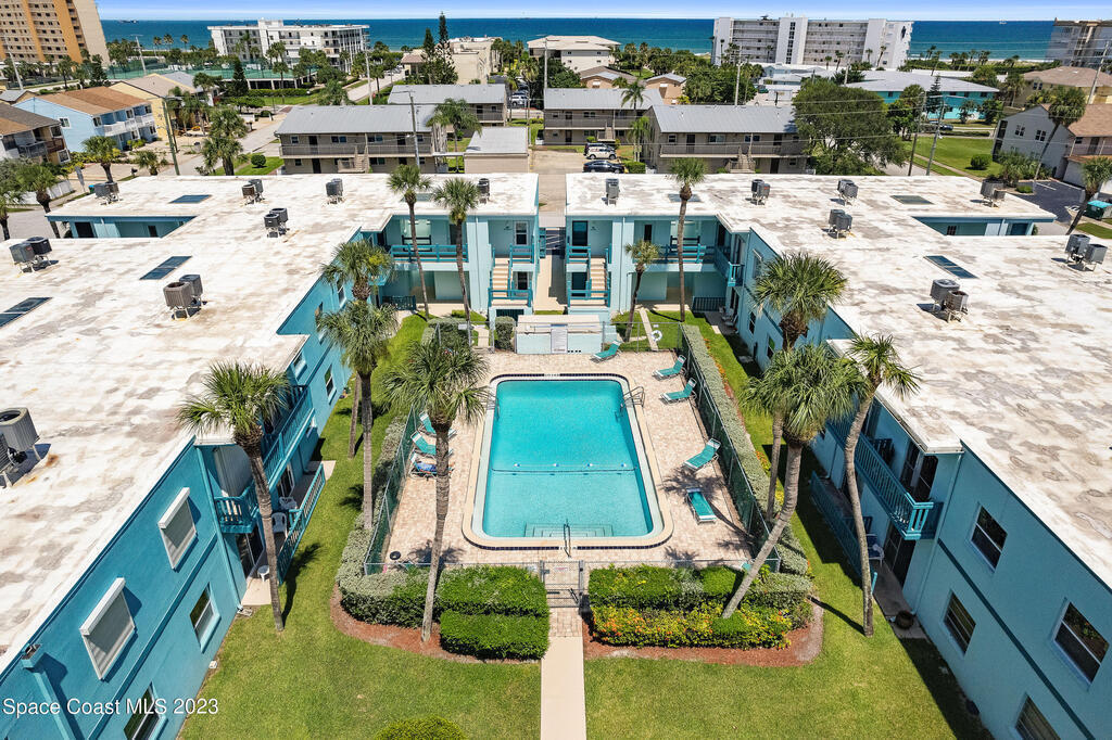 Enjoy living by the Beach in this completely renovated Condominium! This 2 bedroom, 1 bathroom, 938 sq ft condo is located on the ground floor! It features new hurricane rated sliders & Windows, updated Kitchen with all new appliances, cabinets and quartz countertops, new porcelain flooring throughout, updated bathroom, new plumbing, new tankless water heater, new electrical panel, new LED lights, and new AC Handler. Reserved parking directly outside unit & guest parking. Perfect location a few blocks from the ocean, near parks, library, dining, shopping, 20 min to Kennedy Space Center, NASA, SpaceX, Blue Origin, 20 min to Patrick Space Force Base, 45 min to Orlando. Don't wait! This property won't last long!