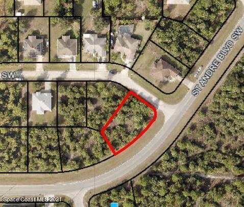 Just cleared, High and Dry well above the crown of the road! Oversized CORNER lot of St Andre and Farley / Striking location for Marque home. Paved Street on 2 fronts. power available, according to Brevard GIS map no wetlands. Worth thousands, several 8' palm trees could be relocated to create a tropical screen around property. NEW Homes in this area are valued in to the 400ks this corporation has this several lots available in Palm Bay call for a list. Buyer to complete their own due diligence. Building area in flood zone X according to fema map