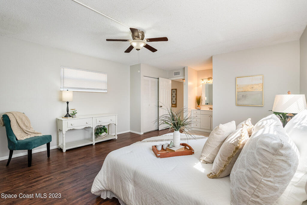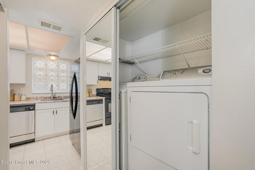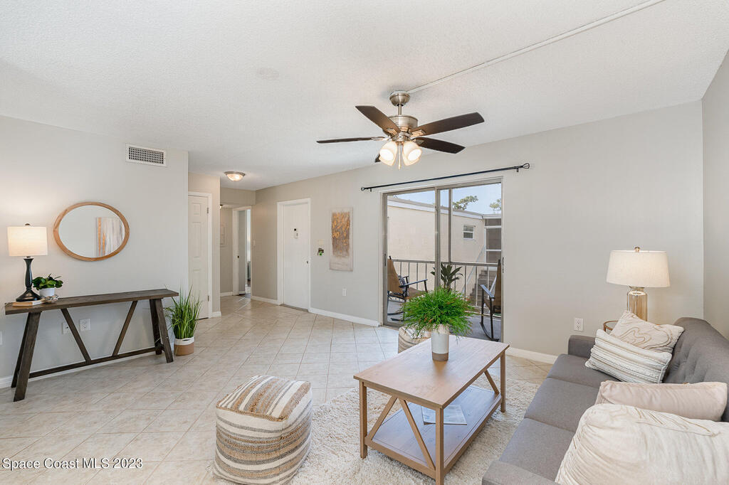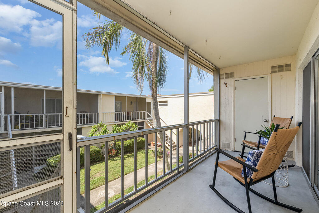 Nicely UPDATED spacious 2 bed, 2 bath condo a BLOCK FROM THE RIVER. Modern Kitchen with all appliances & large pantry closet. IN-UNIT LAUNDRY (Washer & Dryer included). Central AC, Ceiling fans in each room & NO CARPET. King size owner's suite is large enough for a desk or sitting area. Huge walk-in closet plus additional closets for clothes or linens. The owner's bathroom has a step-in tiled shower with sliding doors. The second bedroom has easy access to the hall bath with tiled tub and shower combo. Tons of storage and closet space. Utility room on the private screened porch/balcony. Only a block from the sunrise at the River & short distance Wickham Park for beautiful sunsets. Conveniently located close to Beaches, Eastern Florida State College, Groceries, and Shopping.