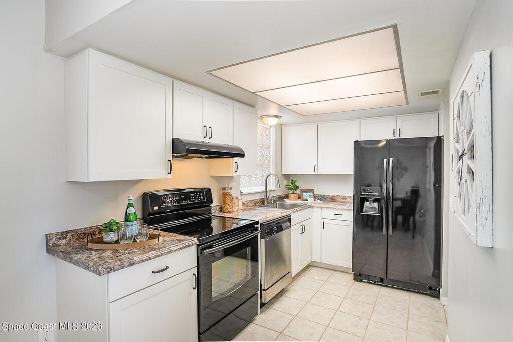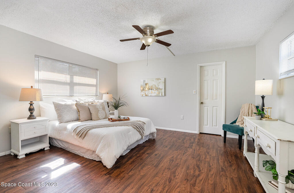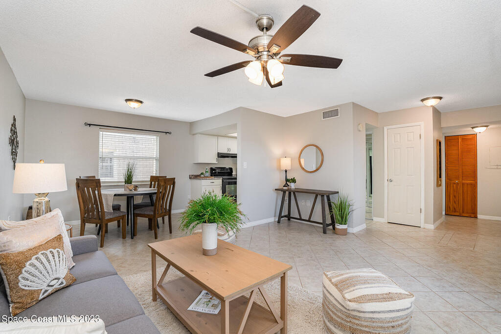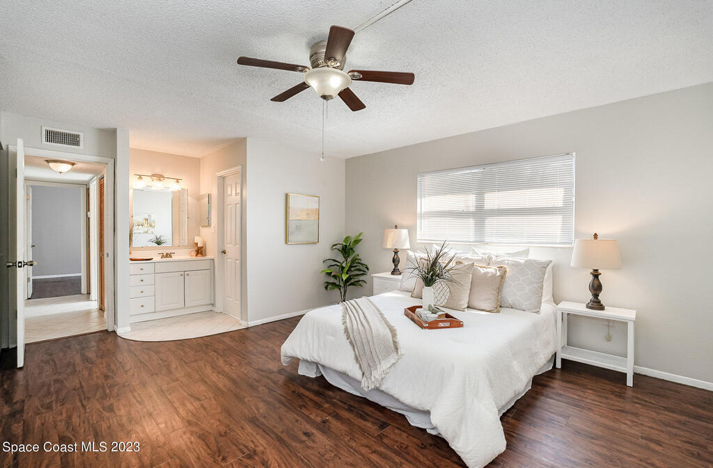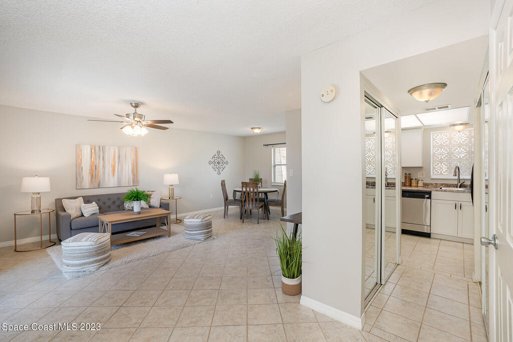 Nicely UPDATED spacious 2 bed, 2 bath condo a BLOCK FROM THE RIVER. Modern Kitchen with all appliances & large pantry closet. IN-UNIT LAUNDRY (Washer & Dryer included). Central AC, Ceiling fans in each room & NO CARPET. King size owner's suite is large enough for a desk or sitting area. Huge walk-in closet plus additional closets for clothes or linens. The owner's bathroom has a step-in tiled shower with sliding doors. The second bedroom has easy access to the hall bath with tiled tub and shower combo. Tons of storage and closet space. Utility room on the private screened porch/balcony. Only a block from the sunrise at the River & short distance Wickham Park for beautiful sunsets. Conveniently located close to Beaches, Eastern Florida State College, Groceries, and Shopping.