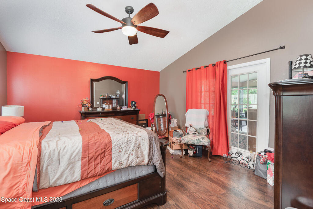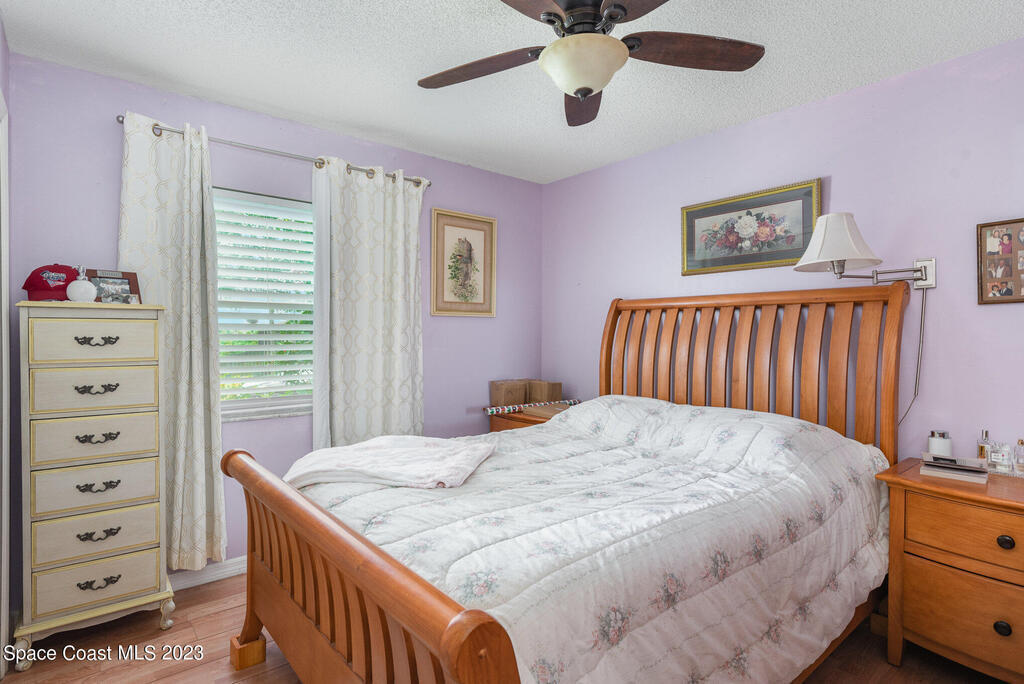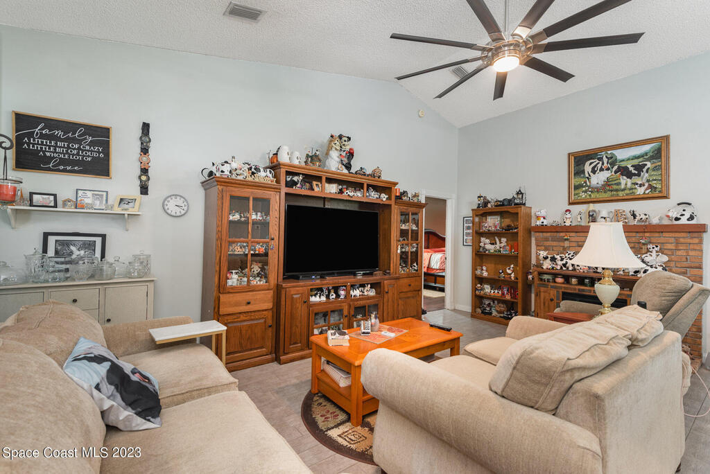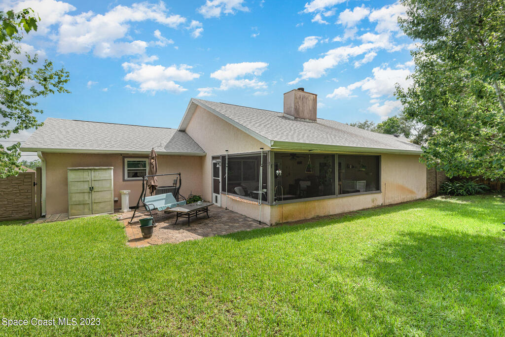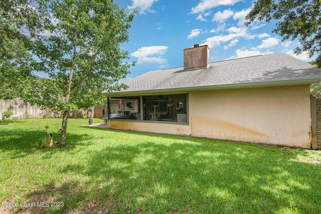 3/2/2 located in the highly desirable Tanglewood neighborhood. New roof, new A/C, water heater, & new impact glass windows within the last year. Recently re-piped water lines overhead. Kitchen is open to the Family and Dining Rooms with vaulted ceilings. Master bath has a nice walk-in tiled shower, double sinks, & walk in closet. Guest bath has a walk-in shower. Master bedroom and Living room both have French doors leading out to the large screened in back porch. Back porch/ paver patio is great for hosting get togethers. Wood burning fireplace, paver driveway, beautifully landscaped. Close to the Space Center, Port Canaveral, & Orlando.