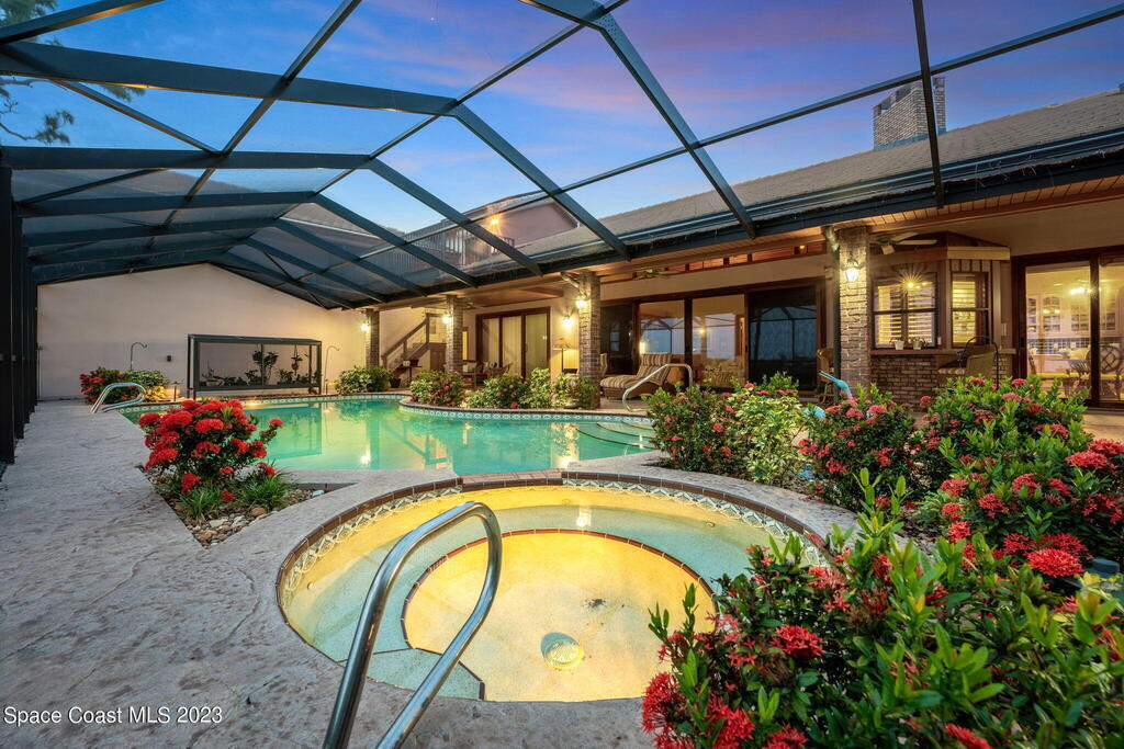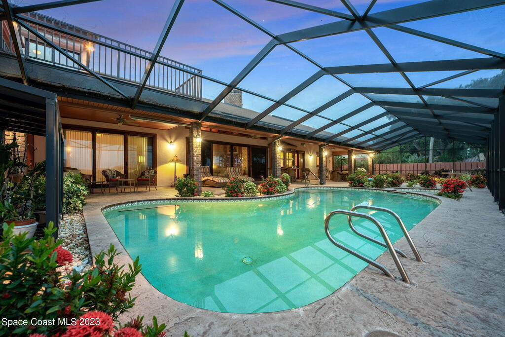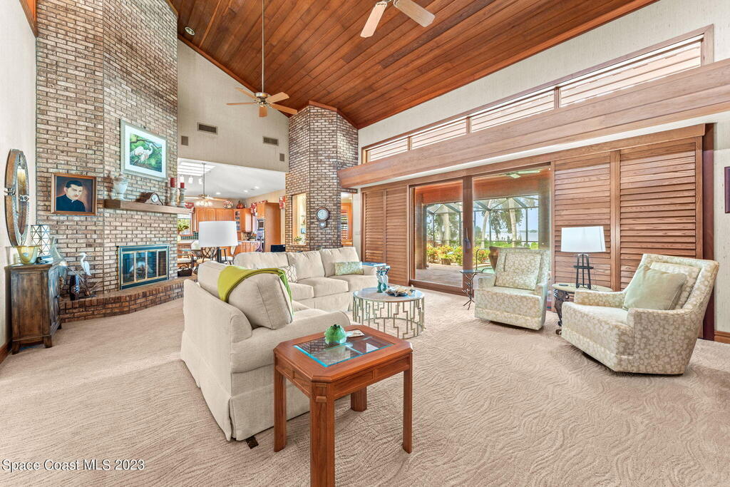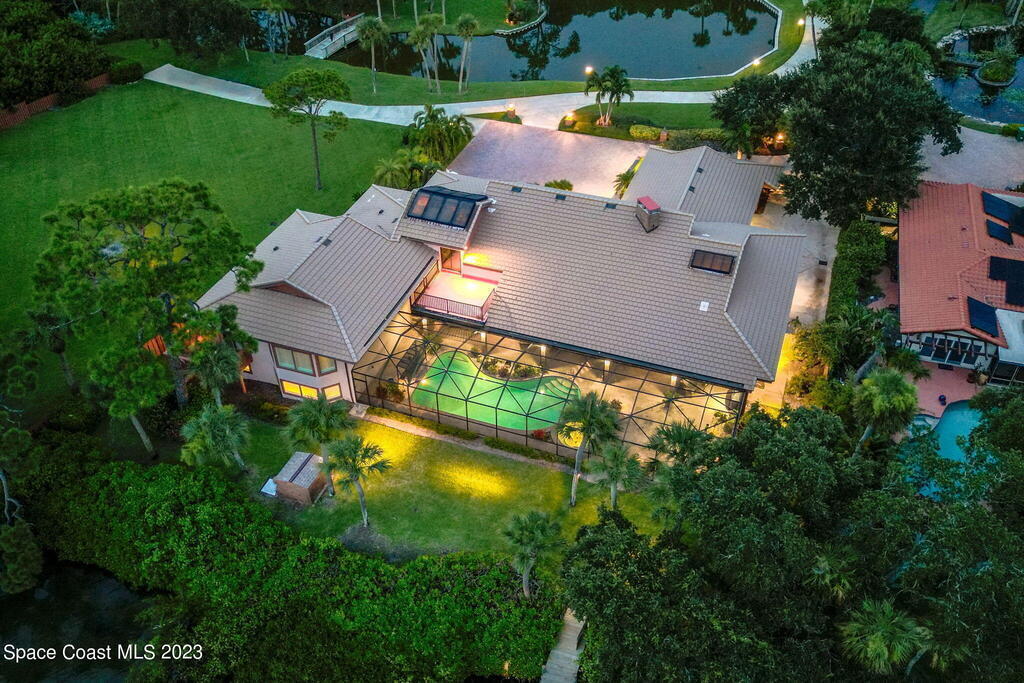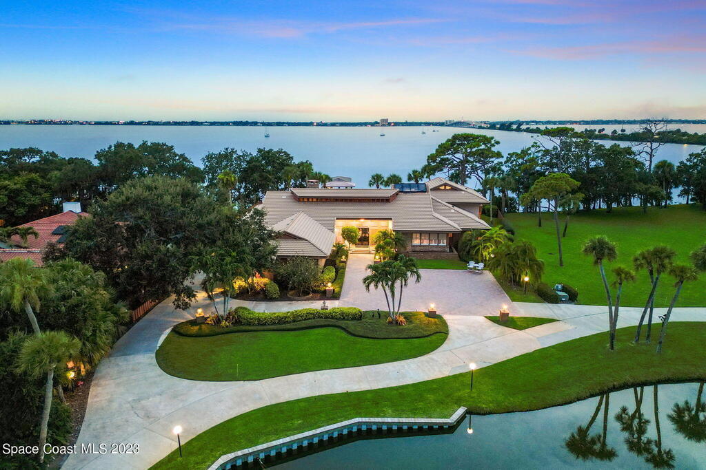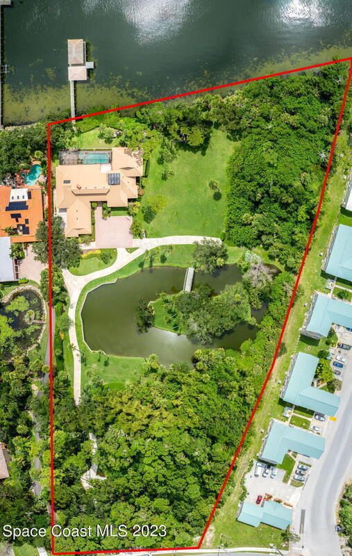 This iconic estate along picturesque Riverside drive consists of three platted and divisible parcels, collectively encompassing an impressive 472 feet of opulent Indian Riverfront panoramas. The property features a well-appointed boat dock with a lift, a private pond, a screened pool area, expansive outdoor living spaces, two balconies with the added distinction of a lower level bonus room / gym. Upon entry, one is greeted by the commanding presence of dramatic wooden ceilings that soar above a capacious great room, complete with an elegant brick fireplace and seamless access the kitchen and the lanai. Well thought out, there two guest bedrooms that feature en-suite baths and a dedicated office. The third floor reveals a versatile loft space perfect for a 4th bedroom with kitchenette.