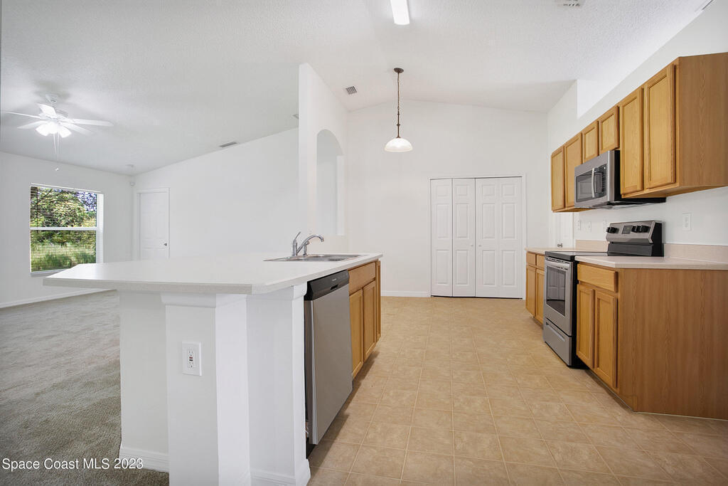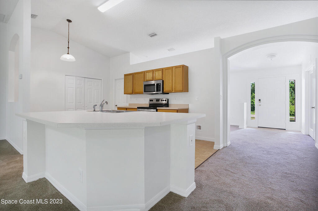Take advantage of a 2% Seller-Paid Rate Buydown, offering you an even easier path to homeownership (terms and conditions apply) Just updated with new professional photos and Matterport VR Tour! Spacious 3/2 home in Palm Bay. Boasting neutral hues, vaulted ceilings, a generous kitchen with an island, and an open family room, this home is ready for your personal touch. Flexibility is key with a room suitable as a home office or fourth bedroom. The home also features two guest bedrooms and a master suite complete with a walk-in closet and private bathroom. Outside, there's an inviting backyard with ample green space.