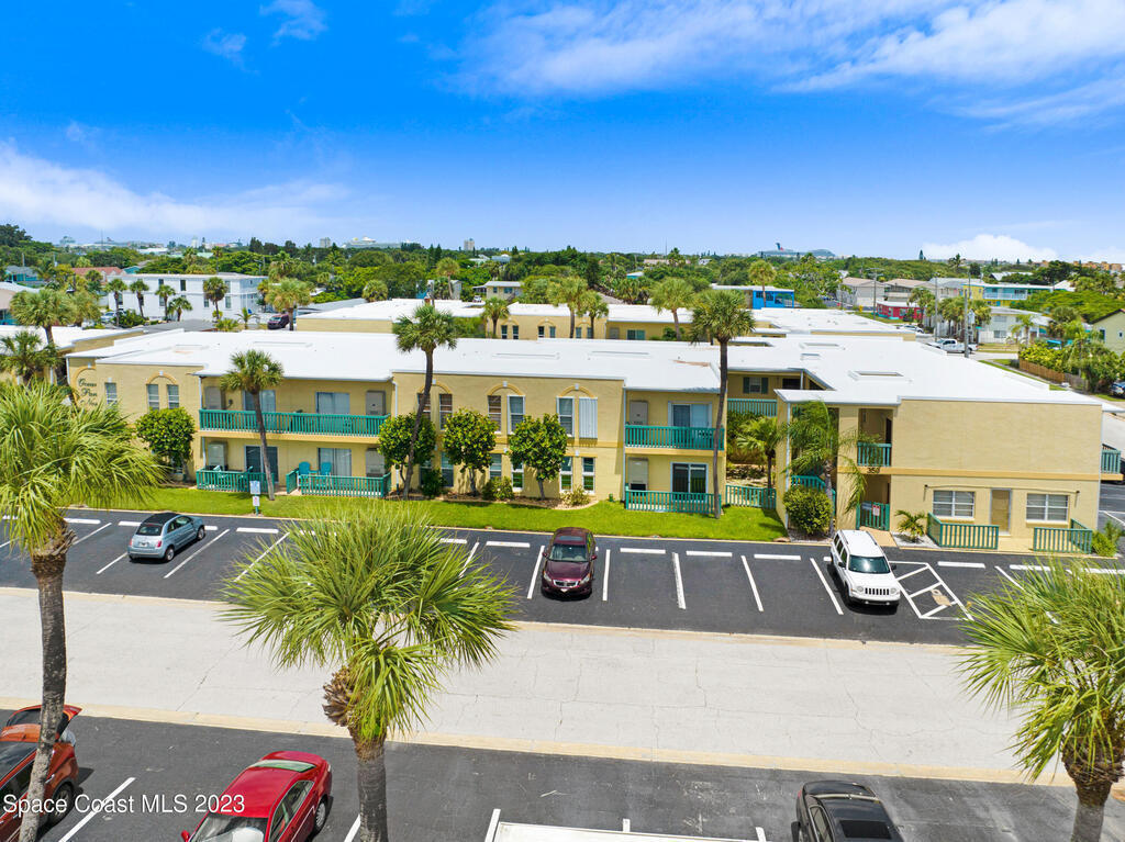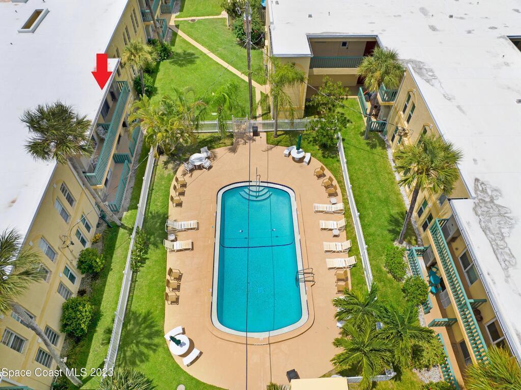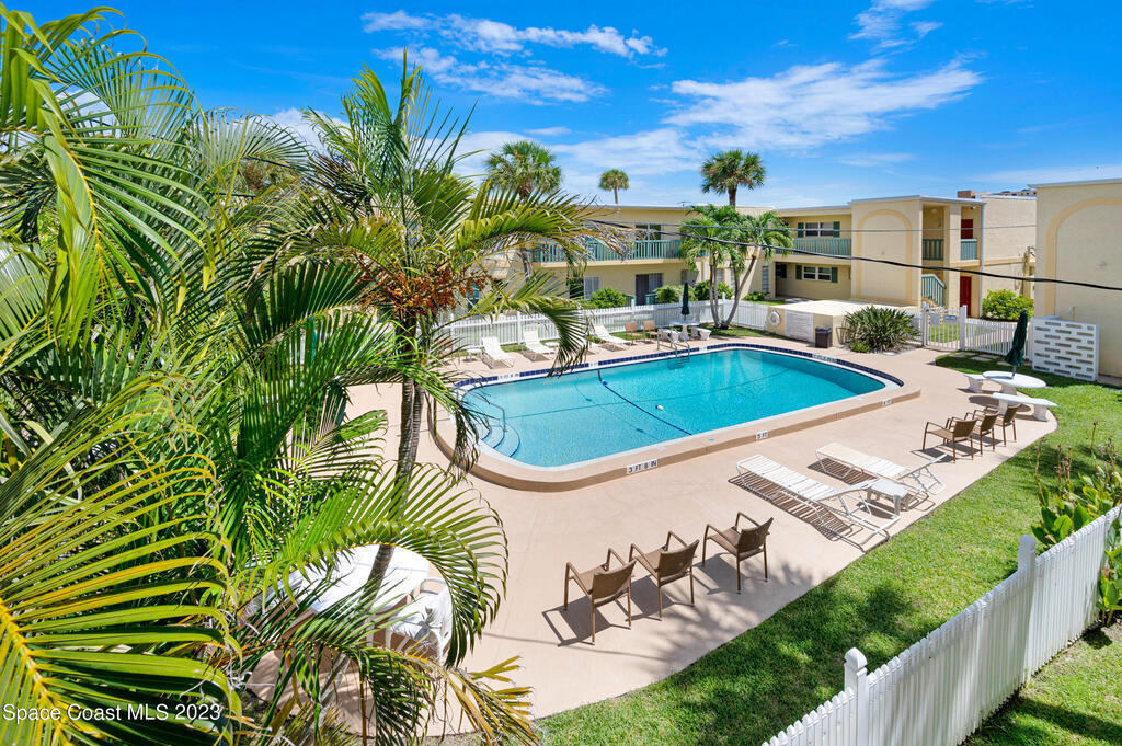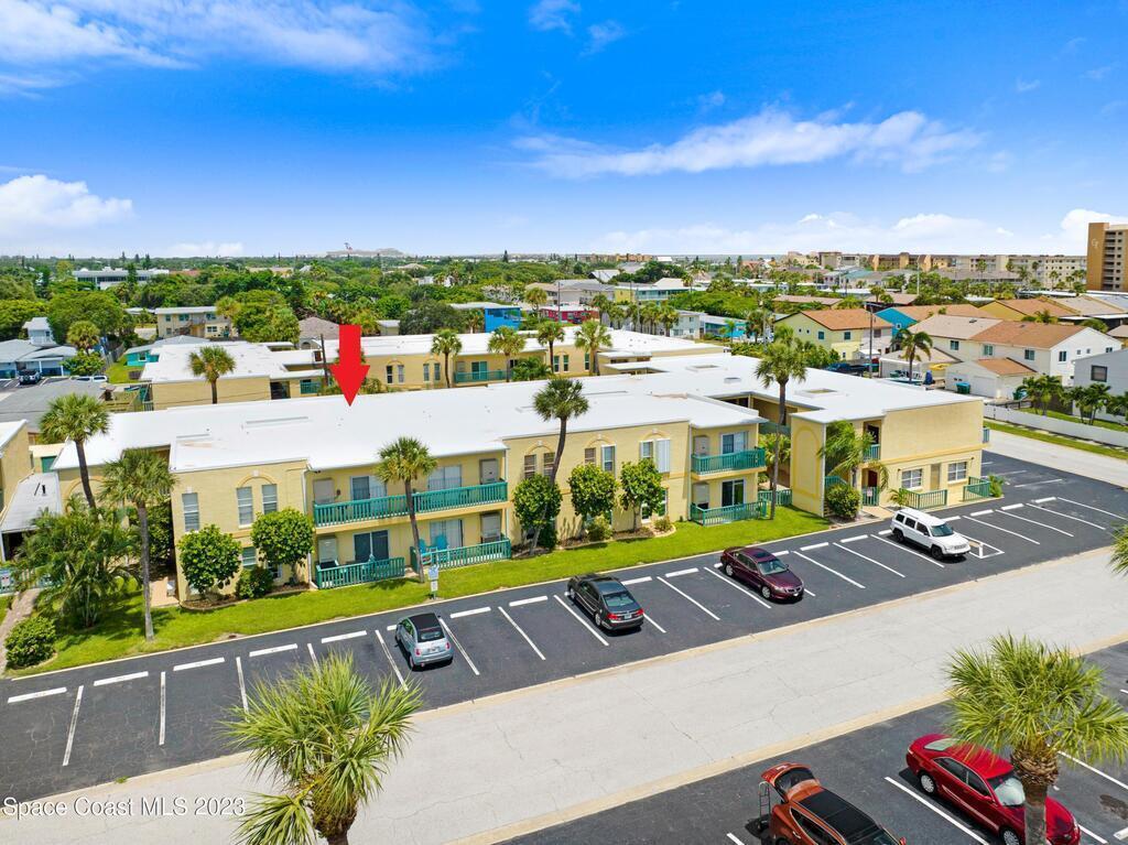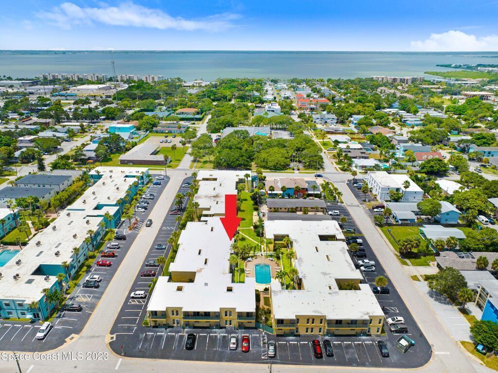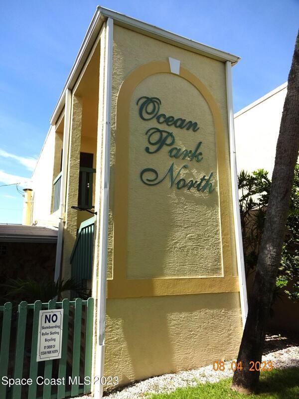Perfect Beach Condo only 2 blocks from the Beach!! Many upgrades include tile flooring throughout, newer cabinets, tastefully decorated, 2 bedrooms, 1 full bath, 2 living areas, balcony overlooks the inner courtyard and pool! Great views of all launches! Move-in ready for a low price! Laundry room is right downstairs. Well kept complex with a reasonable monthly HOA fee. HOA fee includes cable, internet, water and more! Close to library, parks, tennis courts and more! Taylor Park Fridays is just a block down the street and features food trucks, music and more on the first Friday of each month. Great community spirit! New roof, ac is about 3 years old. This beauty is ready to go!