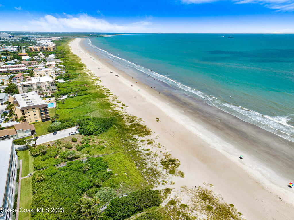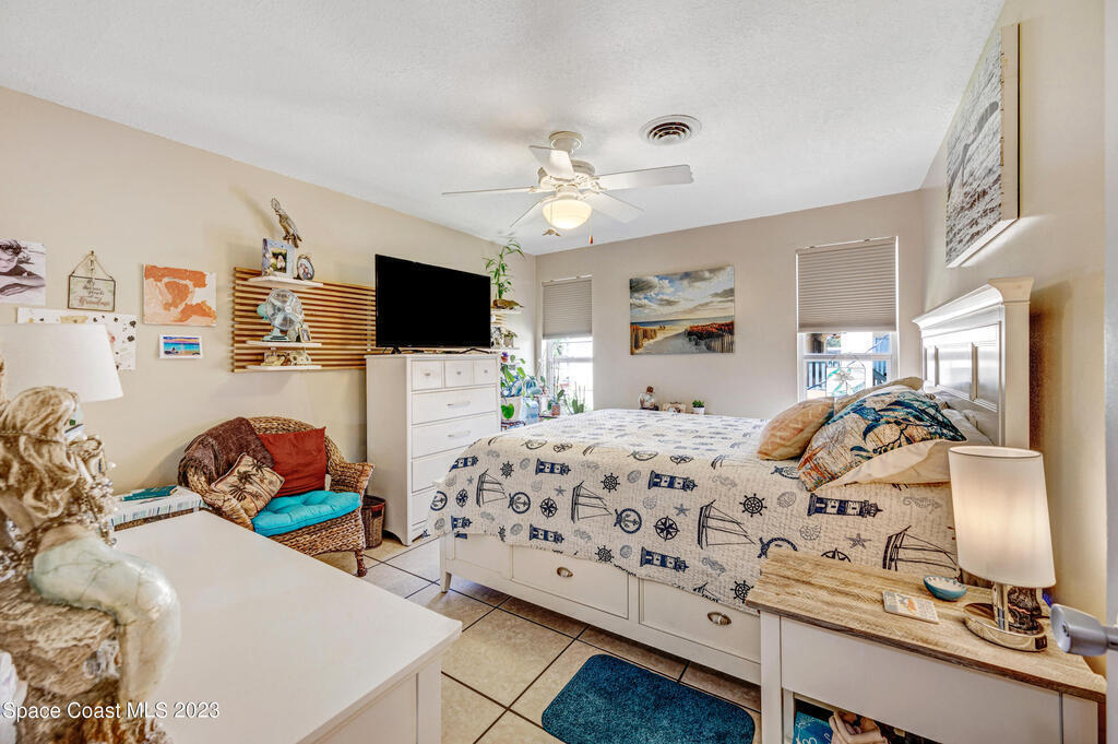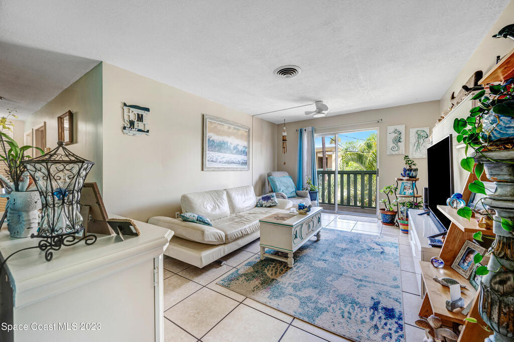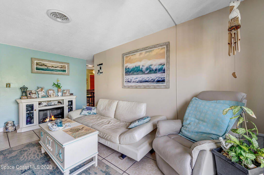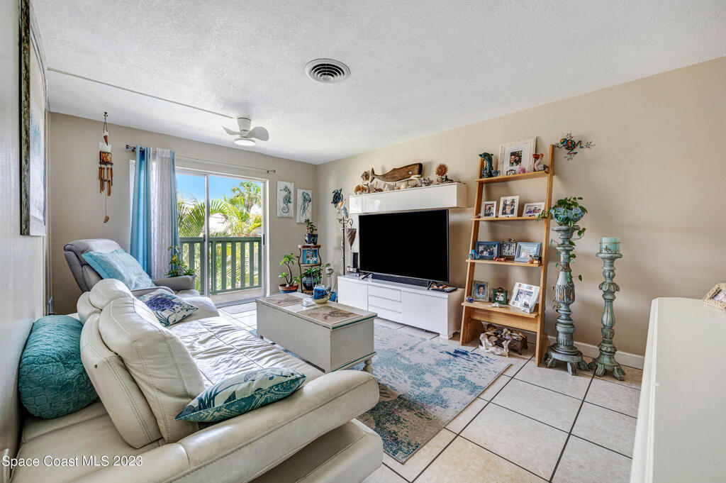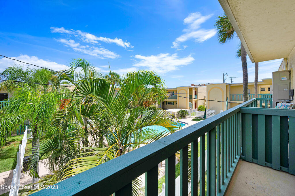 Perfect Beach Condo only 2 blocks from the Beach!! Many upgrades include tile flooring throughout, newer cabinets, tastefully decorated, 2 bedrooms, 1 full bath, 2 living areas, balcony overlooks the inner courtyard and pool! Great views of all launches! Move-in ready for a low price! Laundry room is right downstairs. Well kept complex with a reasonable monthly HOA fee. HOA fee includes cable, internet, water and more! Close to library, parks, tennis courts and more! Taylor Park Fridays is just a block down the street and features food trucks, music and more on the first Friday of each month. Great community spirit! New roof, ac is about 3 years old. This beauty is ready to go!