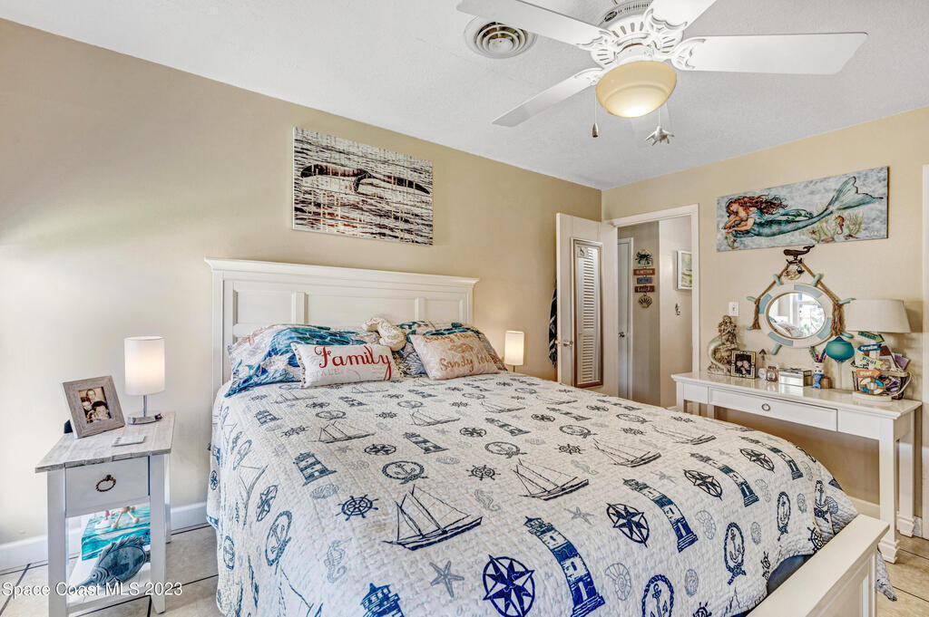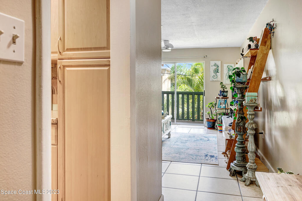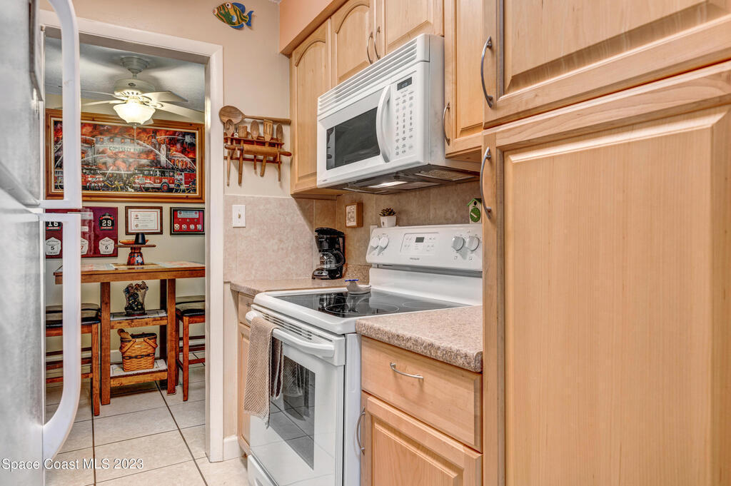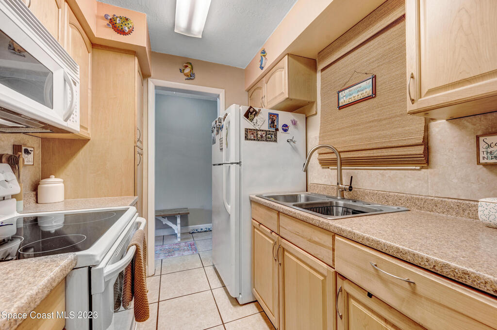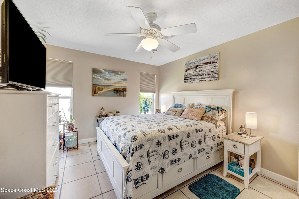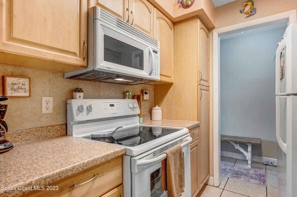 Perfect Beach Condo only 2 blocks from the Beach!! Many upgrades include tile flooring throughout, newer cabinets, tastefully decorated, 2 bedrooms, 1 full bath, 2 living areas, balcony overlooks the inner courtyard and pool! Great views of all launches! Move-in ready for a low price! Laundry room is right downstairs. Well kept complex with a reasonable monthly HOA fee. HOA fee includes cable, internet, water and more! Close to library, parks, tennis courts and more! Taylor Park Fridays is just a block down the street and features food trucks, music and more on the first Friday of each month. Great community spirit! New roof, ac is about 3 years old. This beauty is ready to go!