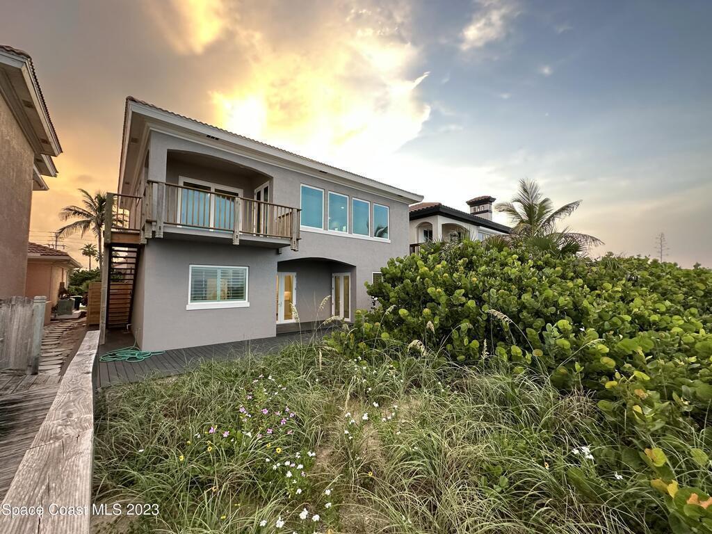 HELLO ~ Sunrise on Melbourne Beach, and Sunset on the Indian River. And NO worries...here's your completely remodeled 2678 sqft - 4/3 Beachfront Home. The recent renovation includes ALL new ~ impact windows/doors, paint inside/out, plantation shutters, automated blinds, floors, Quartz countertops, decks & railings, kitchen with ((wifi)) ready appliances- Dacor, Wolf, Fisher & Paykel, Samsung (W/D), new HVAC's, outdoor shower, and much more. Beachside bonus...this home is a part of the ocean to river ~ South Shores Community ~ that offers low HOA's, Har-Tru Tennis Courts, Large Pool & Sunset Pavilion, Kayak/SUP Dock, Sunset/Fishing Pier, Boat Parking, and Private Boat Lifts. Please don't miss out on this NEW Beachfront Beauty!! :) ((PRIVATE BOAT SLIP ON THE INDIAN RIVER NOW AVAILABLE))