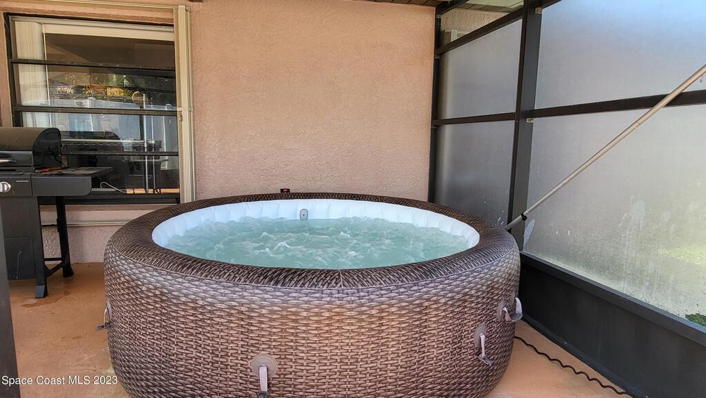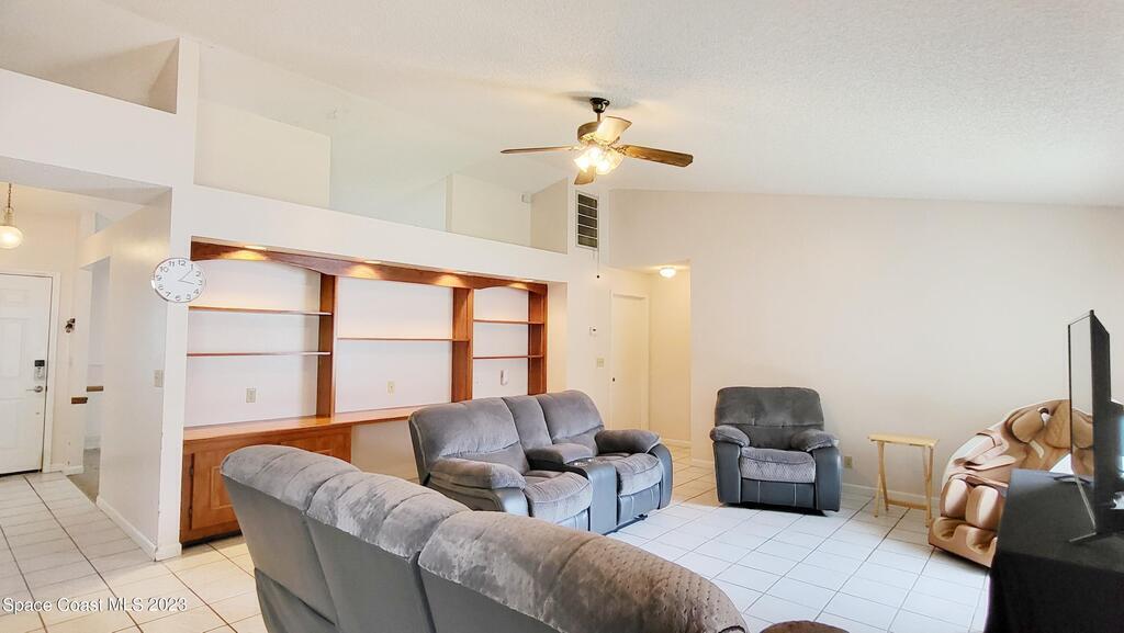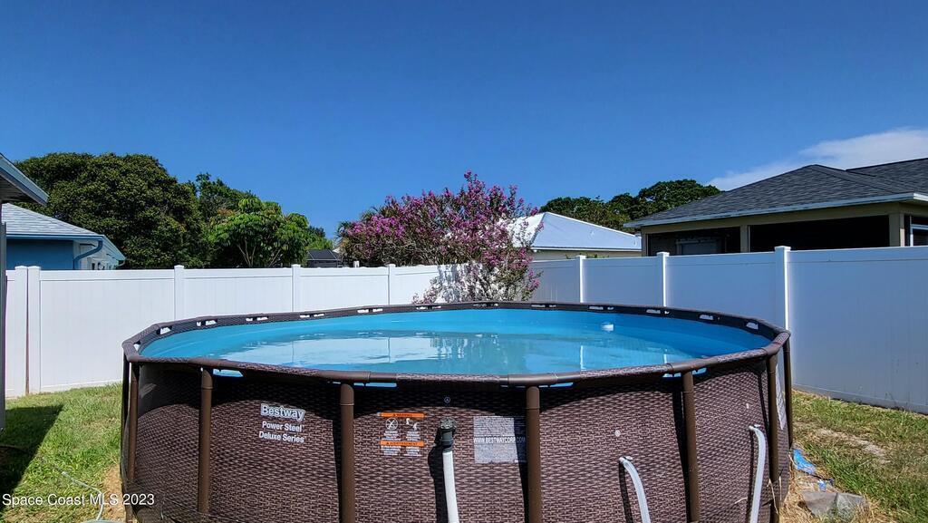 Well maintained concrete block home with a newer roof in the desirable Pine Cove Subdivision in Rockledge. Split bedroom floor plan with cathedral ceilings. Plenty of space with separate formal dining and living rooms. The kitchen overlooks the family room with a built-in desk and bookcases. Large screened patio with a nice size yard with an above ground pool and privacy fence.Close to all, including 20 minutes to the beach and 45 minutes to MCO airport.Hot tub negotiable. Washer & dryer do not convey.