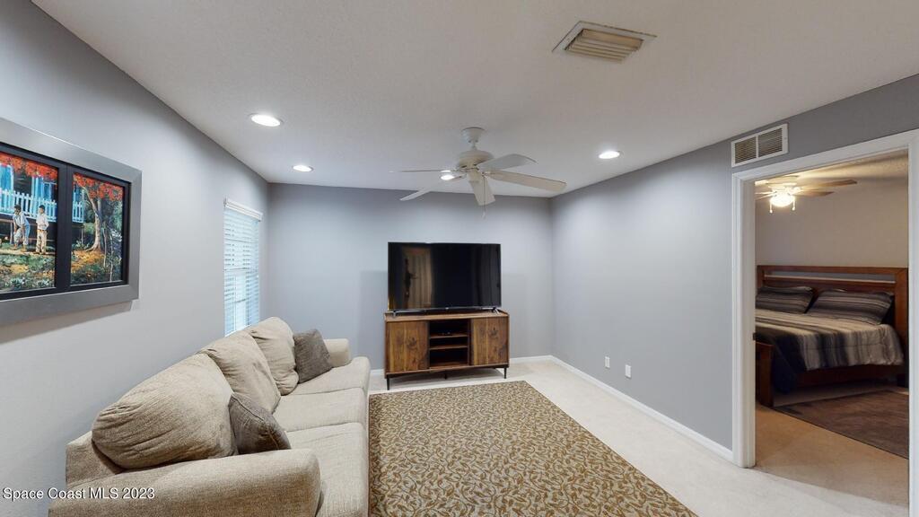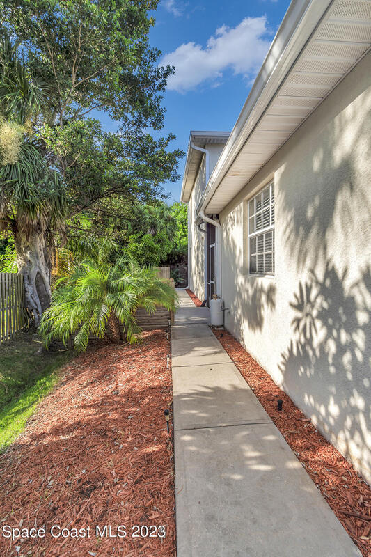 Welcome home to your Beachside townhouse. This beautiful home is located in a highly desirable neighborhood in Cape Canaveral. The secluded Ocean Gardens community offers each owner privacy while limiting the through traffic with a single entrance Blvd. This home includes a New Roof in 2023 and New AC in 2022. It boasts an open floor plan with vaulted ceilings and tons of natural light. The layout includes a bonus room that could be used as an office. This means working from home can be done efficiently without the need to clean up for guests. Enjoy the spacious kitchen with stainless steel appliances. Relax in the family room that includes a gas fireplace. French doors off the kitchen transition to a covered/screened side patio. The downstairs master suite is loaded with natural light