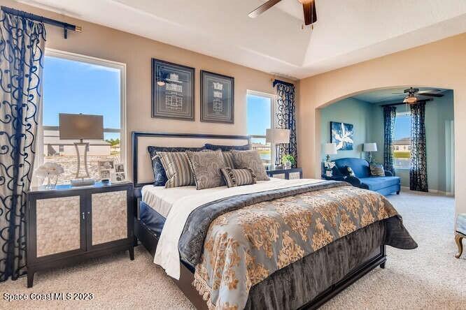 The Elm Royale, a spacious 5-bedroom, 4-bath home with a 3-car garage spanning 3,357 sq ft. boasting an upstairs media/ bonus room for entertainment, a fifth bedroom or office, walk-in closet, and a full bathroom. The layout is well-suited for a family offering ample space for everyone! The main floor showcases a formal living, dining, and family room all centered around the spacious gourmet kitchen that overlooks the extended covered lanai. The primary suite features elegant tray ceilings and a relaxing sitting room. Included are all white cabinets, quartz countertops, and beautiful tile in the main living areas. Smart Home. Amenities include pickleball, fitness center, and a sparkling pool all fostering social connections. Available April/May.