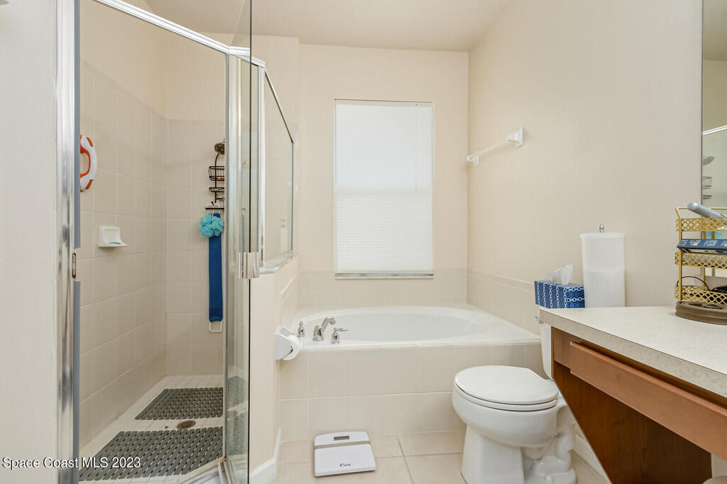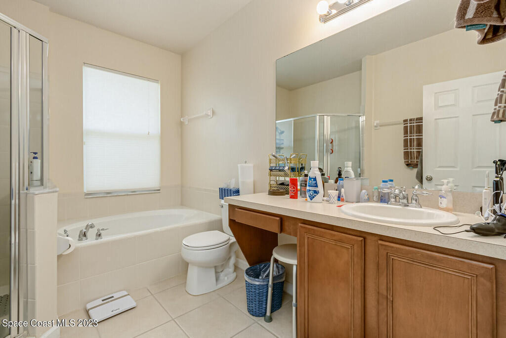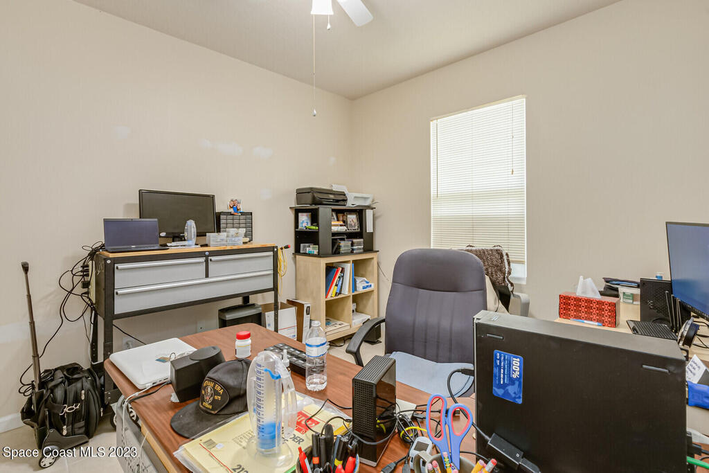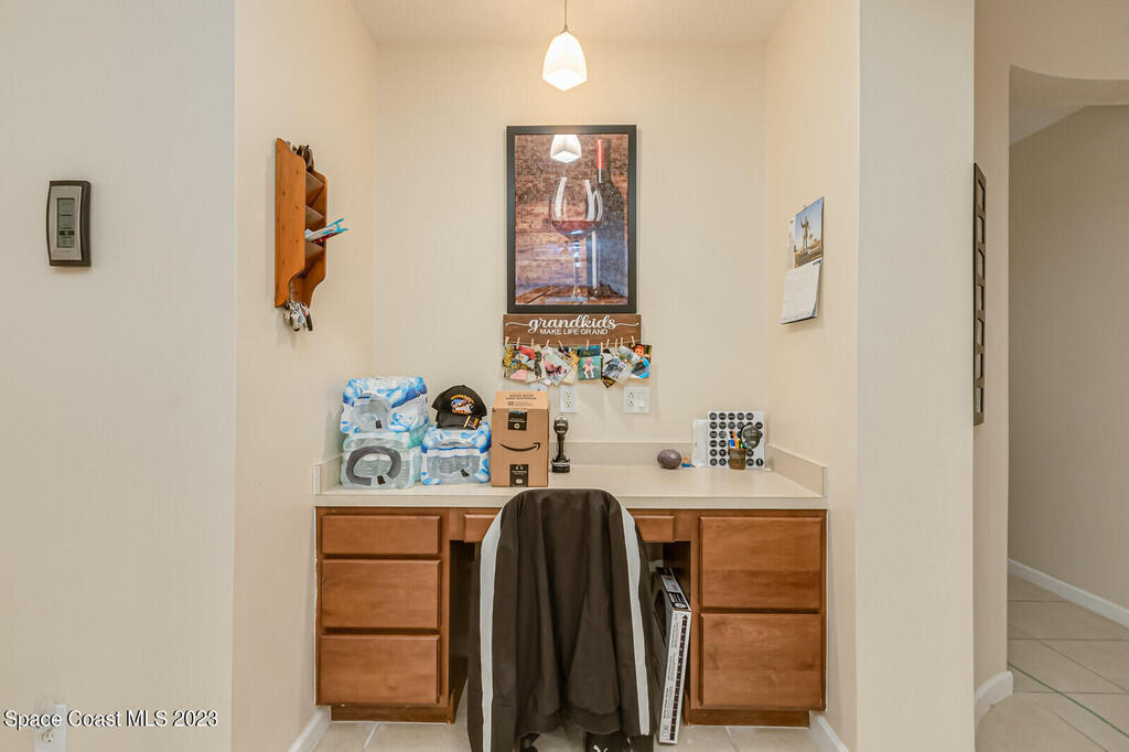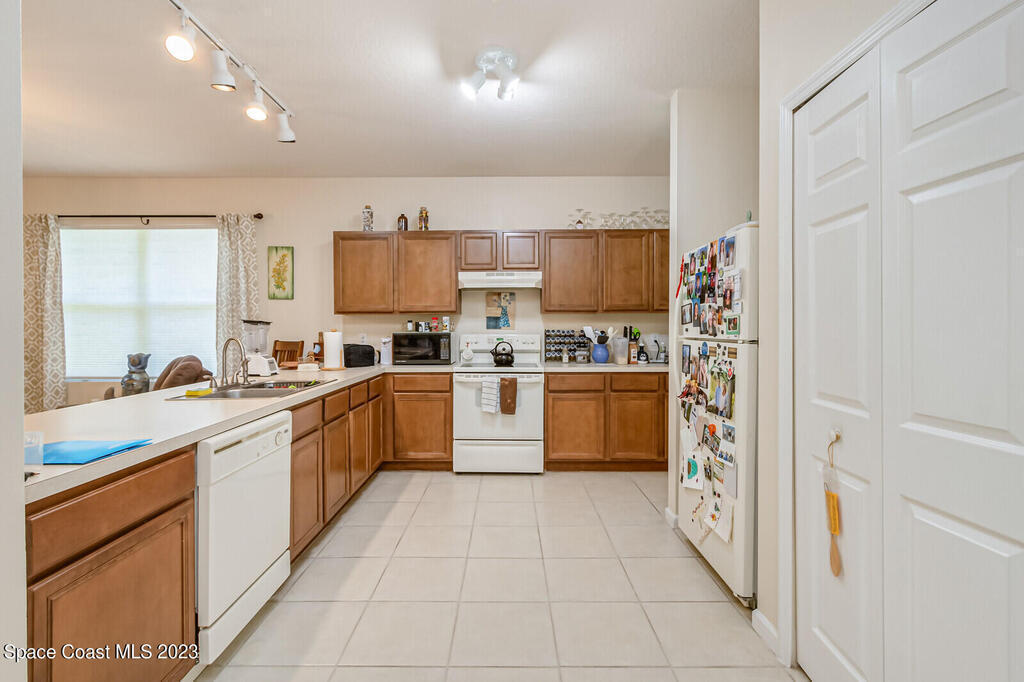 Back on the market. Buyer's financing failed. Inspections and appraisal done! Contemporary, move-in condition home boasts desirable floor plan with 3 bedrooms plus a flex room that's perfect for office, playroom, or gym. Roof is less than 2 years old; AC new in 2020. Tile throughout -- no carpet! Spacious kitchen with all appl included. Built-in desk area off kitchen. Master features a tub and separate shower along with a walk-in-closet. Porch has windows so it can be used screened or windowed for enjoyable year-round use. Back yard is partially fenced. Washer, dryer, freezer in garage, natural gas, alarm system also incl. Community boasts sidewalks and low HOA fees. Open area with scenic pond across street. Convenient to Florida Tech, I-95, beaches, schools, Patrick Space Force Base, shopping, and dining. Seller is downsizing. His loss is your gain. Come see it!