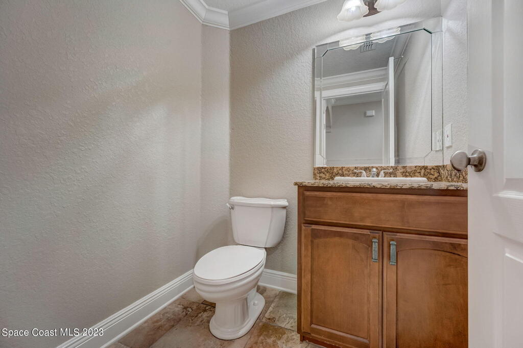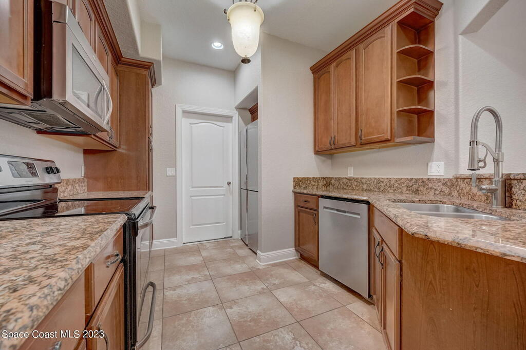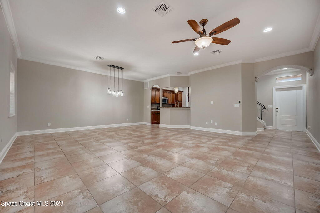 Absolutely stunning 3-bedroom, 2.5-bath, 2-story townhome nestled within the prestigious gated community of Riverwalk in Melbourne. Embrace the ultimate in coastal living with the luxury of a quick drive to the beach and easy access to nearby amenities. The well-designed layout features tile flooring on the lower level, perfectly complementing the high ceilings adorned with exquisite crown molding. Indulge in the elegance of granite countertops, 42'' wood cabinets, and top-of-the-line stainless steel appliances, making the kitchen a true masterpiece. A convenient half-bath graces the lower level, while the laundry facilities are conveniently located upstairs. Step onto the screened porch, accessible from the inviting family room, or retreat to the private balcony off the master bedroom