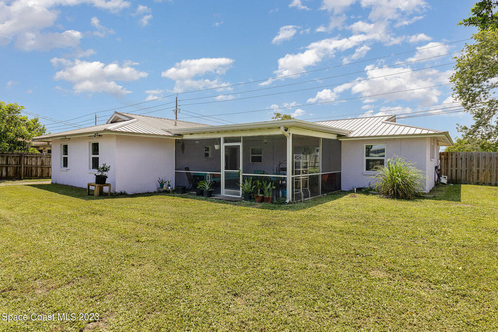 NEW METAL ROOF 2021, NEW WINDOWS 2020, freshly painted interior 2023, exterior painted 2022, beautiful renovated guest bathroom 2023, and more. This home boast tile/vinyl plank flooring throughout. This property also caters to all your parking needs, providing ample space for multiple vehicles. For those with recreational pursuits, a spacious concrete pad awaits, ready to accommodate a boat or RV with RV electrical hookup. The sizeable fenced in yard with large screened-in porch beckons you to unwind and enjoy the outdoors. Located in the heart of Melbourne providing easy access to shopping, schools, parks, and the beach! A perfect home for those looking for a spacious 4 bedroom 2 bath with amble parking.