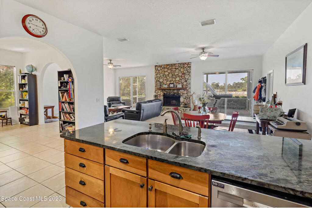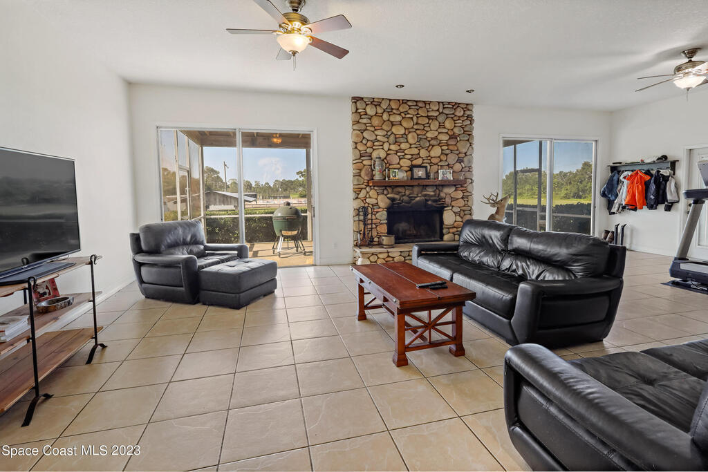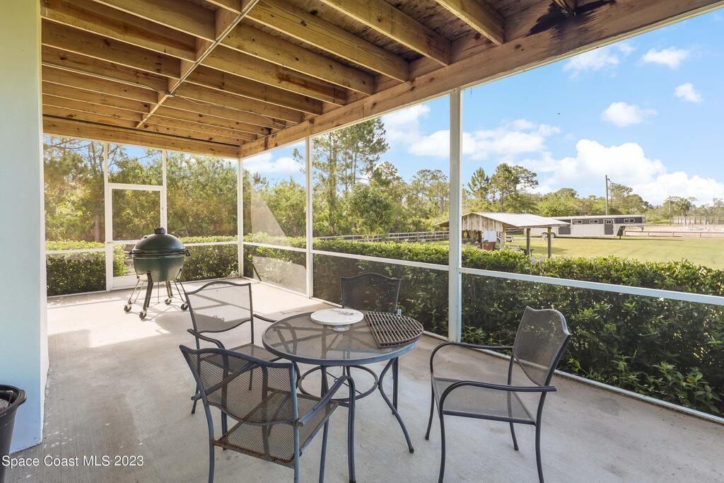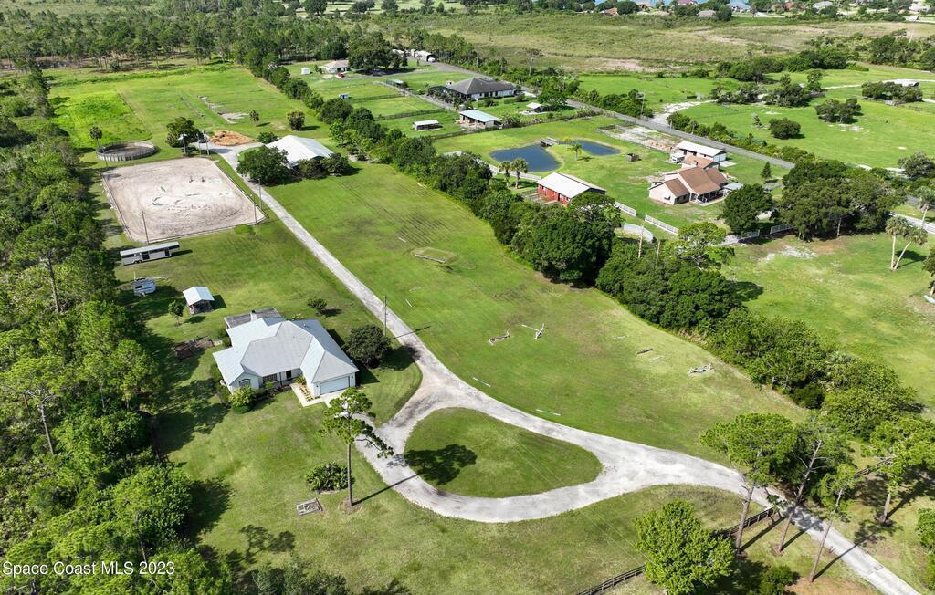 Discover the ultimate Equestrian training and boarding paradise! This property boasts a stunning 4-bedroom, 3-bath custom-built home with an attached 2-car garage, a serene screened patio, and an inviting open floor plan. Inside, you'll find a tasteful blend of tile and wood floorings throughout, adding an elegant touch to every room.The heart of the home is the expansive custom kitchen, featuring granite countertops, a butcher block center island chopping board, custom maple cabinetry, and high-end Viking Appliances. The centerpiece of the spacious living area is the captivating River Rock Stone Fireplace, accompanied by sliding glass doors on both sides, connecting the indoors with nature.Step outside to enjoy the covered porch, and just a short walk away, discover an enticing