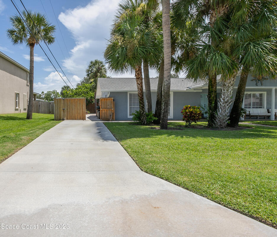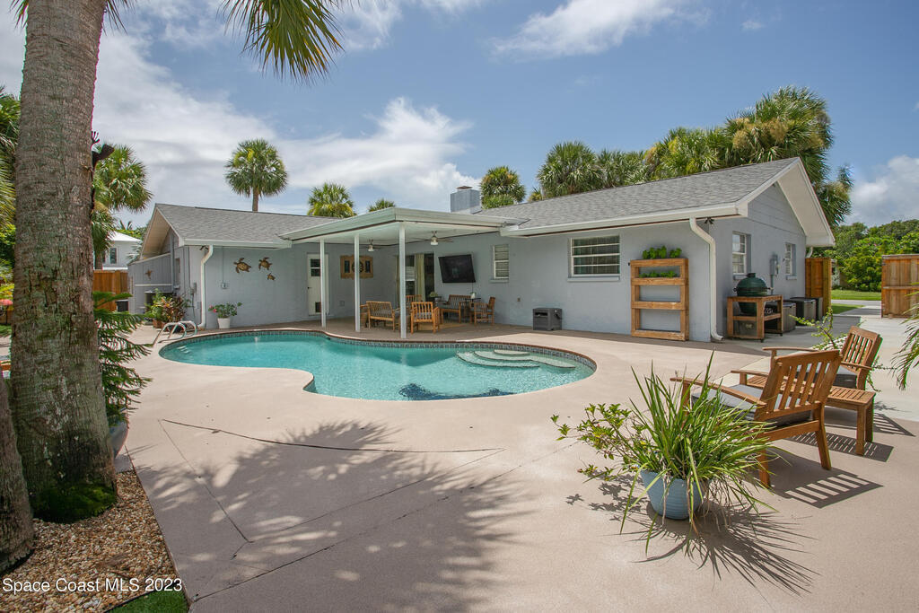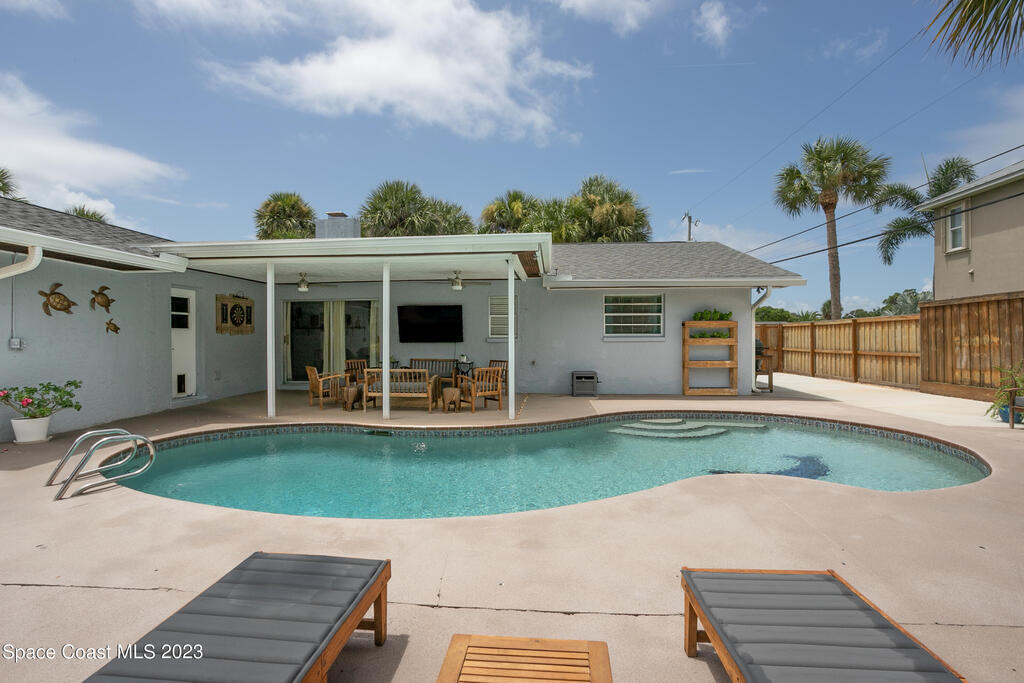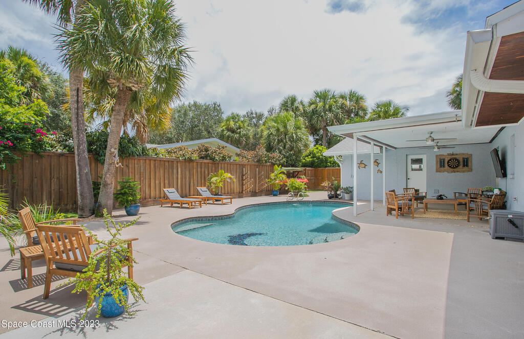 Nestled in the vibrant heart of Indialantic lies this exceptional residence, a quintessential emblem of coveted beachside living. With an unparalleled location mere moments from the sun-kissed shores, lush parks, bustling shopping districts, and an array of exquisite dining establishments, this home encapsulates the essence of coastal charm. Radiating a timeless allure, this gem beckons with its adorned front and back covered porches, inviting you to savor the coastal breeze and embrace laid-back moments. The low-maintenance backyard, adorned with astroturf, creates a serene oasis perfect for leisurely lounging by the inviting pool--a sanctuary amidst the bustle of daily life.Positioned on a generous corner lot, this residence stands out with ample parking options, catering