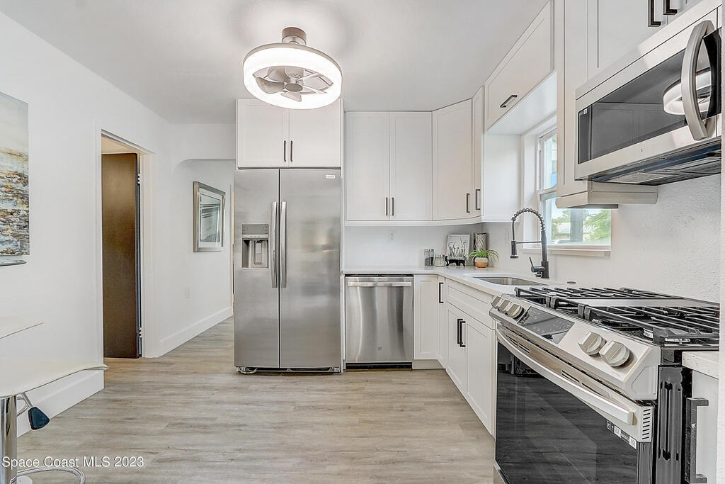 Completely remodeled block home with no HOA in a great neighborhood. The home has fresh paint inside and outside, new luxury waterproof vinyl plank throughout, new trim and fixtures, impact windows, and a new AC. The kitchen features 42-inch white shaker cabinets, new stainless appliances, quartz counters, and all-new fixtures. The bathroom has also been updated with 24x48 inch wall tile, new vanity, and all new fixtures. Call today for your private showing.