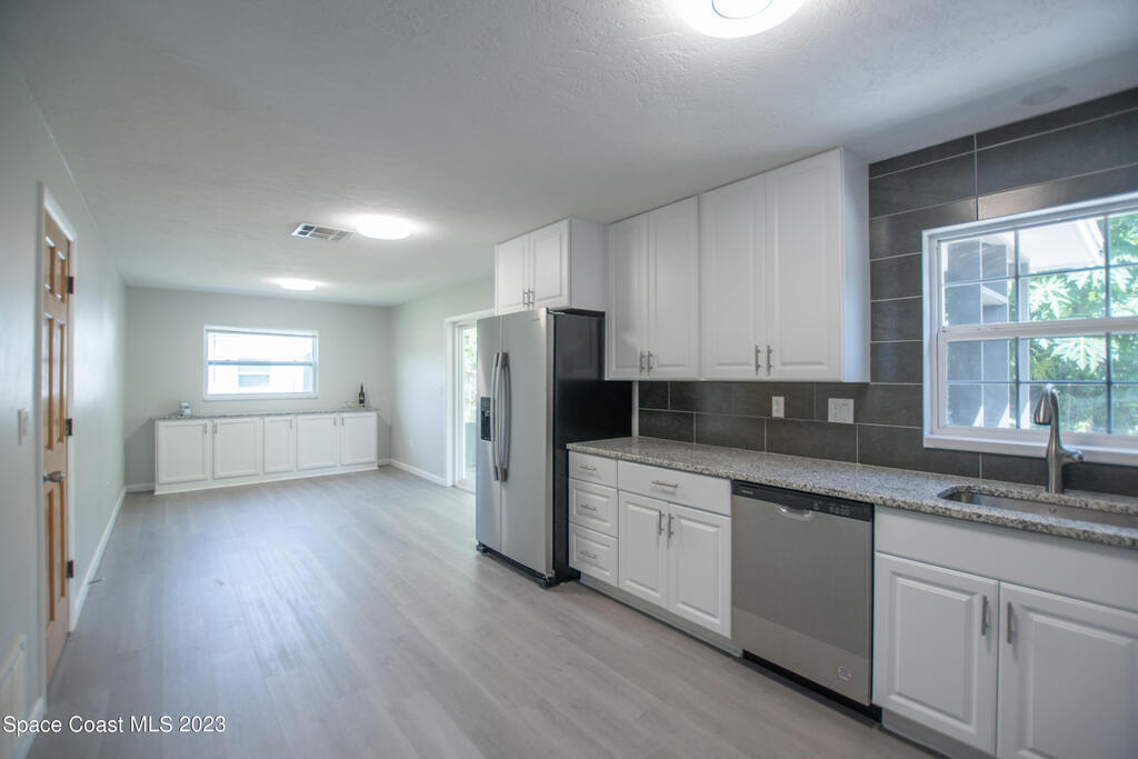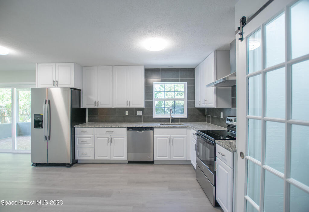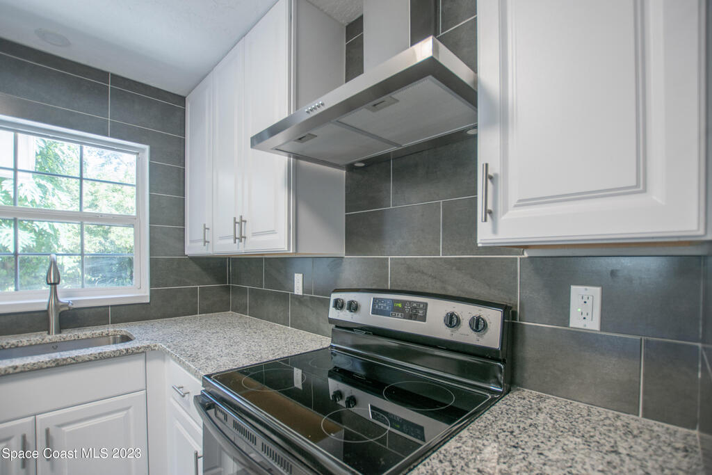 Price adjustment on this Beautifully renovated 3/2/2 situated on corner lot. Kitchen features new raised panel cabinets with 42'' uppers, Granite countertops, sleek tile backsplash, brand new SS appliance package and custom 10' buffet in DR. Large Walk-in pantry with custom shelving. Sizable rooms and updated bathrooms. Oversized double car garage with a brand new Hurricane garage door and opener. New roof, New HVAC, New attic Insulation, New W/H & New Electric panel. Freshly painted inside & out. New LVP flooring in main living spaces, New berber carpet in bedrooms. Home has double pane windows. Backyard features several mature citrus and fruit trees. Quick commute to the space center, beaches, grocery and downtown Titusville. Blocks away from US1 and easy access to I-95 & Hwy 46