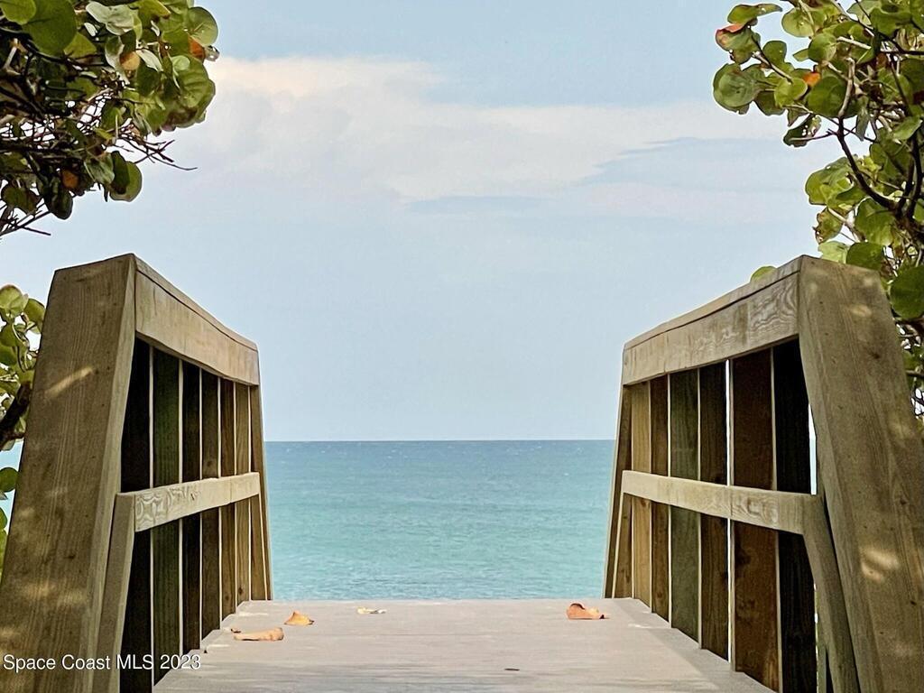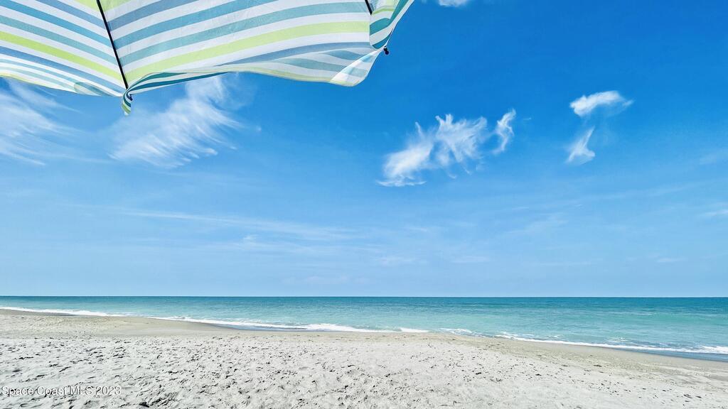 New PRICE! Rare opportunity to own an updated well maintained second level end unit condo that offers a lot of natural light in Breakers West, located in Melbourne Beach! Amazing ocean views from your kitchen, dining, living room or main bedroom! Enjoy stunning sunrises from your screened balcony and spectacular sunsets from your patio! This condo includes 1 shared garage space with private storage, heated pool, clubhouse and is steps to the beach! Beautiful new flooring recently installed, freshly painted interior, updated guest bath, stainless steel appliances, full size washer & dryer and roll down hurricane shutters. Bike to the local shops, restaurants, park pier and community events. A rated schools, rocket launches, sea turtle