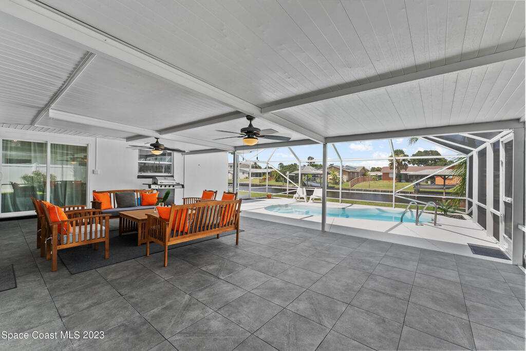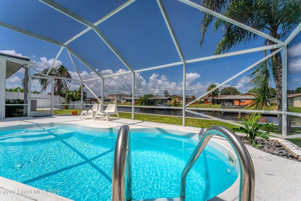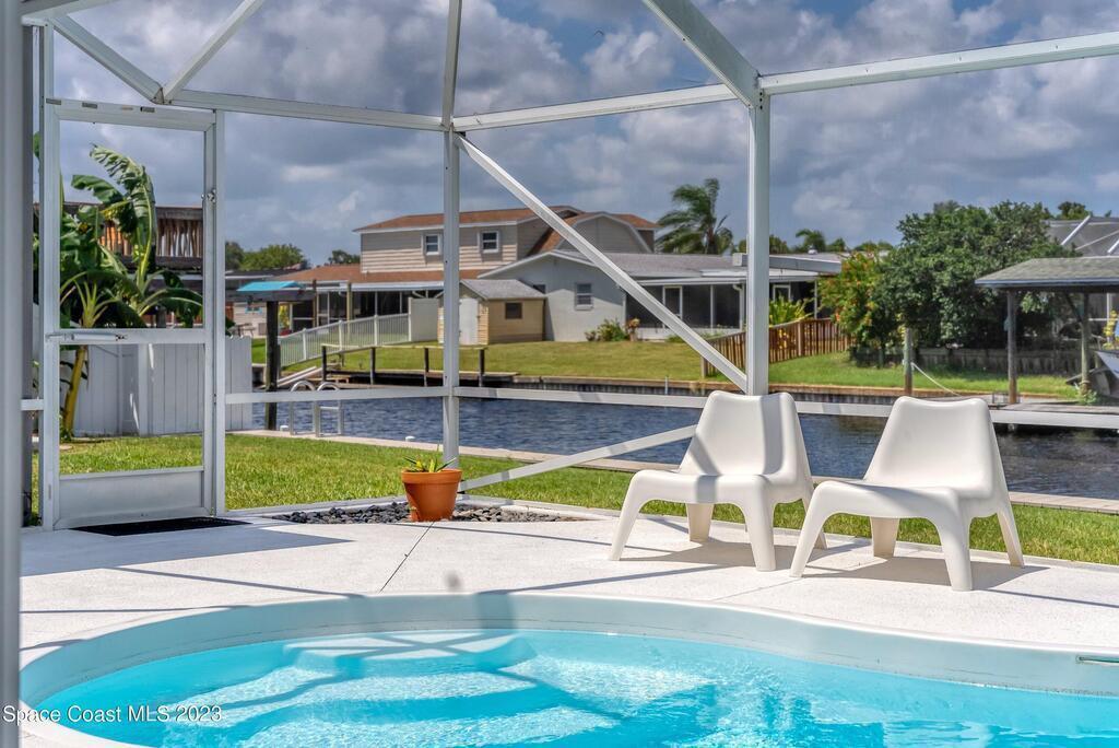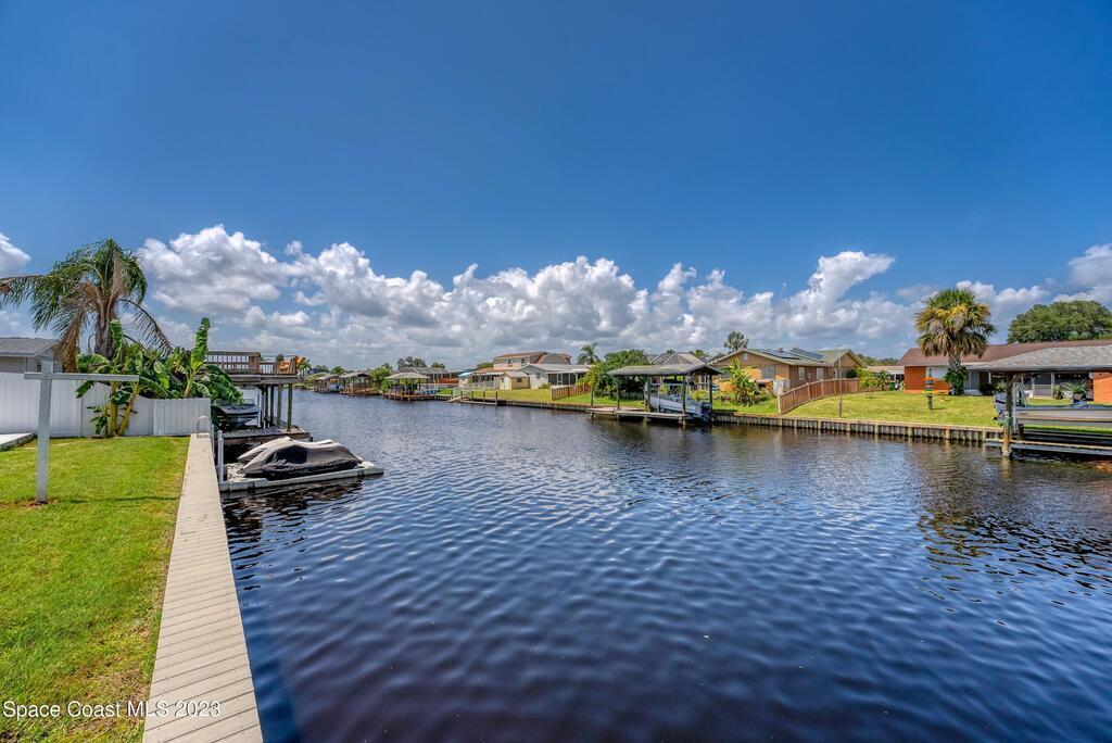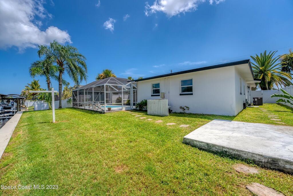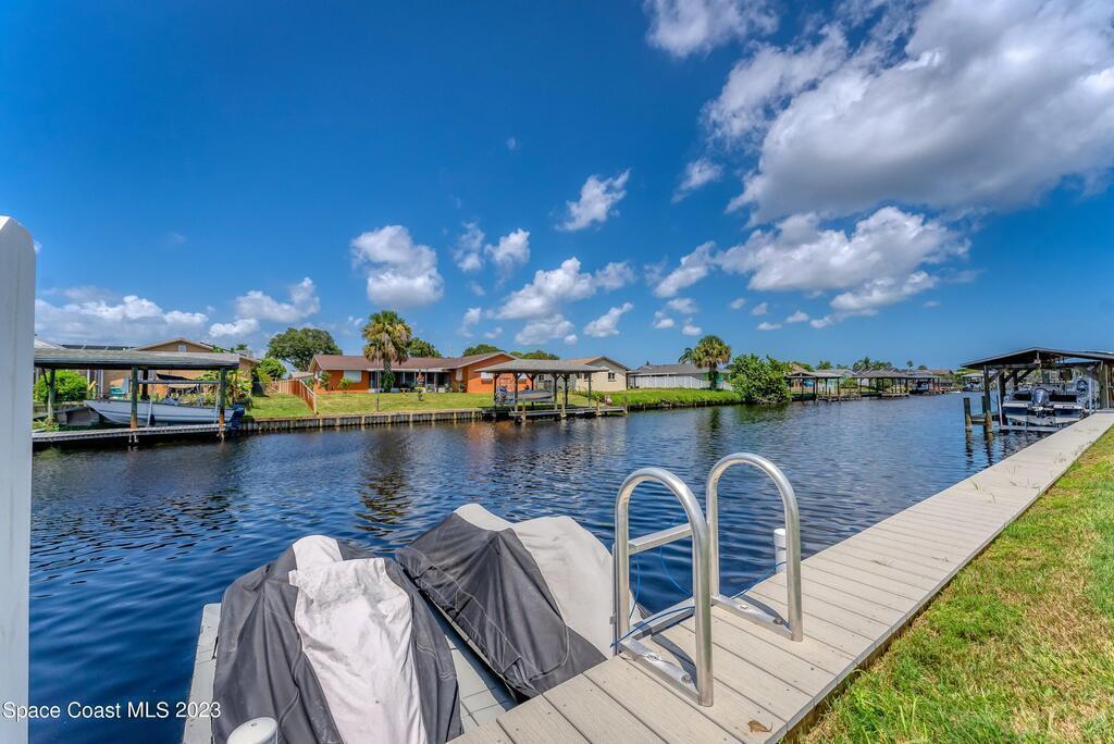 Backups Welcomed!! Turn off your home search and turn your attention to this fully renovated waterfront canal home. A wide open floor plan invites you to discover the countless upgrades throughout the house. Luxury and ergonomic symmetry pervades the visual senses when gazing upon the 24X24 marble flooring, all new soft close cabinets and drawers in the kitchen, bathrooms, and dining room, uniform quartz countertops, and new stainless steel high end digital appliances. With a new extra high vinyl seawall and a straight path out to the Banana River, all boxes are checked for water lovers to relax in the pool or head out to sea! Come view this exquisite diamond in person to appreciate the endless array of thoughtful finishings and attention to detail.