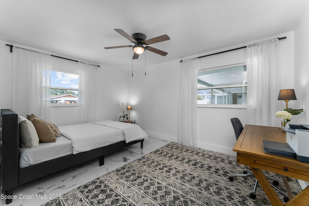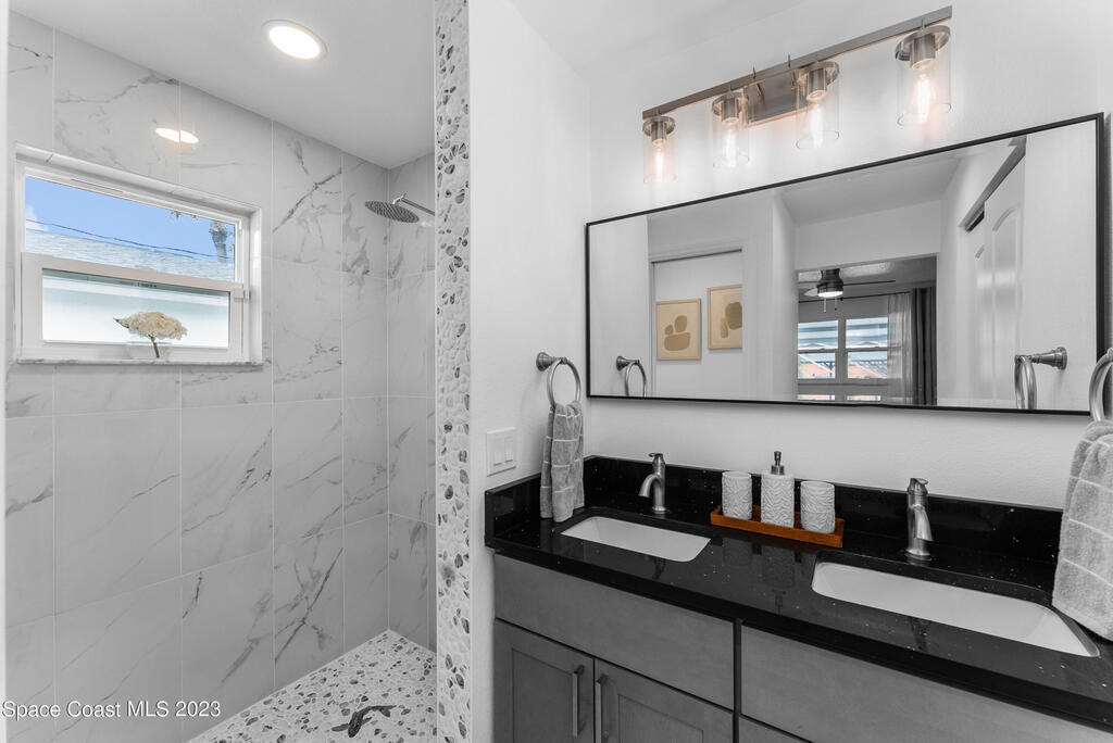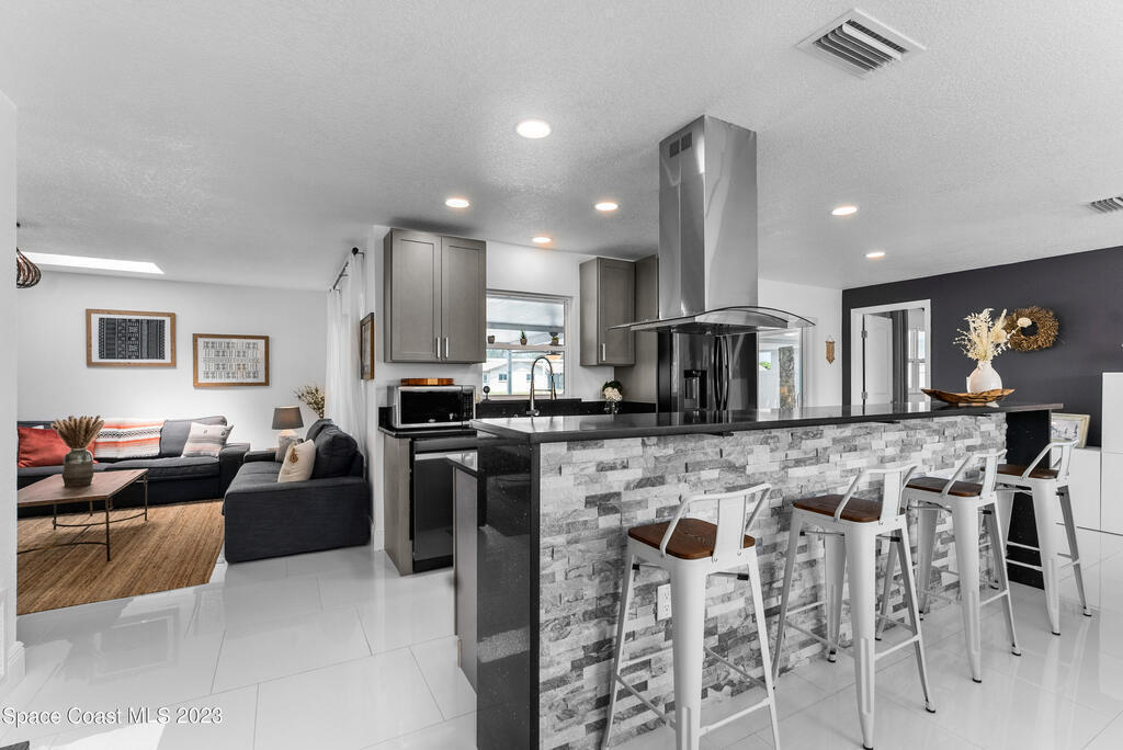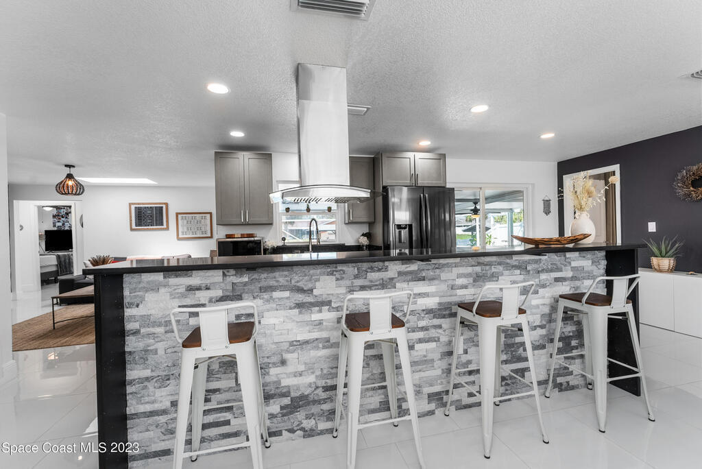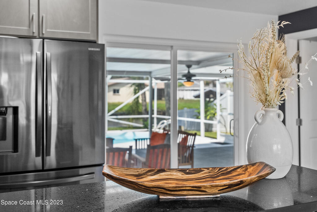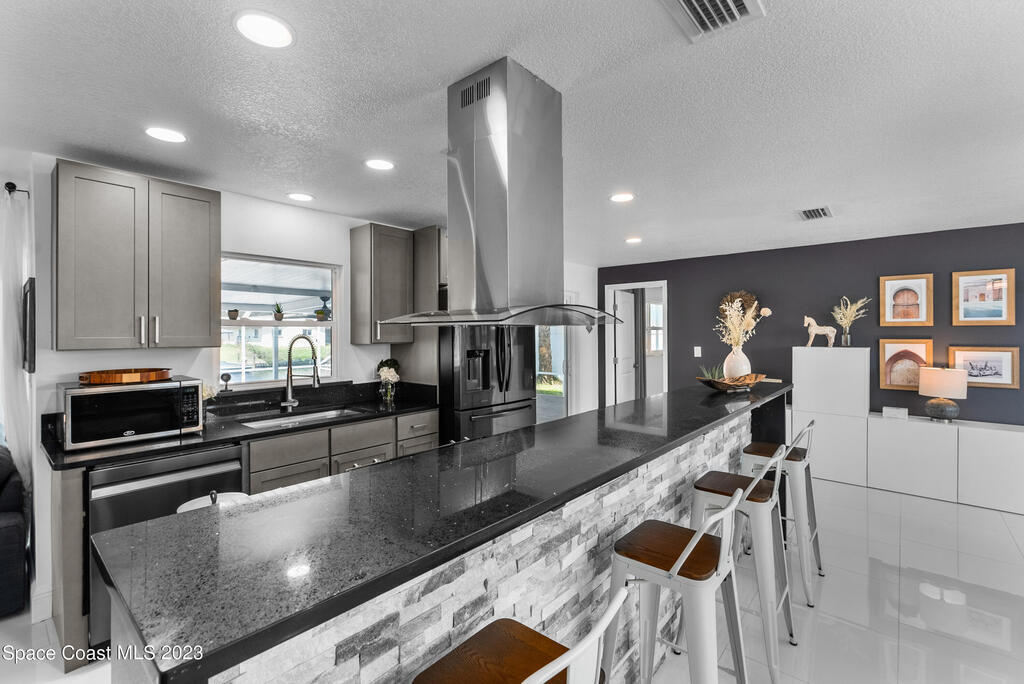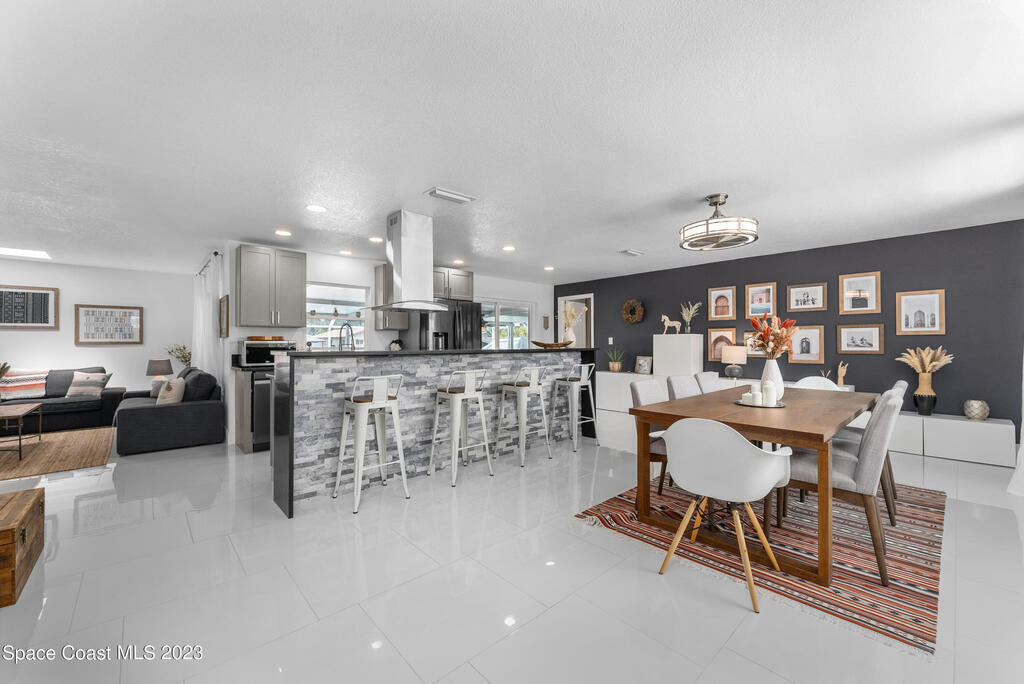 Backups Welcomed!! Turn off your home search and turn your attention to this fully renovated waterfront canal home. A wide open floor plan invites you to discover the countless upgrades throughout the house. Luxury and ergonomic symmetry pervades the visual senses when gazing upon the 24X24 marble flooring, all new soft close cabinets and drawers in the kitchen, bathrooms, and dining room, uniform quartz countertops, and new stainless steel high end digital appliances. With a new extra high vinyl seawall and a straight path out to the Banana River, all boxes are checked for water lovers to relax in the pool or head out to sea! Come view this exquisite diamond in person to appreciate the endless array of thoughtful finishings and attention to detail.