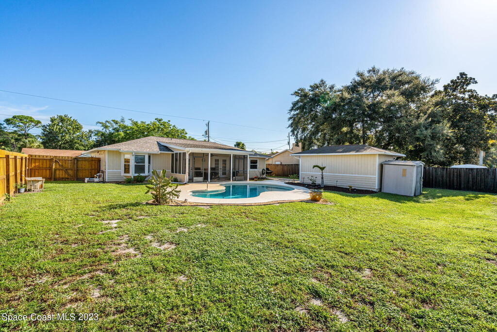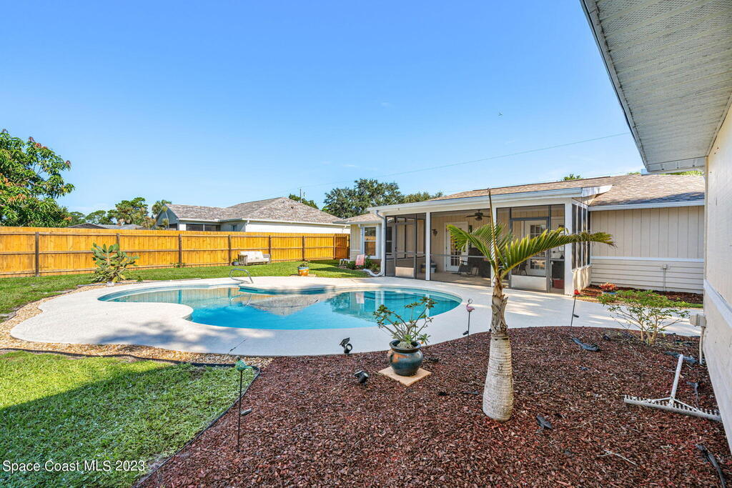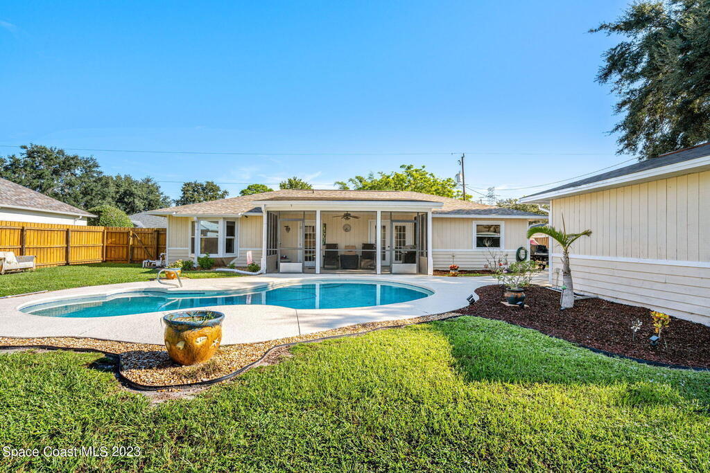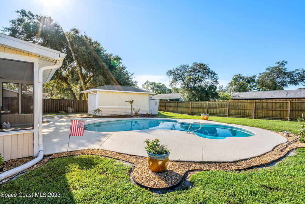 Move In Ready Pool home located in Port St. John. This 3 bed, 2 bath, home offers 1620 sqft of open living space. Tall vaulted ceilings, large eat in kitchen with newer stainless appliances. Roof only 2 years old, HVAC only 4 years old. Large screened in porch looking out to an amazing private back yard and large in ground pool. Perfect for entertaining or family fun. There are 2 large driveways with more than enough room for RV or boat parking. Great location with easy access to schools, shopping, and entertainment. Just a short drive to the space center, Orlando, and the beaches. This home is not to be missed. Call Today!