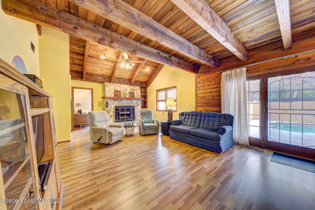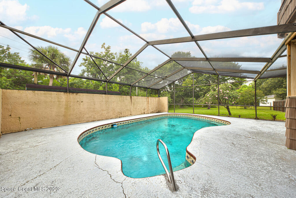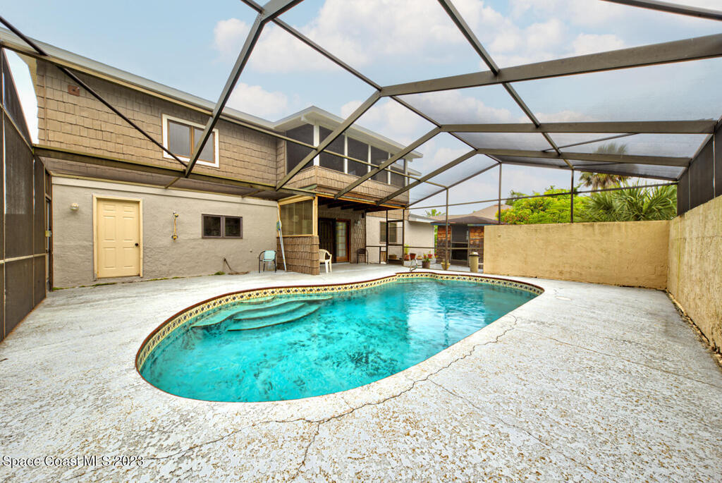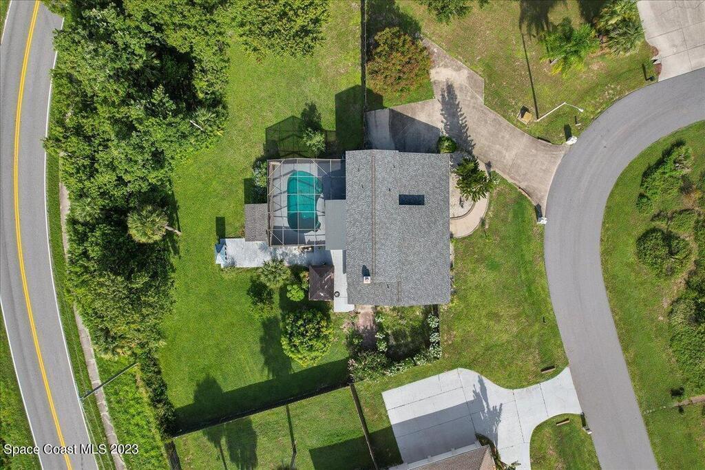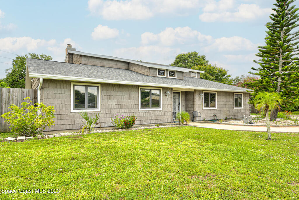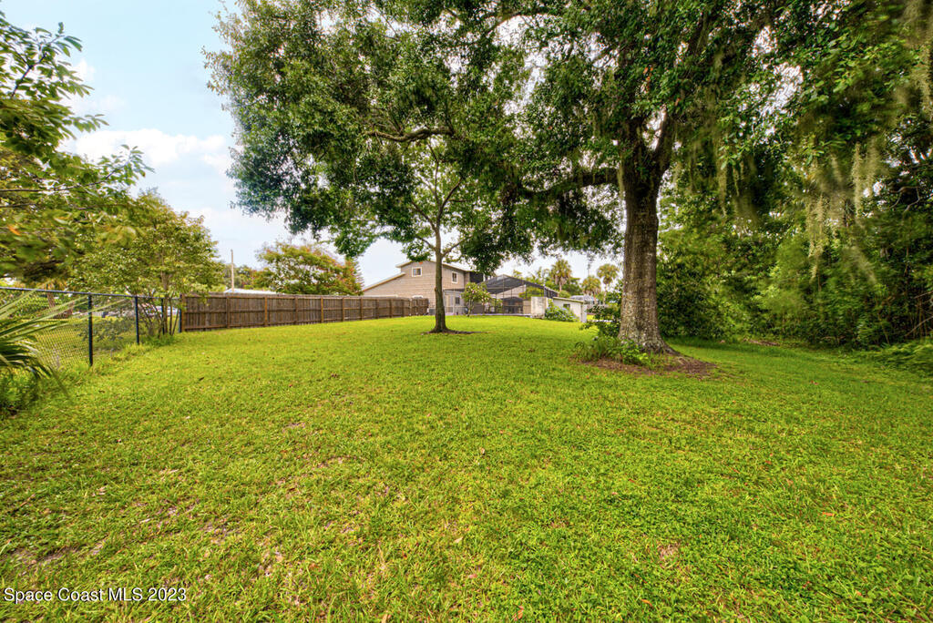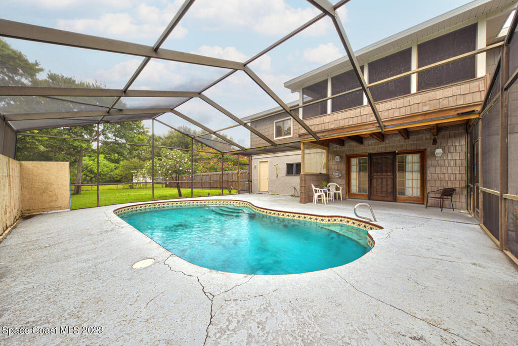Welcome Home! Centrally located in Merritt Island with oversized .75 acre lot and NO HOA. Arriving you'll notice the new roof and spacious driveway. Inside you're greeted with vaulted ceilings and tons of natural lighting. At the heart of the home is the family room with wood accent walls and wood accent walls. The kitchen features oversized island, built-in appliances, tons of storage and backyard views. A slider leads to a covered patio and screened pool. Hard to find in central Merritt Island is the huge fenced backyard. Downstairs you'll also find guest bedrooms, Additional OFFICE, and guest bathroom. A private suite is found upstairs with balcony, double vanity, soaking tub, and two walk-in closets.