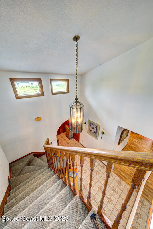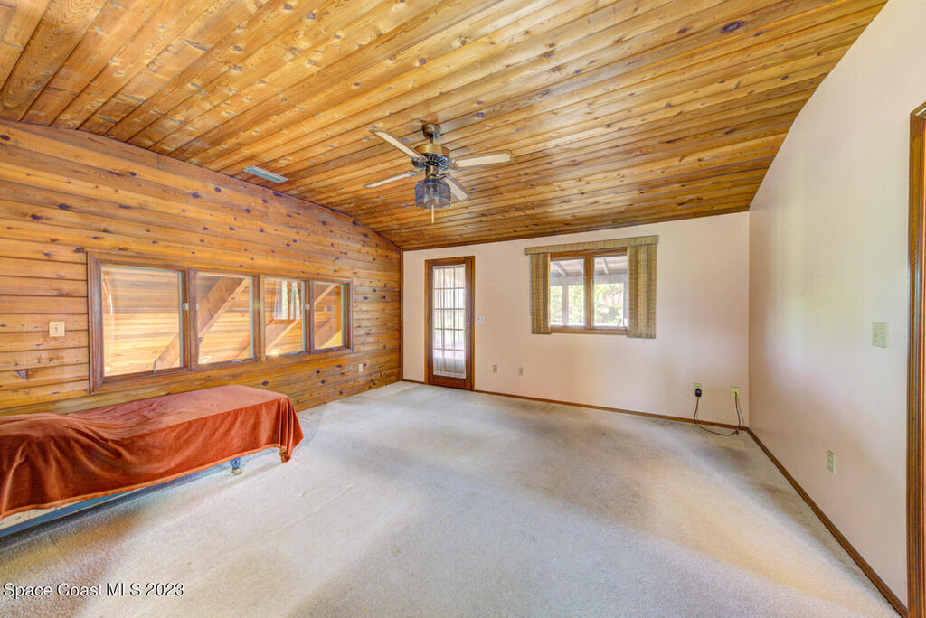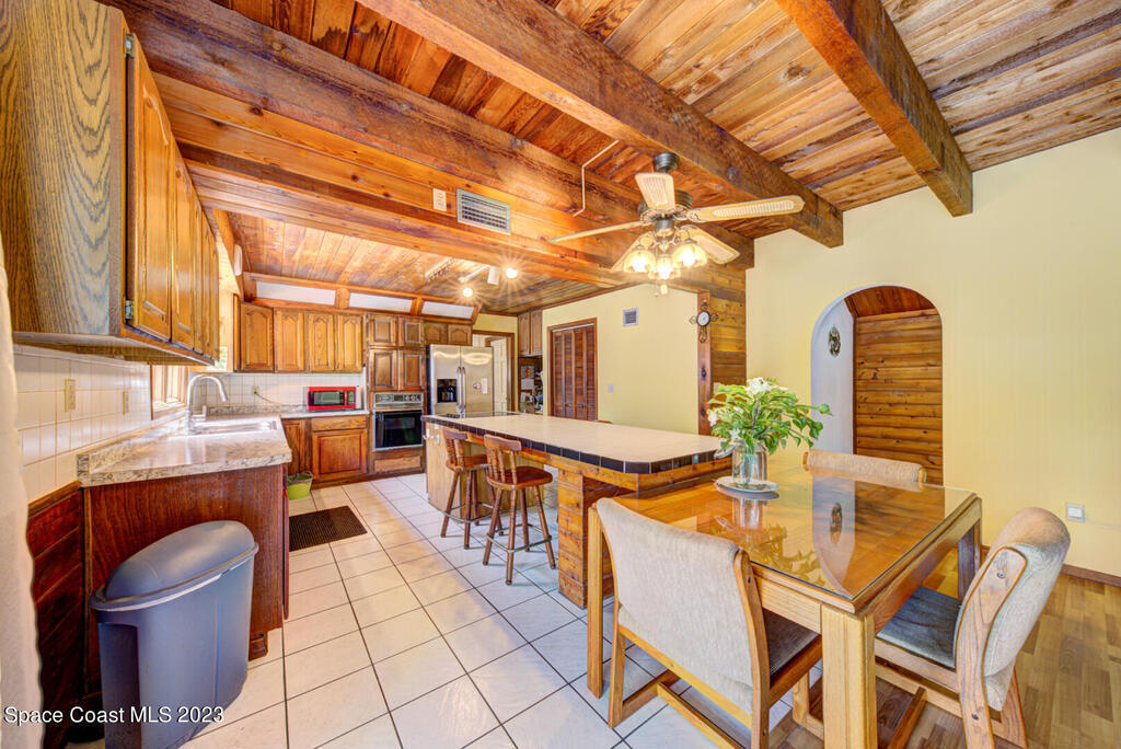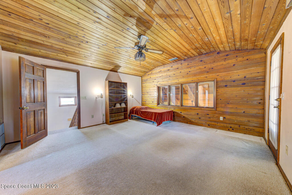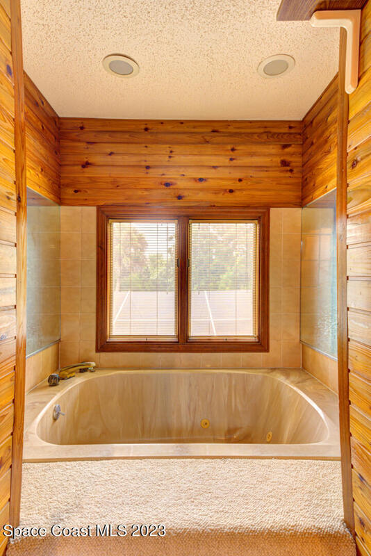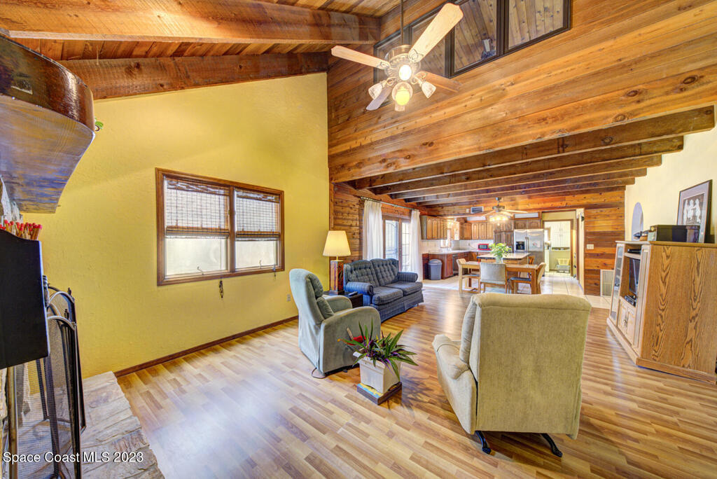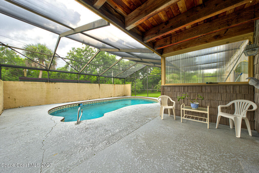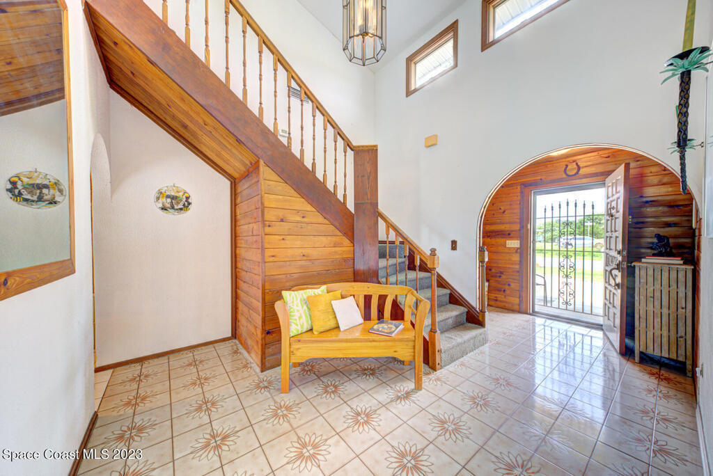 Welcome Home! Centrally located in Merritt Island with oversized .75 acre lot and NO HOA. Arriving you'll notice the new roof and spacious driveway. Inside you're greeted with vaulted ceilings and tons of natural lighting. At the heart of the home is the family room with wood accent walls and wood accent walls. The kitchen features oversized island, built-in appliances, tons of storage and backyard views. A slider leads to a covered patio and screened pool. Hard to find in central Merritt Island is the huge fenced backyard. Downstairs you'll also find guest bedrooms, Additional OFFICE, and guest bathroom. A private suite is found upstairs with balcony, double vanity, soaking tub, and two walk-in closets.