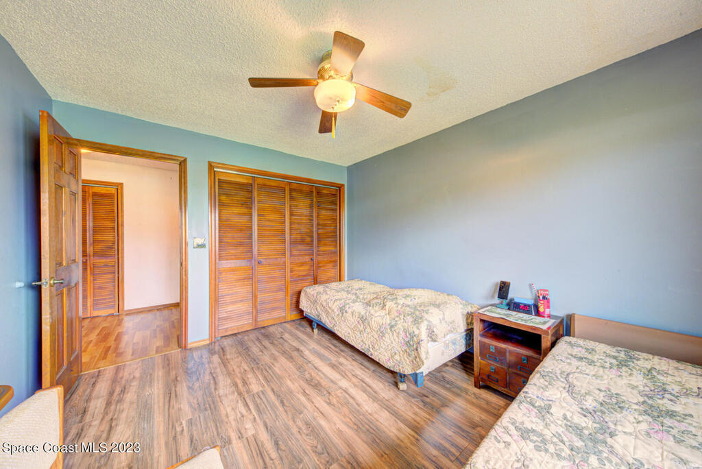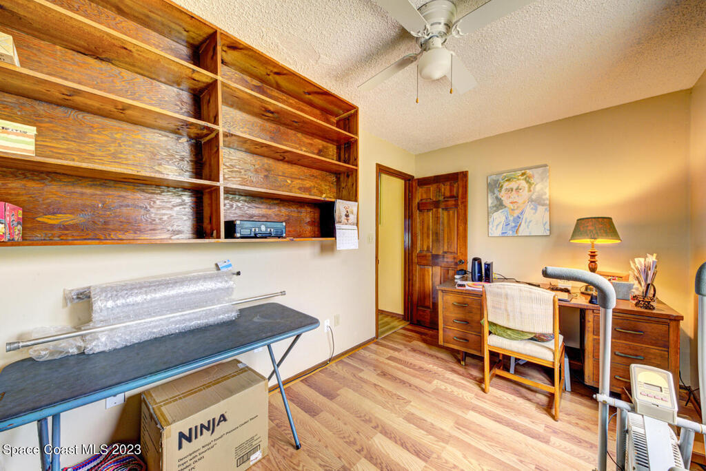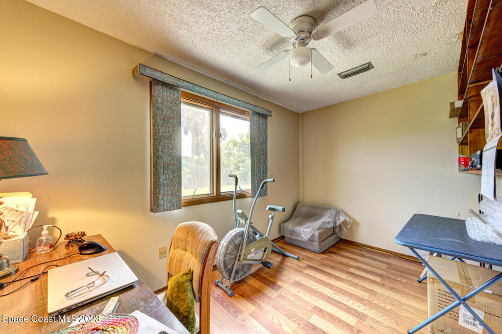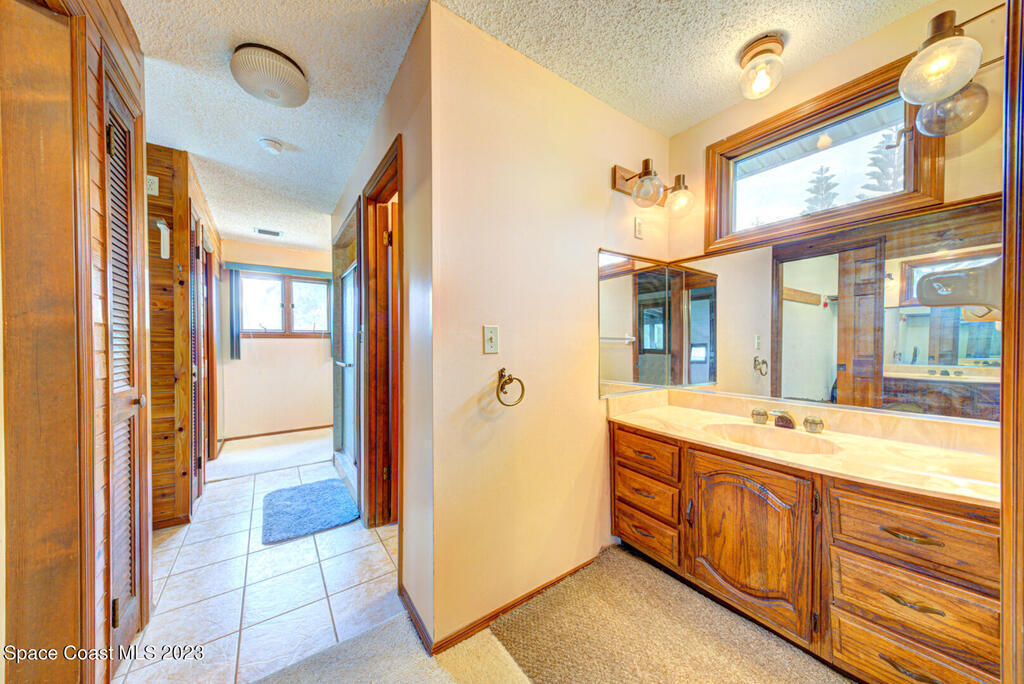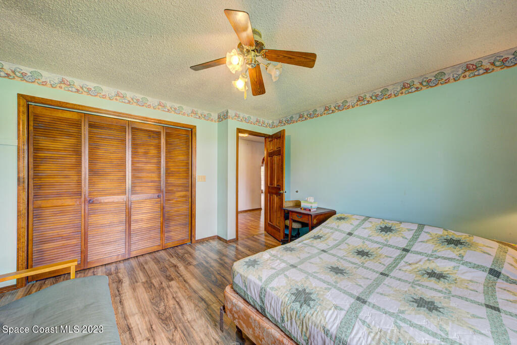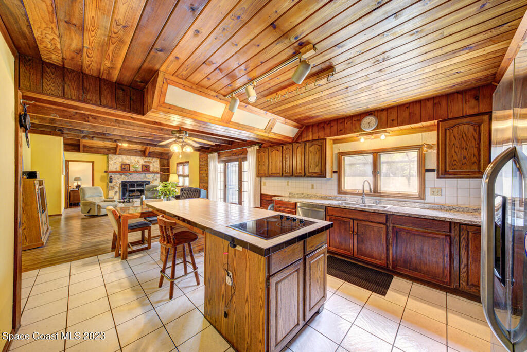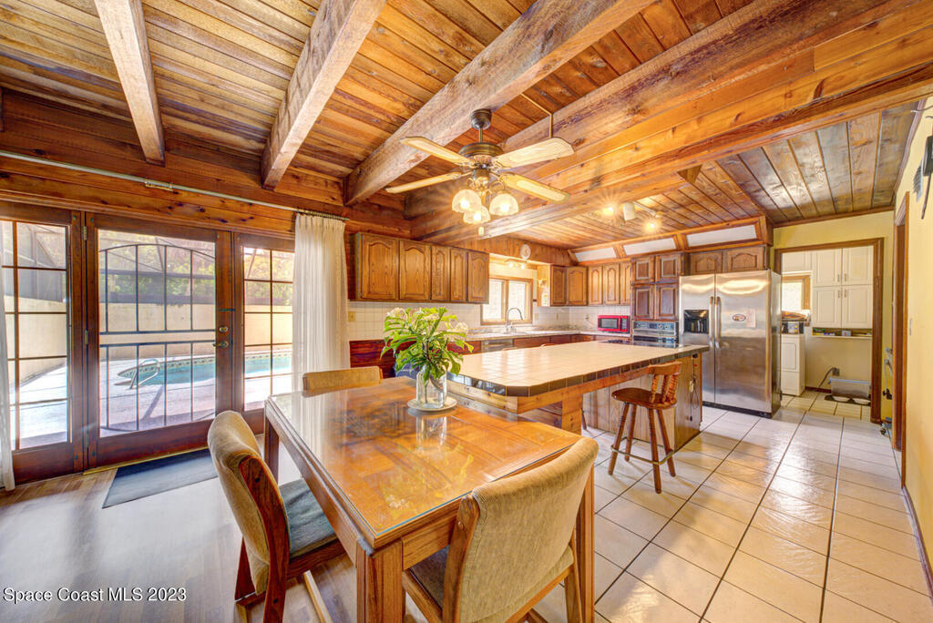 Welcome Home! Centrally located in Merritt Island with oversized .75 acre lot and NO HOA. Arriving you'll notice the new roof and spacious driveway. Inside you're greeted with vaulted ceilings and tons of natural lighting. At the heart of the home is the family room with wood accent walls and wood accent walls. The kitchen features oversized island, built-in appliances, tons of storage and backyard views. A slider leads to a covered patio and screened pool. Hard to find in central Merritt Island is the huge fenced backyard. Downstairs you'll also find guest bedrooms, Additional OFFICE, and guest bathroom. A private suite is found upstairs with balcony, double vanity, soaking tub, and two walk-in closets.