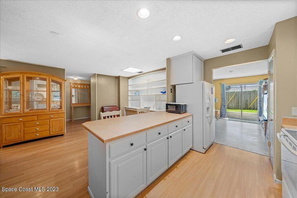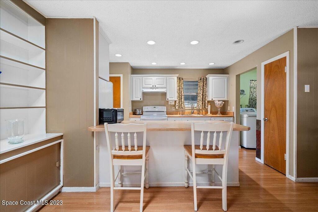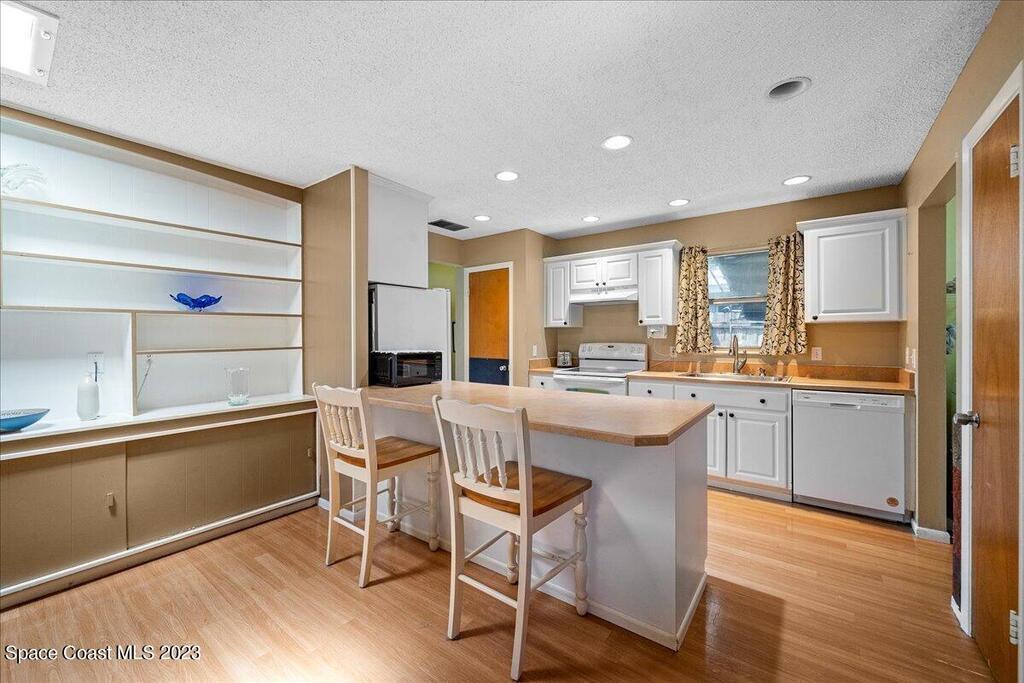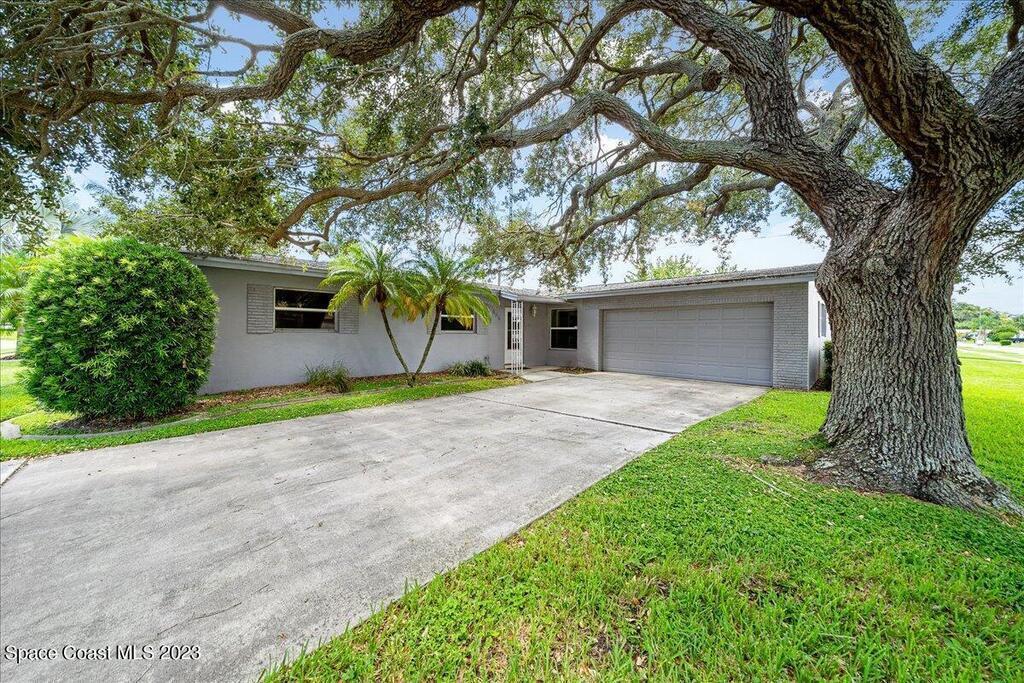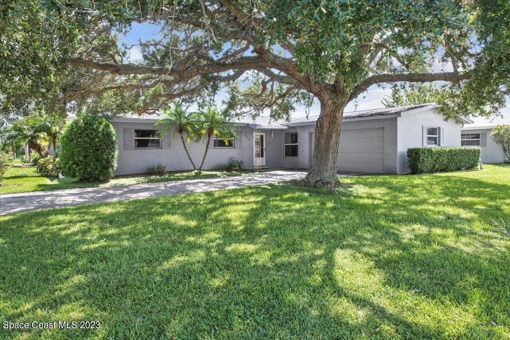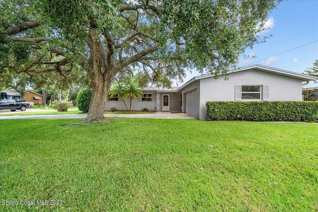 Welcome Home! Central located in Merritt Island with close close proximity to restaurants, shopping, boat ramps, neighborhood park. Here you'll find an oversized front yard, tons of driveway parking, and 2 CAR GARAGE. Inside you're greeted with large living room w/ bay window, beautiful terrazzo floors, and slider overlooking fenced backyard. The kitchen offers tons of storage, breakfast bar, dining space with built-in shelves. A spacious master suite offers multiple windows, two closets and bathroom with updated walk-in shower. Two guest rooms share 2nd full bathroom. Other features include updated electrical and indoor laundry room w/storage.