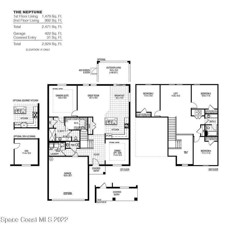 The Neptune is a beautiful two story floor plan with the Owner suite on the first floor and all secondary bedrooms on the second floor with a jack and jill bathroom and a large loft for entertaining. This home comes with a covered lanai perfect for family and friends. Includes Vinyl,carpet flooring, 2nd sink owners suite, laundry tub, Irrigation System Den ILO of dining room 11-4x12-3