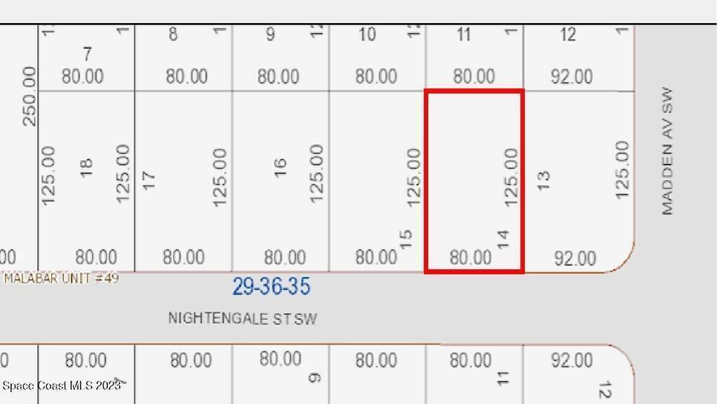 0.23 acre of vacant land to build your dream home or keep as an investment! This part of town will grow and develop. Located close to the sought after Bayside Lakes neighborhood, it has so much to offer! Situated on a paved road, electricity and well water close to site. Supermarkets and schools nearby and about 30 minutes to the beach or the Melbourne Airport.Drive by welcomed.