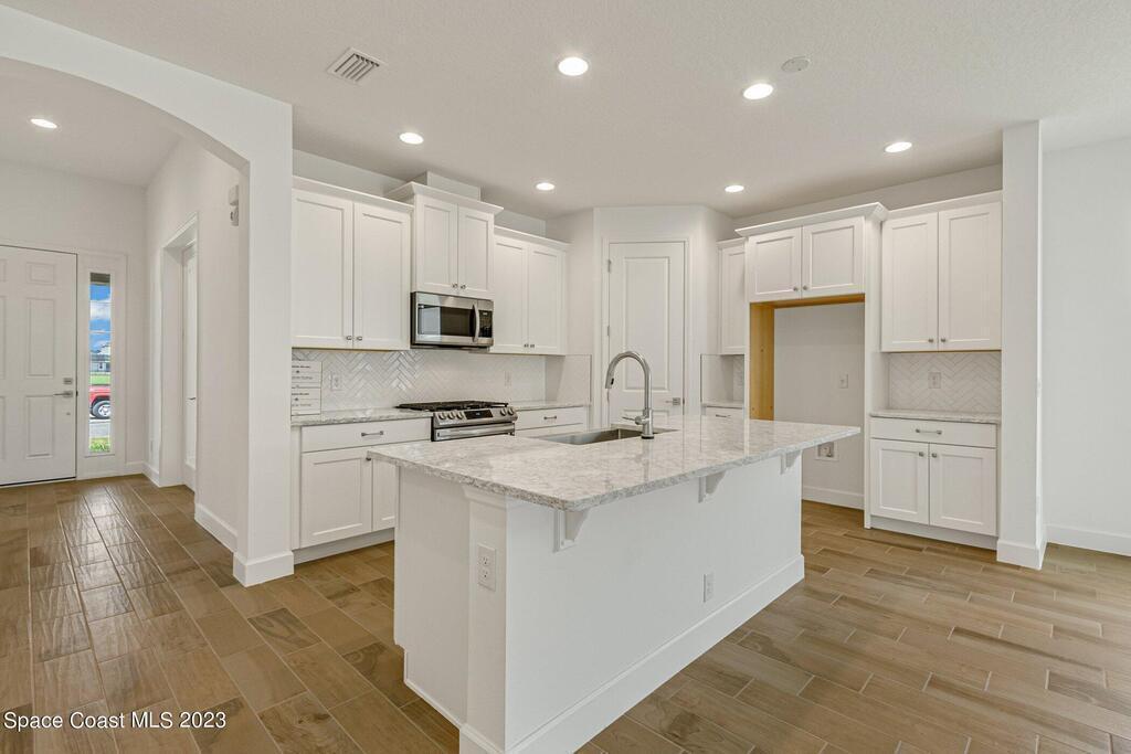 Brand-new Viera Builders Sycamore home has a bright and spacious kitchen/family room that is ideal for entertaining family and friends. This home features a study, a Jack & Jill bathroom, an optional 5th bedroom and an extended lanai, perfect for outdoor entertainment. Oversized 2-car garage. White cabinets and quartz countertops in the kitchen. Front yard faces a green belt.