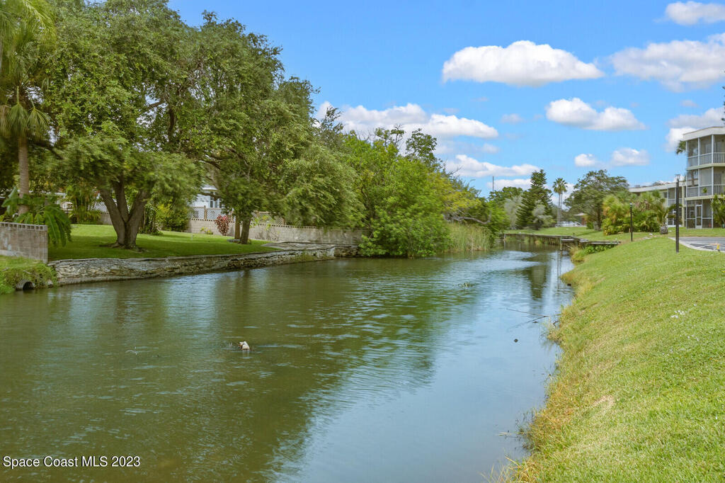 Live the Florida waterfront lifestyle! Charming waterfront condo on a canal leading to the Eau Gallie River. Just a short walk and you are in the heart of the enchanting Eau Gallie Arts District (EGAD), offering coffee shops, bars, restaurants and shopping. Five minutes to the Atlantic ocean, ten minutes to the International Airport. 1 bed 1.5 bath 3rd floor (top floor), corner unit with elevator access has beautiful water views from your private balcony. This serene property includes storage space for your kayaks, paddle boards, launching area and a small dock. This waterfront property has a pool, clubhouse, shuffleboard and extends all the way to the Eau Gallie River. This unit is turnkey and was recently revitalized with fresh paint, carpet and all appliances and AC are like new.