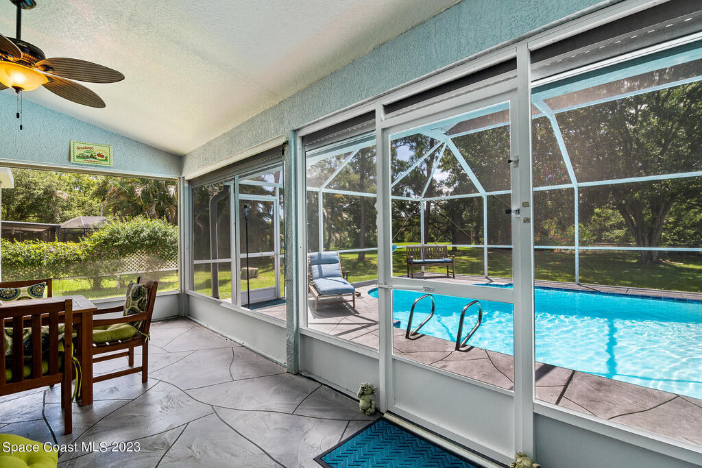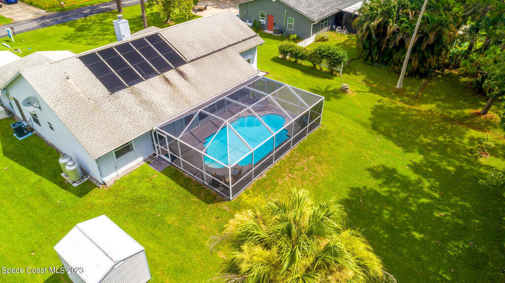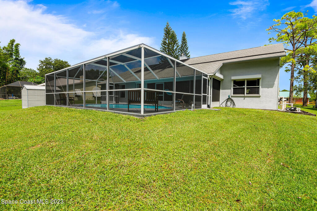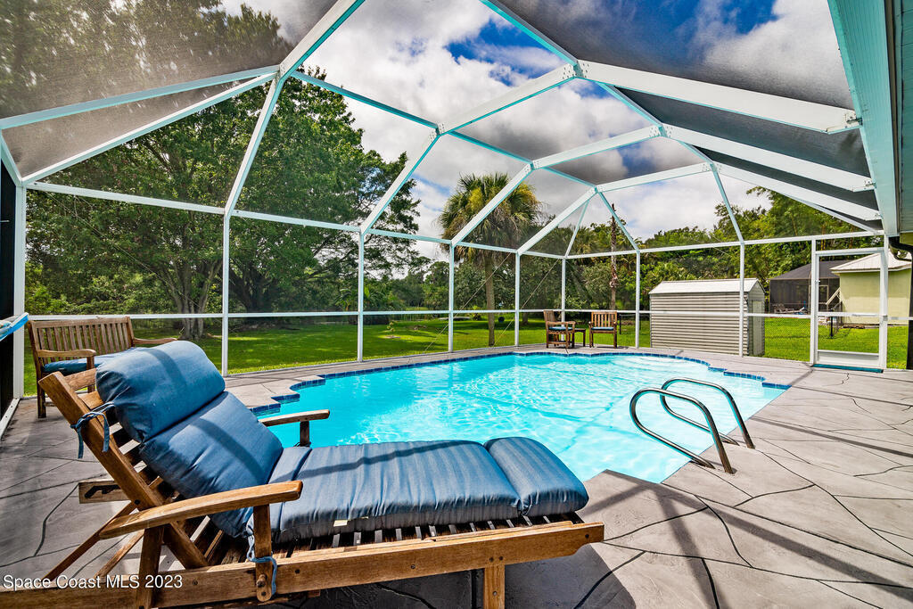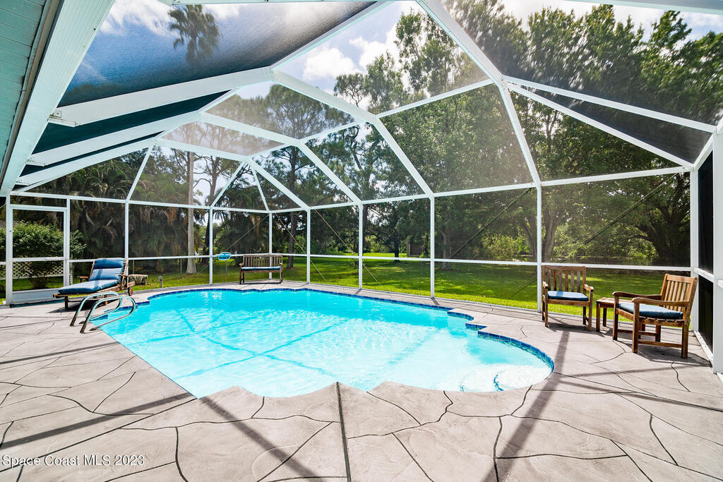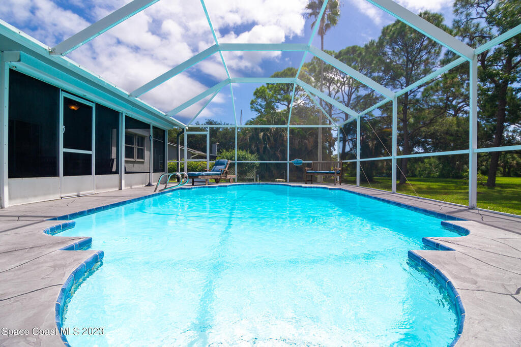 First Pine Island Lakes home for sale since 2020! BRAND NEW ROOF at closing (Permit issued!) One of the closest homes to KSC on the market! PRIVACY on your .68 ACRE lot but still the feel of a friendly neighborhood AND only 10 minutes to stores/BEACHES and the beach line to Orlando. Enjoy an OPEN floor plan, kitchen w/breakfast nook/pantry and vaulted ceilings! Primary bathroom has dual sinks, garden tub and walk in shower. Outside features screened lanai for relaxing and CUSTOM enclosed POOL (resurfaced 2019) w/NEW Pool pump and finished deck. Walk down to the spring fed LAKE stocked with fish! Or launch your kayak from the Conservation area minutes away. A/C 2018, Water heater 2016 FULL HOME GENERAC 2020, SECURITY ROLL DOWN SHUTTERS THROUGHOUT! Security syte
