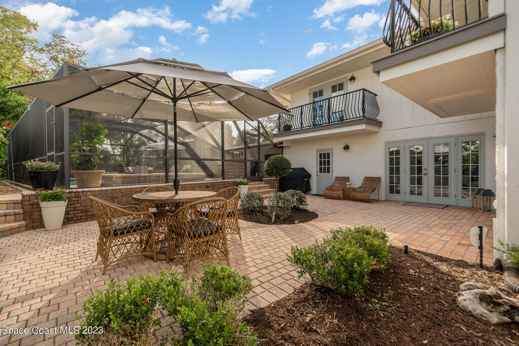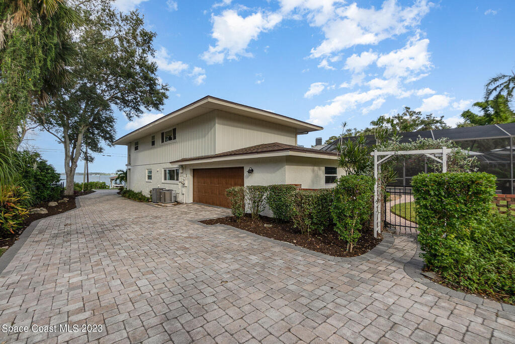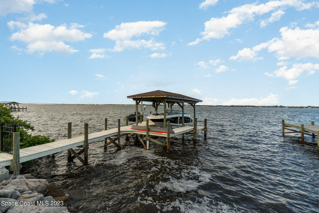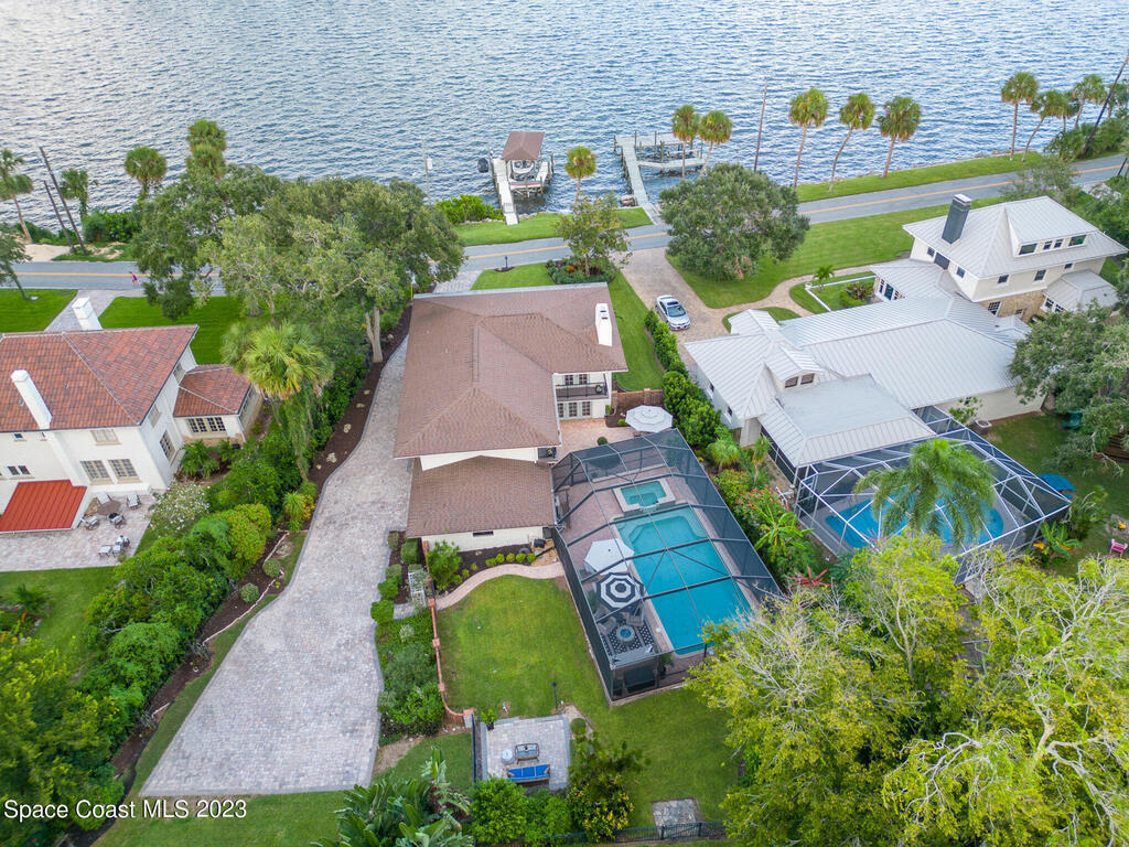 Luxury Florida living at its best! This 2 story, 4 bedroom, 2 1/2 bath updated home has expansive new hurricane windows that provide picture perfect views of the Indian River with tons of natural light! Large gourmet kitchen with stainless appliances, expansive dining area , Family room with fireplace that overlooks the most amazing outdoor oasis for entertaining! Pavered patio that leads to the oversized screened pool, and huge manicured and fenced yard with shed for storage. All bedrooms upstairs with a master suite that is a perfect sanctuary with its fireplace and cozy sitting area that has breathtaking views of the river and opens to a balcony for that morning coffee and peaceful nights! Private dock and boathouse with boat lift and new smaller lift for jet skiDont miss this one