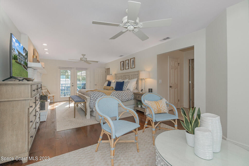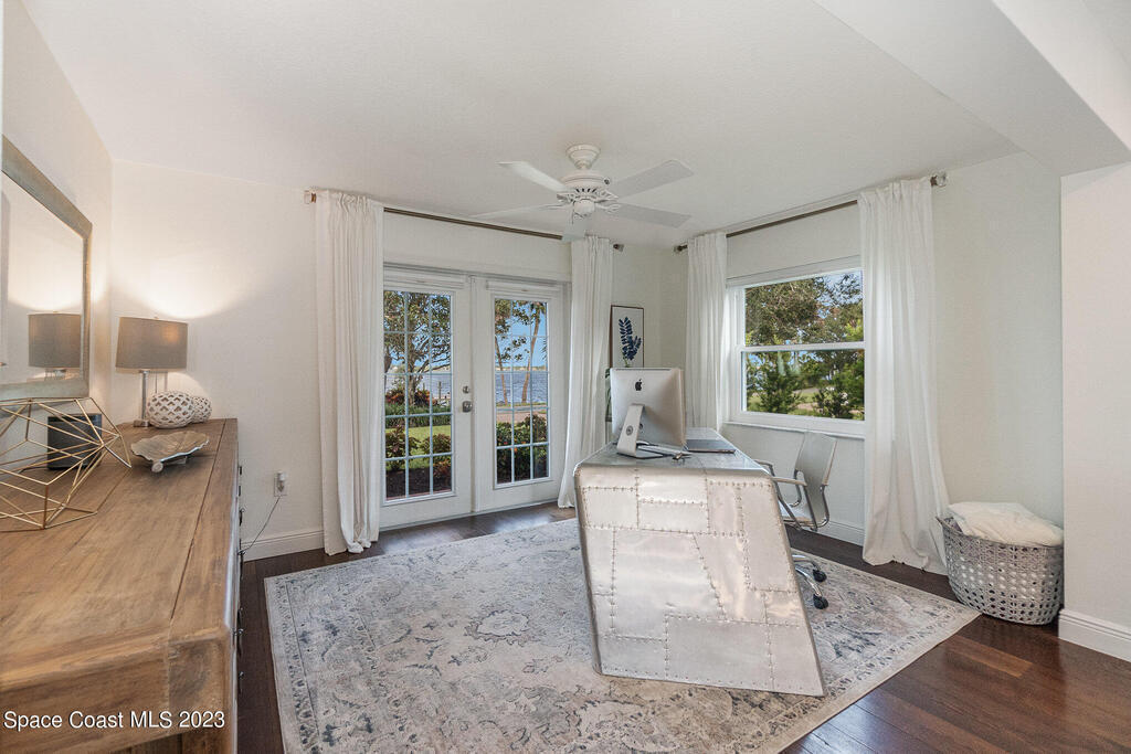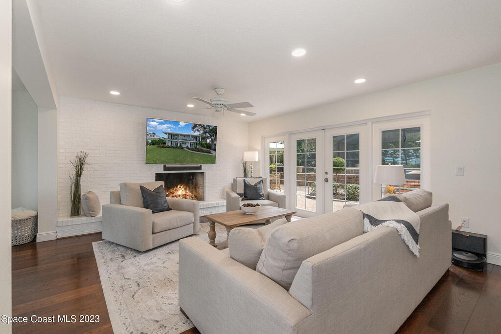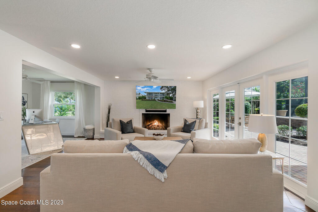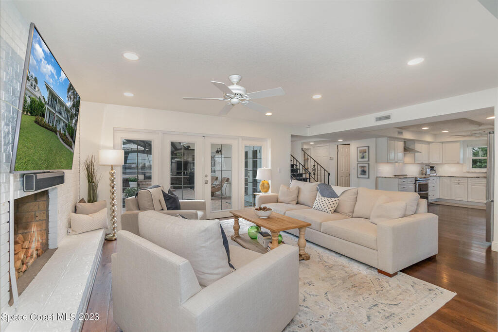 Luxury Florida living at its best! This 2 story, 4 bedroom, 2 1/2 bath updated home has expansive new hurricane windows that provide picture perfect views of the Indian River with tons of natural light! Large gourmet kitchen with stainless appliances, expansive dining area , Family room with fireplace that overlooks the most amazing outdoor oasis for entertaining! Pavered patio that leads to the oversized screened pool, and huge manicured and fenced yard with shed for storage. All bedrooms upstairs with a master suite that is a perfect sanctuary with its fireplace and cozy sitting area that has breathtaking views of the river and opens to a balcony for that morning coffee and peaceful nights! Private dock and boathouse with boat lift and new smaller lift for jet skiDont miss this one