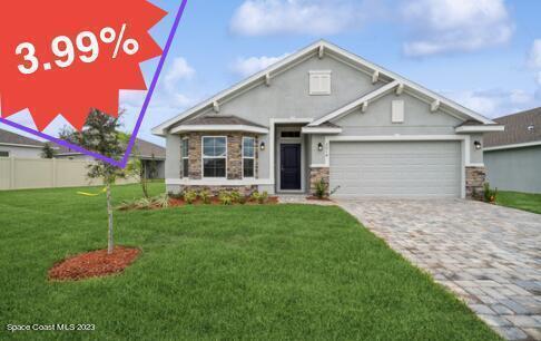 YEAR 1: 3.99% YEAR 2: 4.99% YEARS 3-30 5.99% FIXED RATE!! $1,000 DEPOSIT AND All Closing Costs Paid (excluding escrow accounts) w/ approved lender!!!! MOVE-IN READY!!Estimated Mortagage FHA Monthly Principal, Interest, Taxes and Insurance payment are $2,311. Low HOA fees including a pool, cabana, and gated entry. NO CDD. This adorable 3/2 home features an open floorplan w/ 10' ceilings to a beautiful, vaulted ceiling. Tile through family room and wet areas!! Kitchen features ALL WOOD soft close cabinets w/ crown molding, brushed nickel fixtures, SS appliances, oversized island. The Owner's suite includes a large walk-in closet, and a large 5 foot shower! The bay window in front bedroom offers lots of light, perfect for a home office. Paver driveways and stone accents as well !!! This home also includes a covered lanai and full builder warranties!