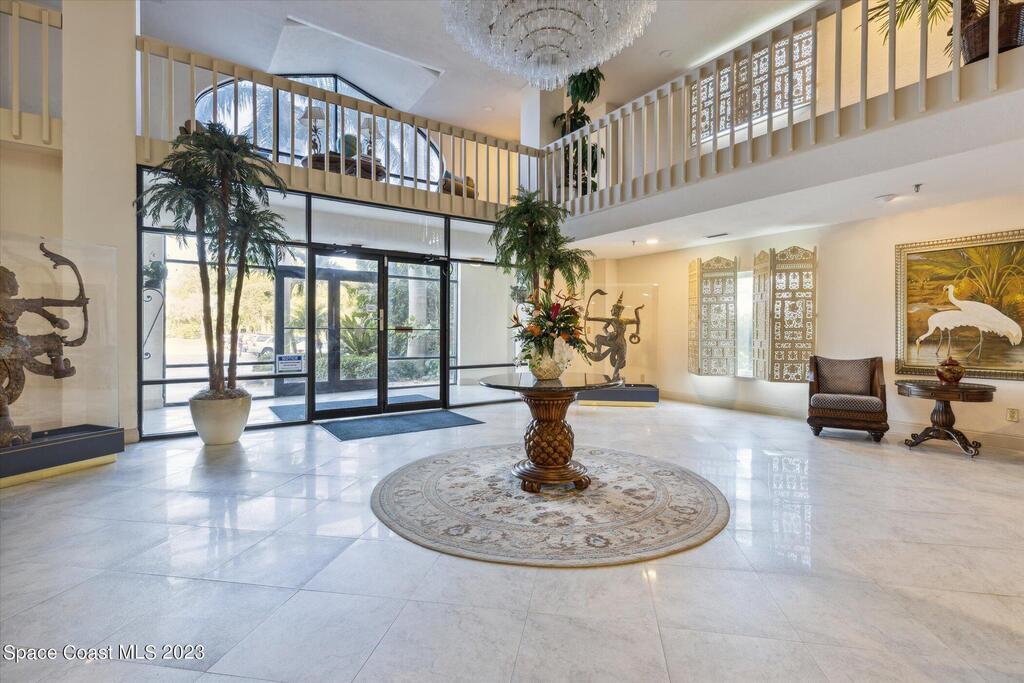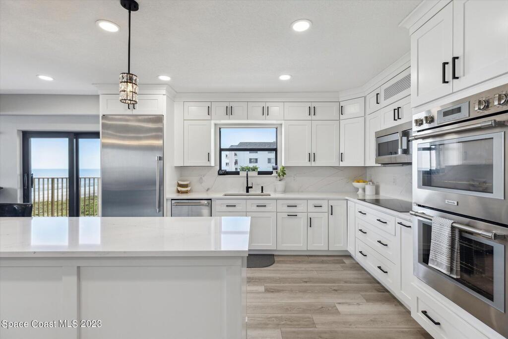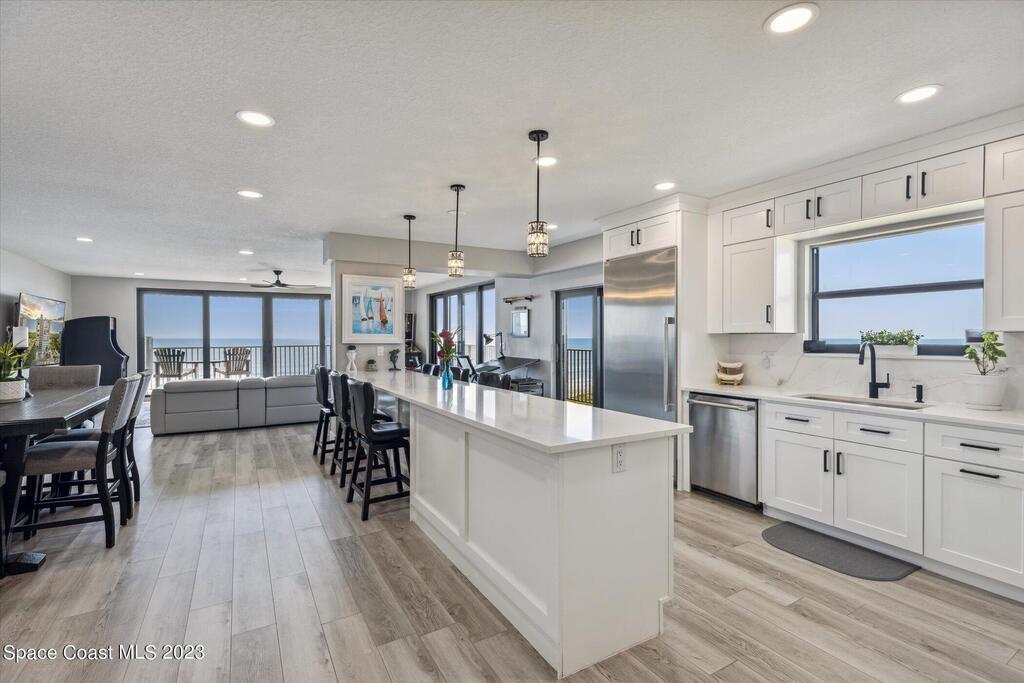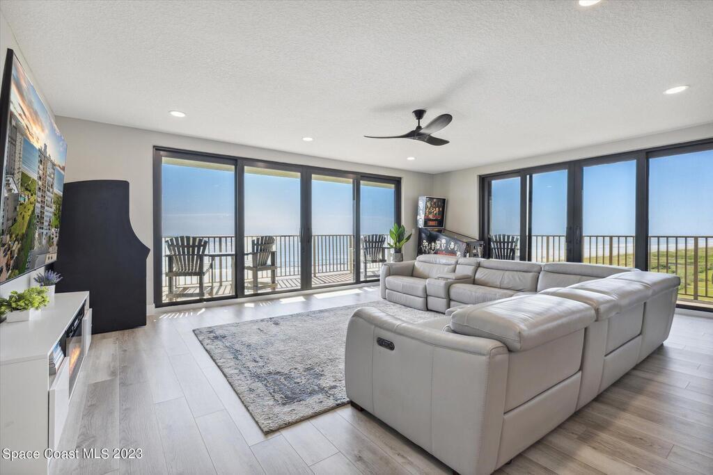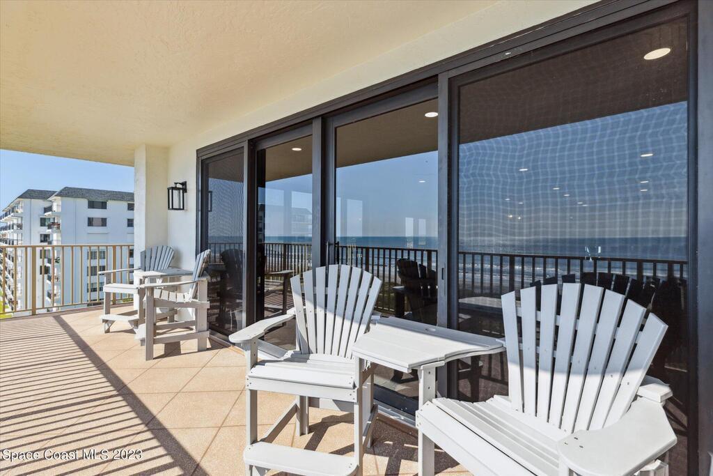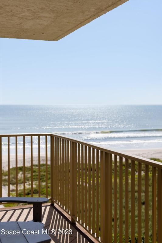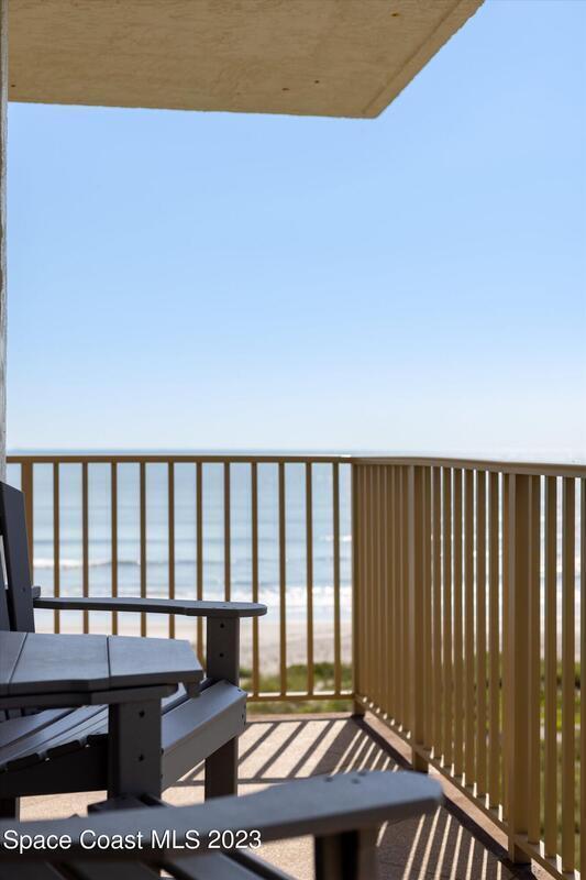 This tastefully updated unit offers breathtaking ocean views and an open floor plan, allowing for a seamless flow between living, dining, and kitchen areas. Natural light floods in through hurricane rated, turtle glass, enhancing the airy atmosphere. The kitchen features top-of-the-line Thermador appliances, ample counter space, and a convenient wet bar- perfect for entertaining. Storage is plentiful with a 6th floor storage area, pool/beach storage, and 2 garages. Step onto the balcony for incredible ocean views and front row seats to rocket launches. Xanadu amenities include a pool, hot tub, sauna, private beach access and so much more. Don't miss the chance to experience the luxury and beauty of this gem.