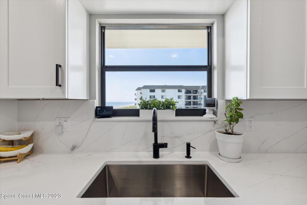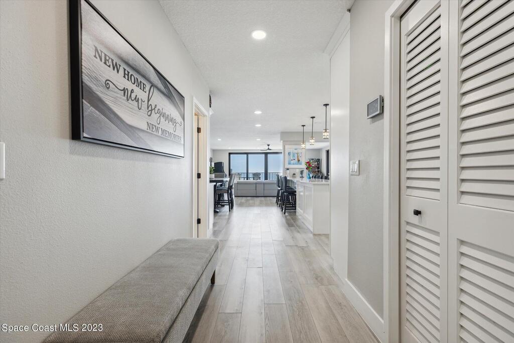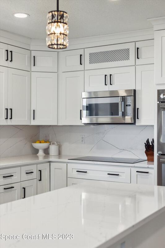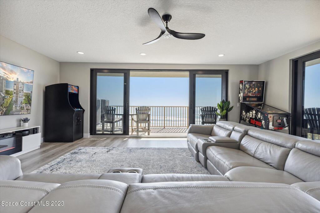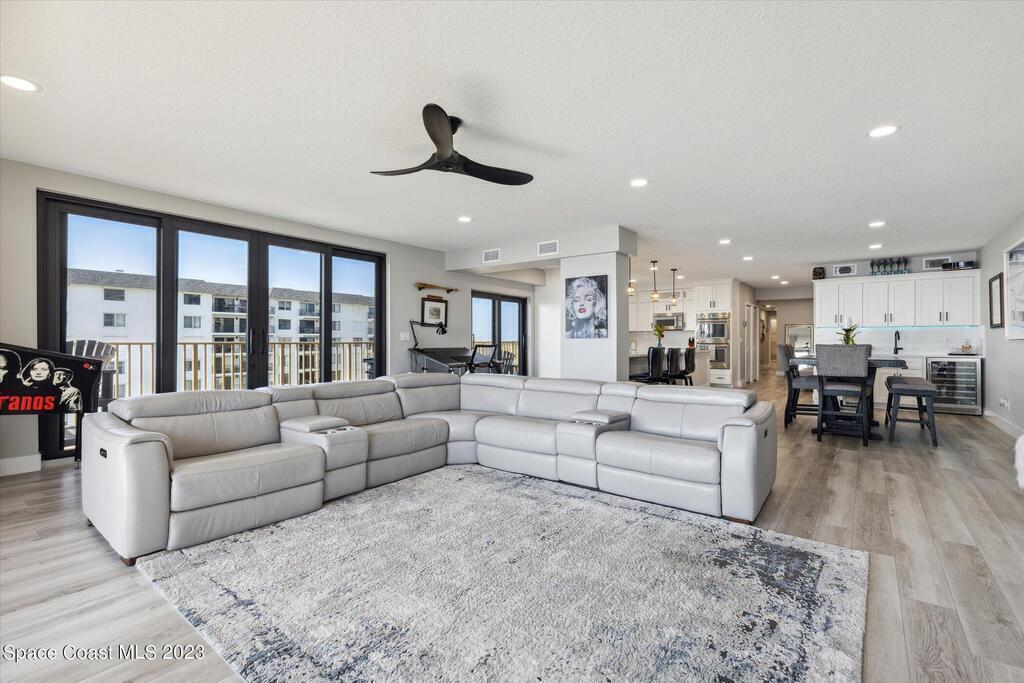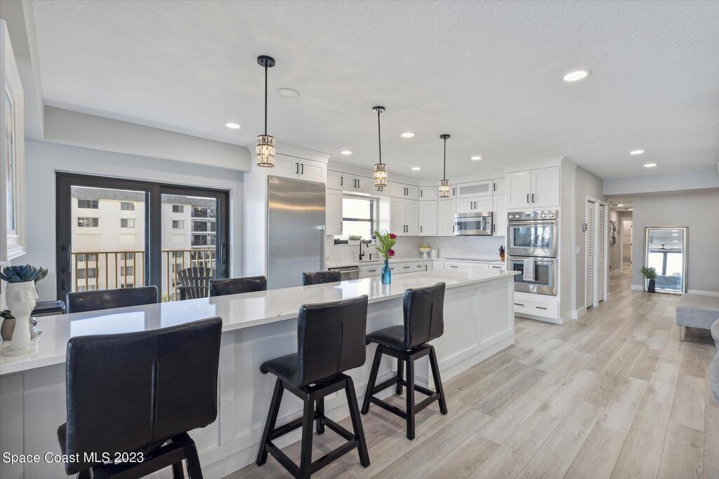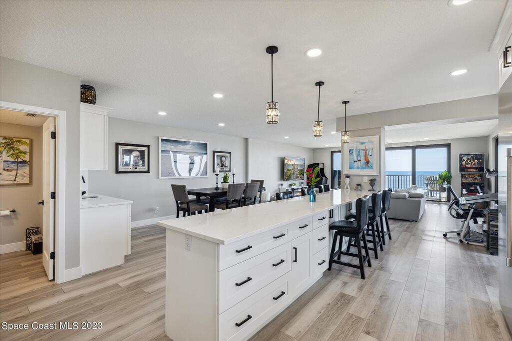 This tastefully updated unit offers breathtaking ocean views and an open floor plan, allowing for a seamless flow between living, dining, and kitchen areas. Natural light floods in through hurricane rated, turtle glass, enhancing the airy atmosphere. The kitchen features top-of-the-line Thermador appliances, ample counter space, and a convenient wet bar- perfect for entertaining. Storage is plentiful with a 6th floor storage area, pool/beach storage, and 2 garages. Step onto the balcony for incredible ocean views and front row seats to rocket launches. Xanadu amenities include a pool, hot tub, sauna, private beach access and so much more. Don't miss the chance to experience the luxury and beauty of this gem.