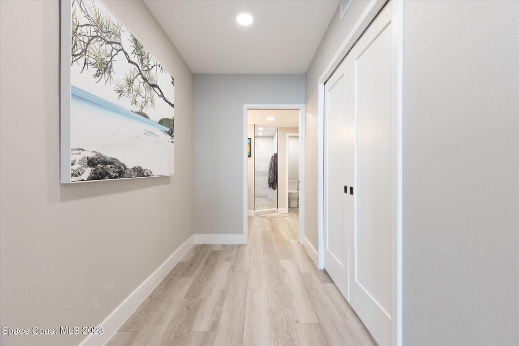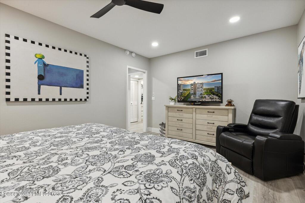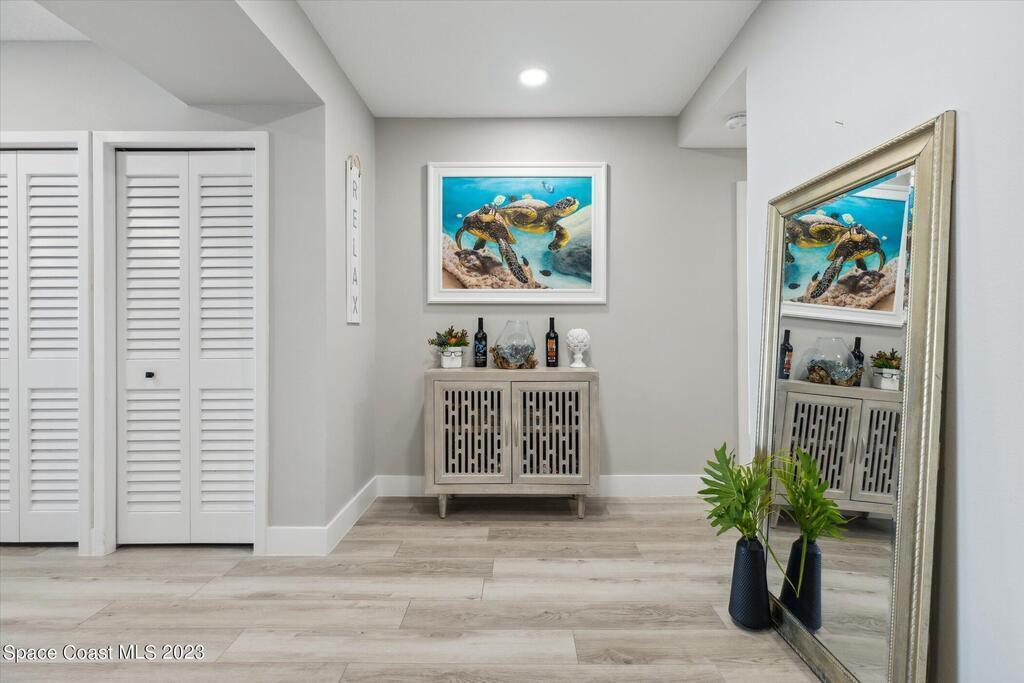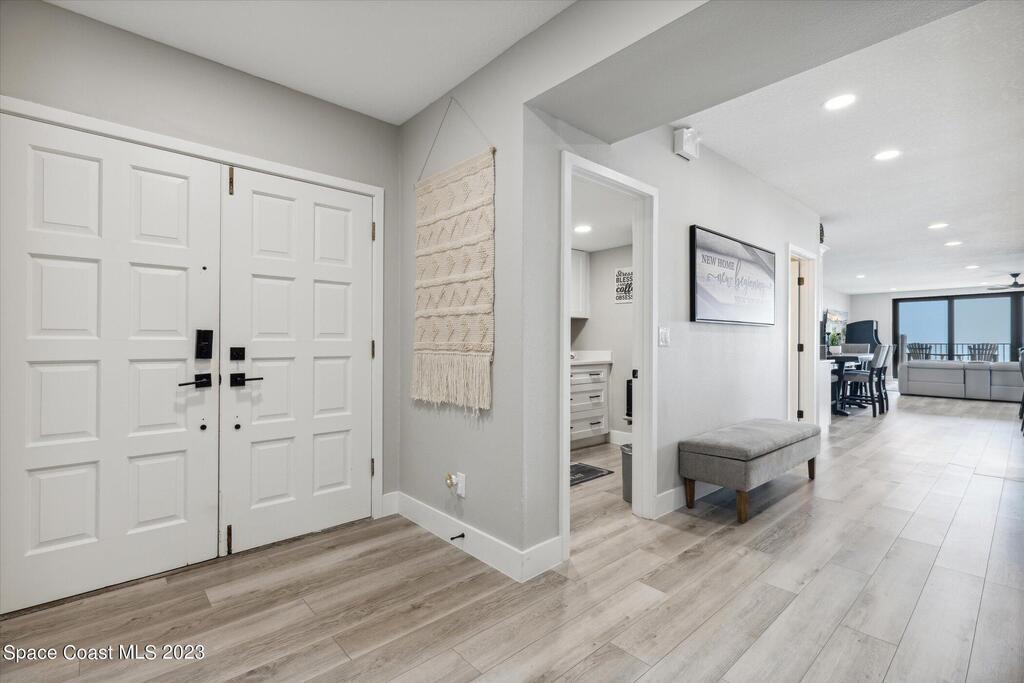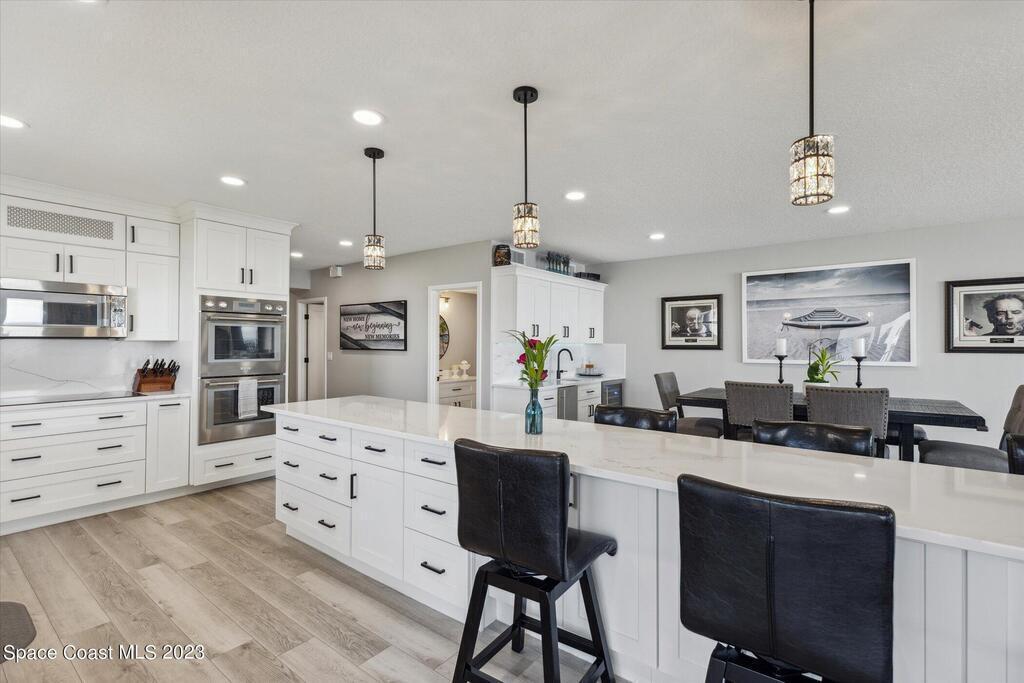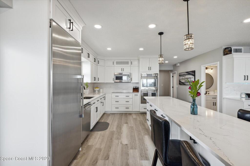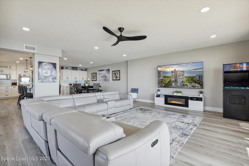 This tastefully updated unit offers breathtaking ocean views and an open floor plan, allowing for a seamless flow between living, dining, and kitchen areas. Natural light floods in through hurricane rated, turtle glass, enhancing the airy atmosphere. The kitchen features top-of-the-line Thermador appliances, ample counter space, and a convenient wet bar- perfect for entertaining. Storage is plentiful with a 6th floor storage area, pool/beach storage, and 2 garages. Step onto the balcony for incredible ocean views and front row seats to rocket launches. Xanadu amenities include a pool, hot tub, sauna, private beach access and so much more. Don't miss the chance to experience the luxury and beauty of this gem.