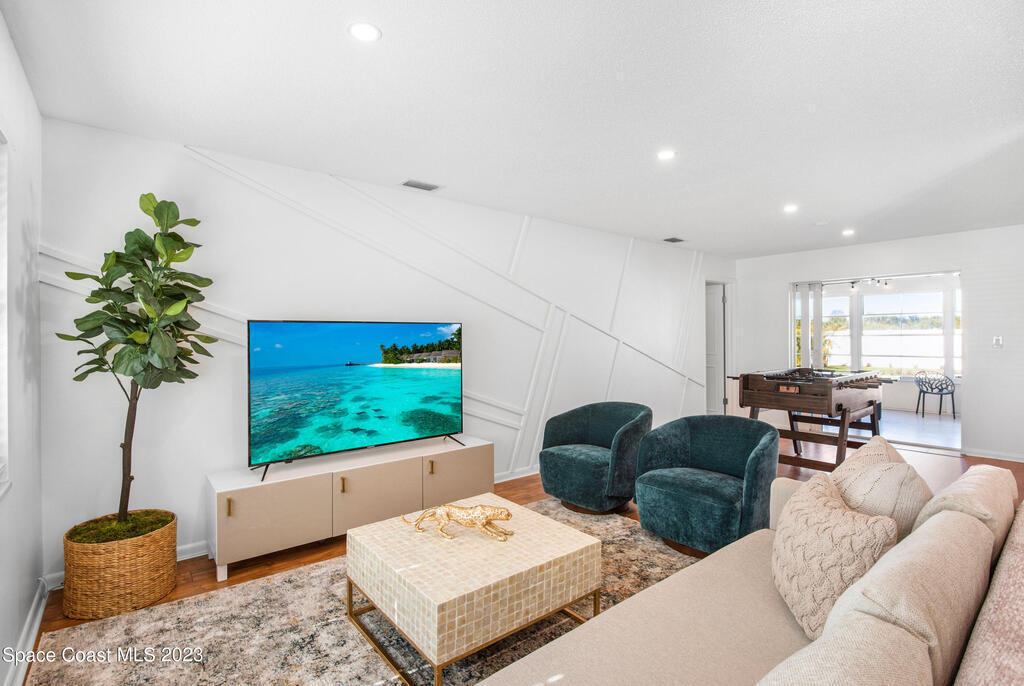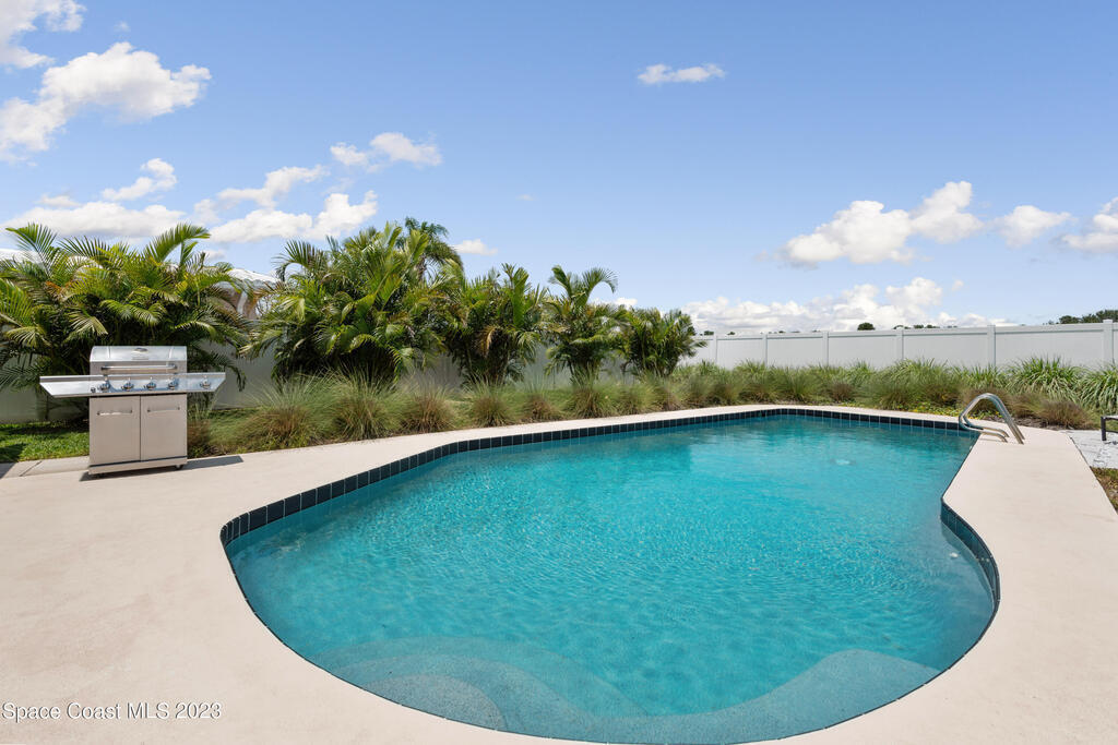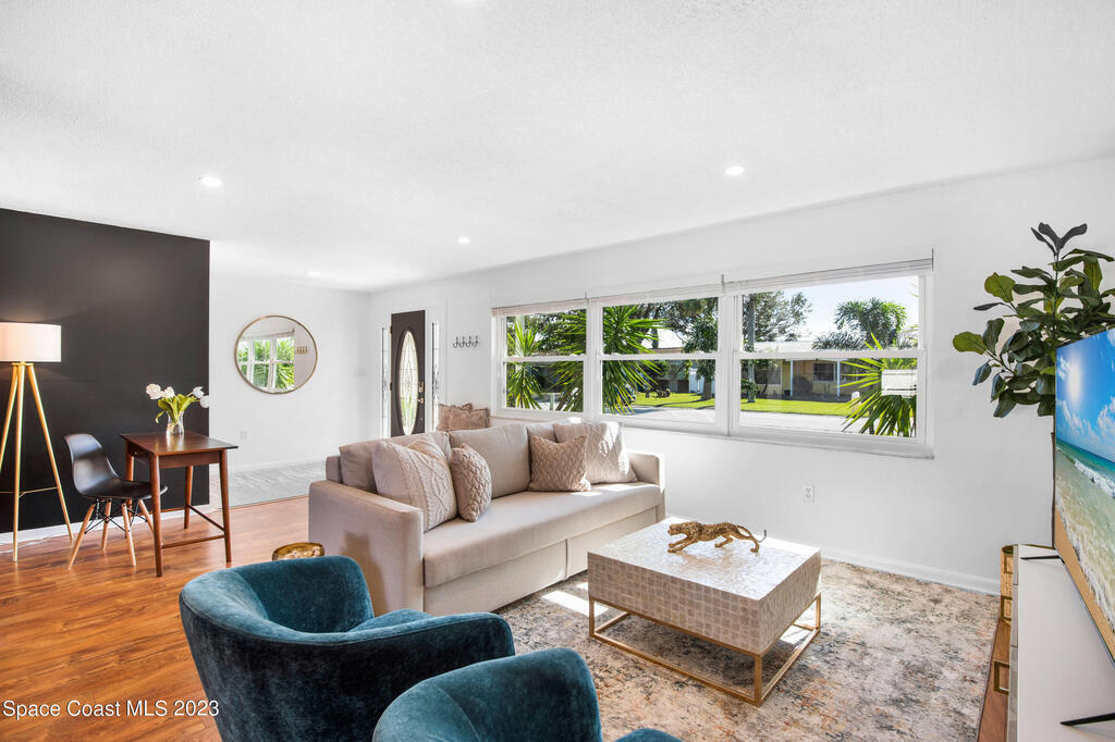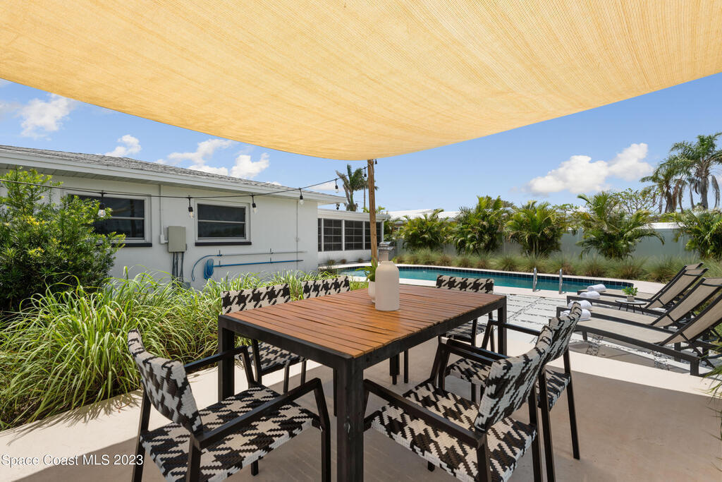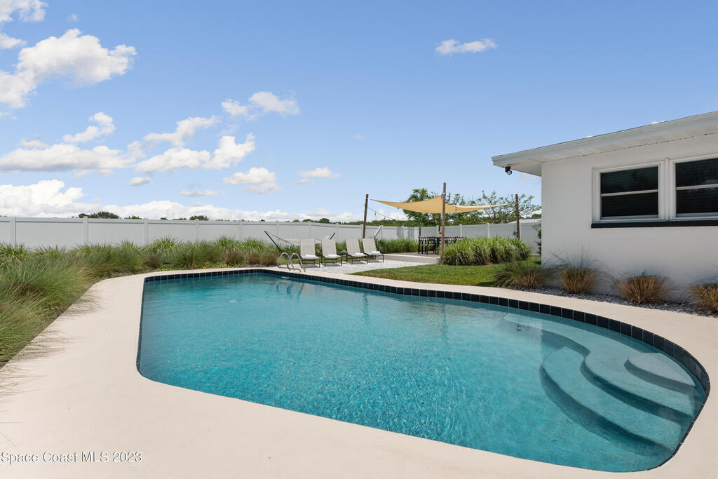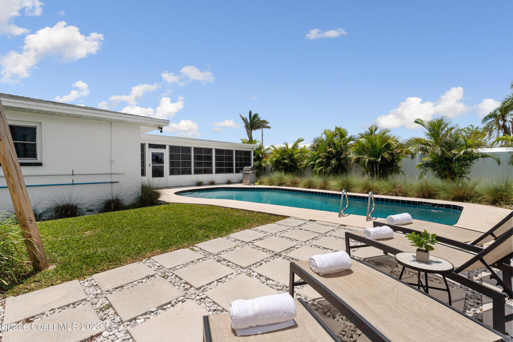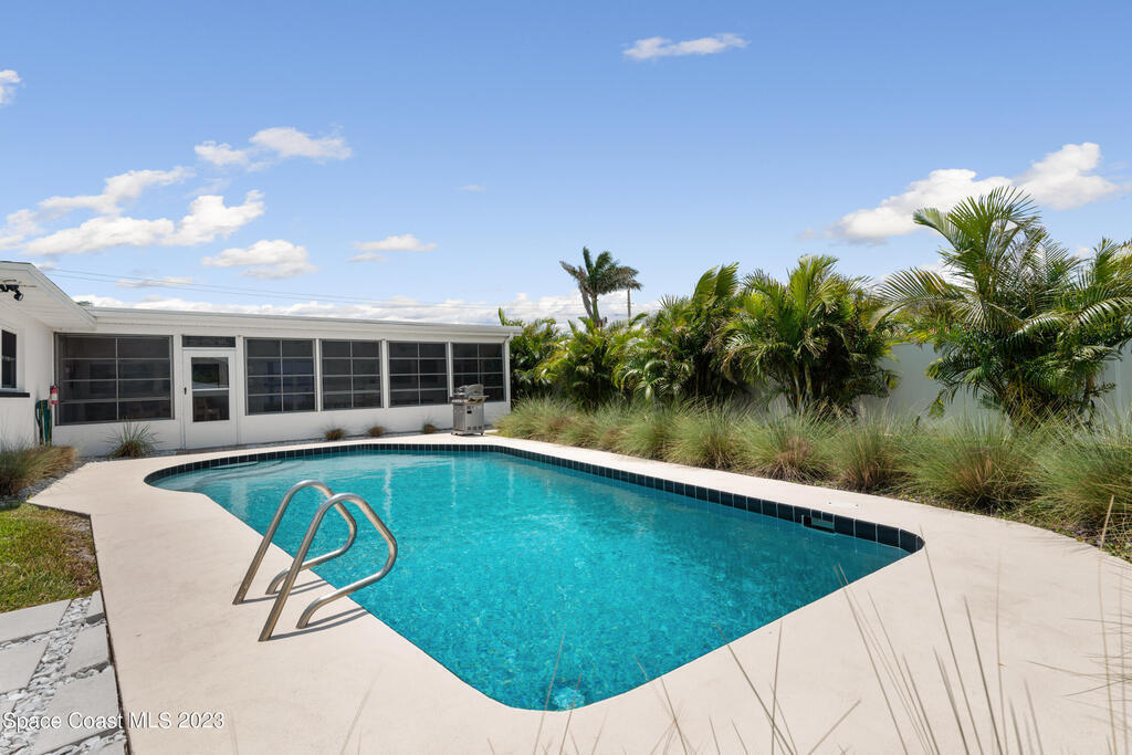 This renovated and meticulously maintained beauty provides access to the most desirable Cocoa Beach destinations. The kitchen flows effortlessly into the living room and features quartzite countertops, beautiful backsplash, stainless steel appliances, impact resistance windows & doors and amazing backyard views. Additional home highlights include: split floorplan with a private primary bedroom wing & en-suite, 2 full bathrooms and 4 bedrooms, 2 car garage, spacious and relaxing back yard entertainment paradise with pool heater/chiller system, outdoor dining area, and screened & conditioned game space. Home is equipped with RainSoft Water Treatment Systems (traditional. This is perfect for Cocoa Beach living that offers the opportunity for primary, second or turn key investment!